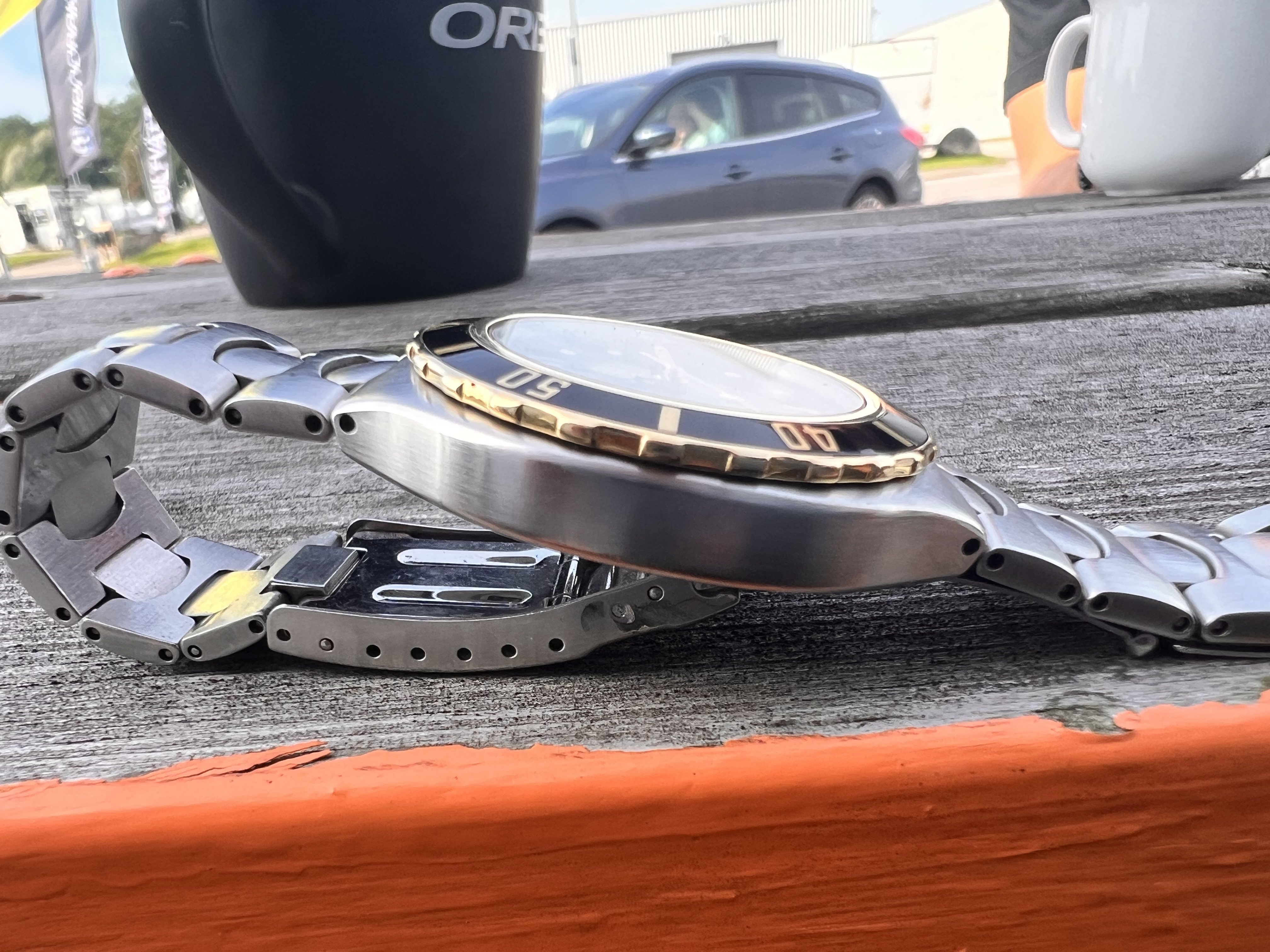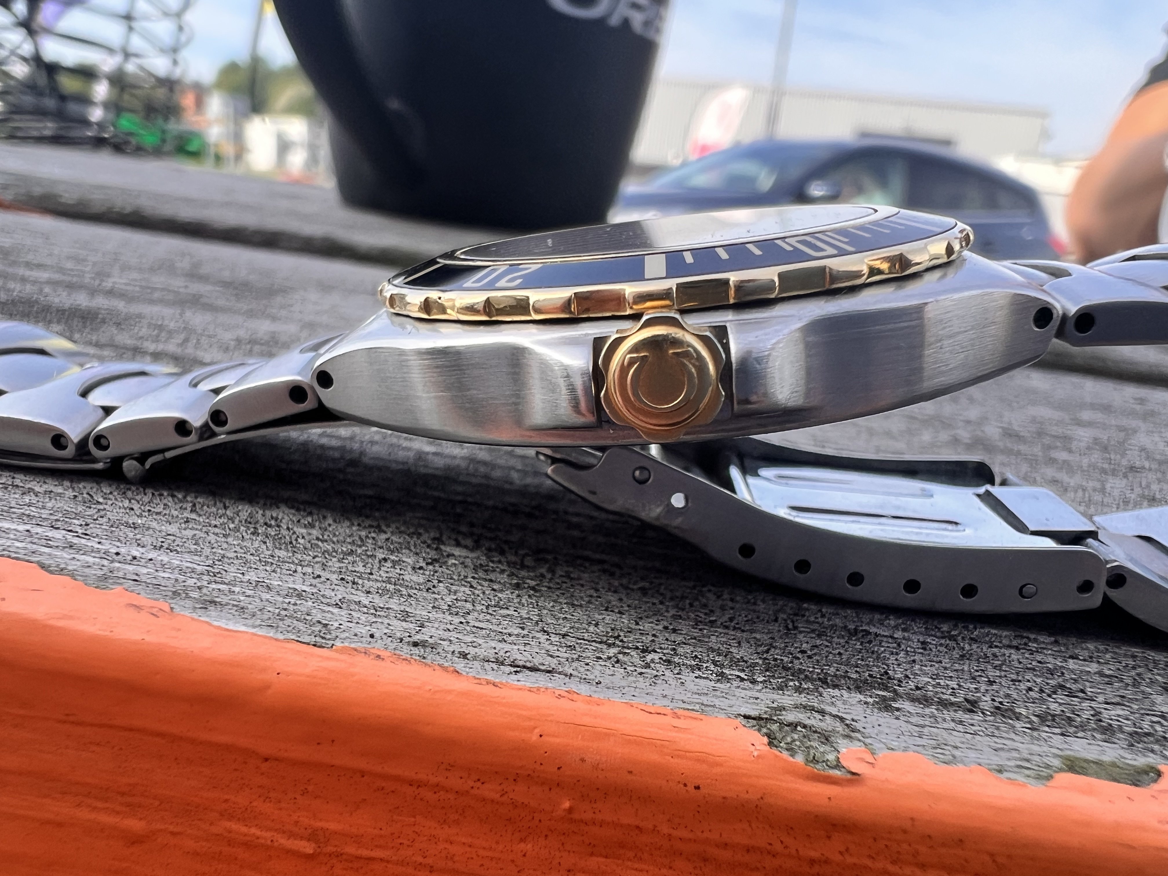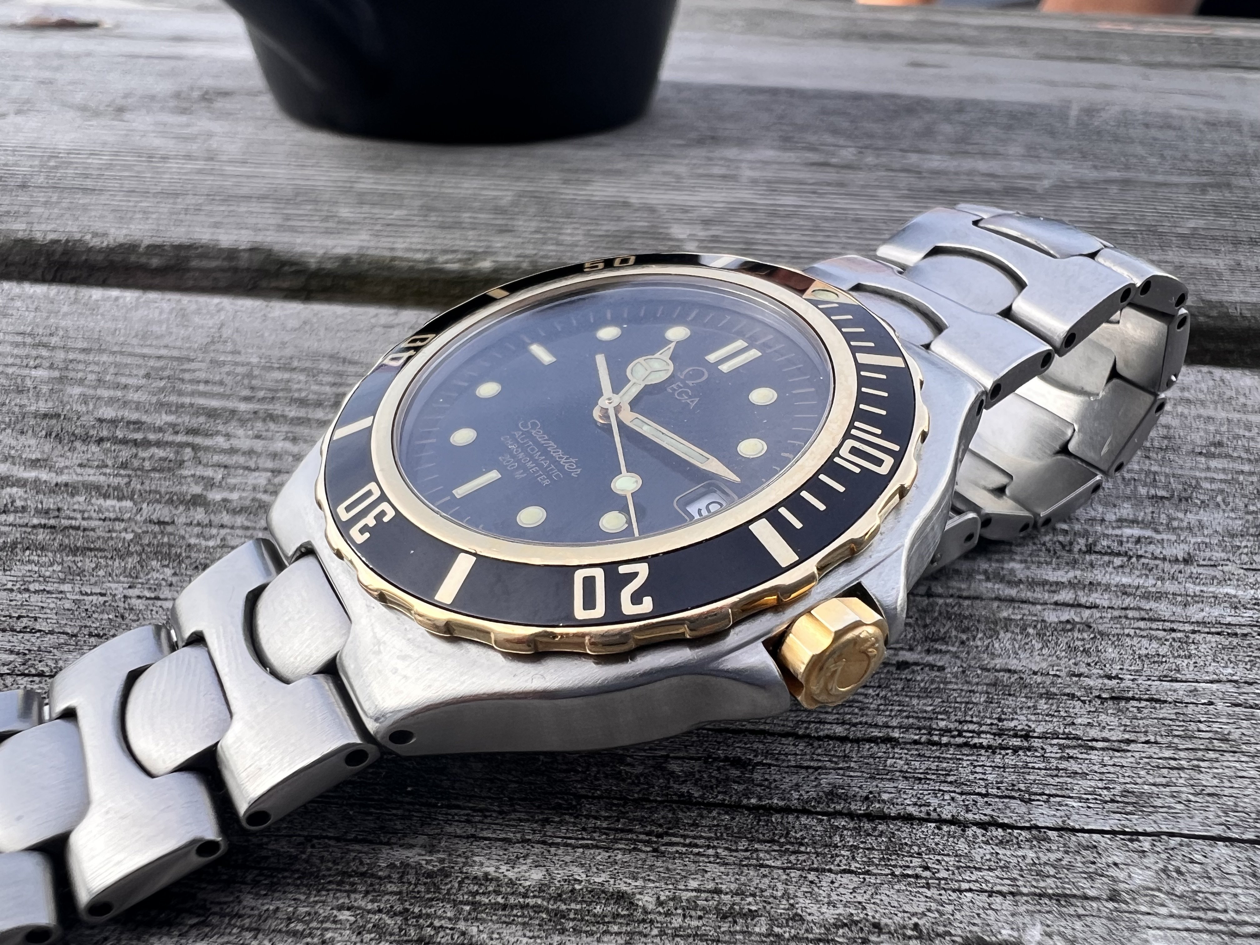 The only thing that is worth noticing is that the Omega logo is missing in the clasp and there is some dust under the glass, otherwise its a very nice watch. Dial is perfect .