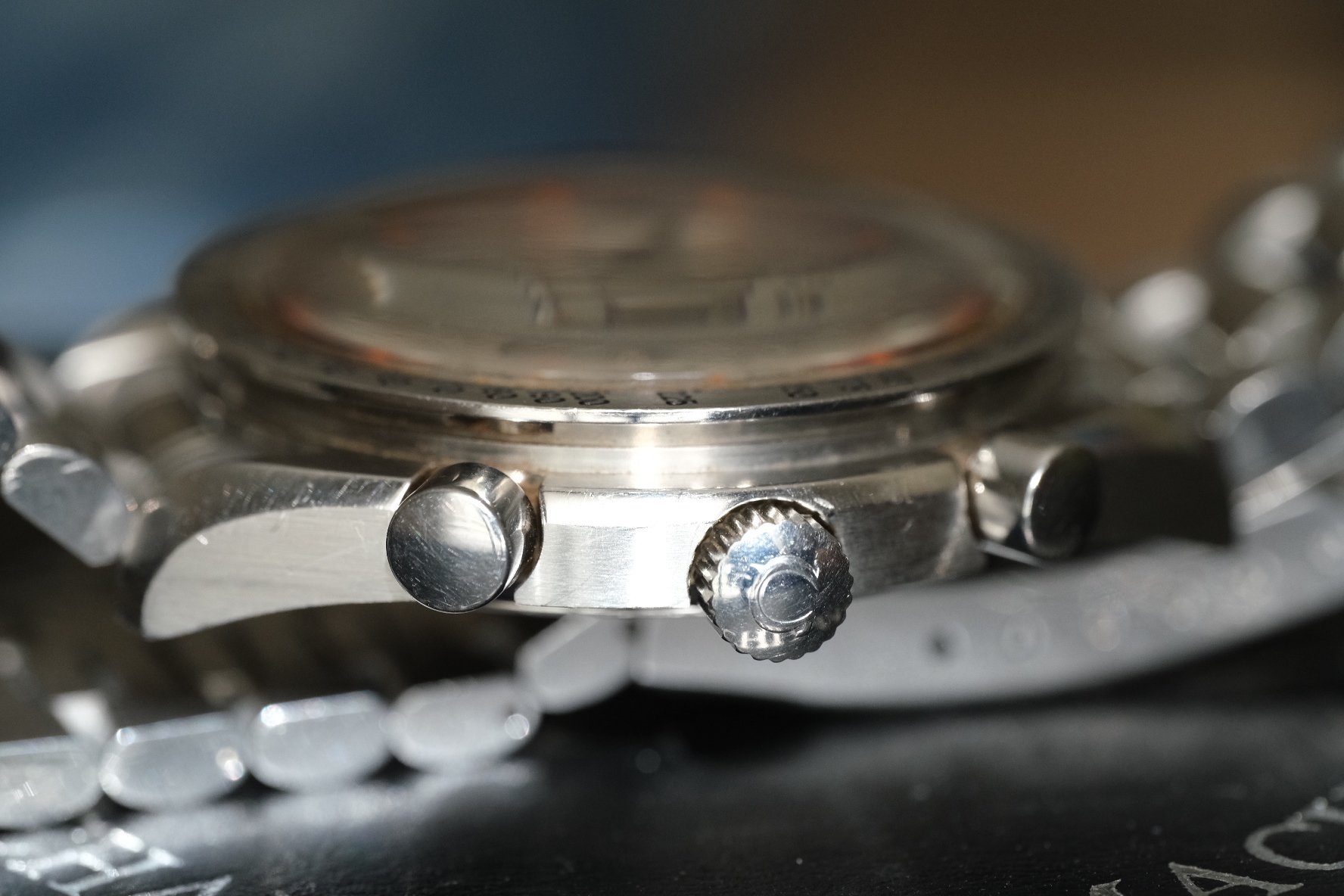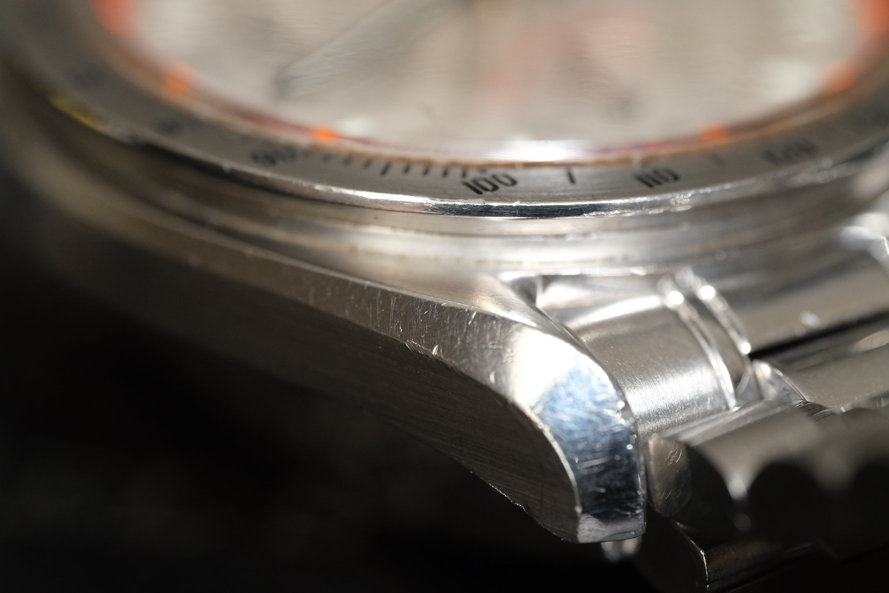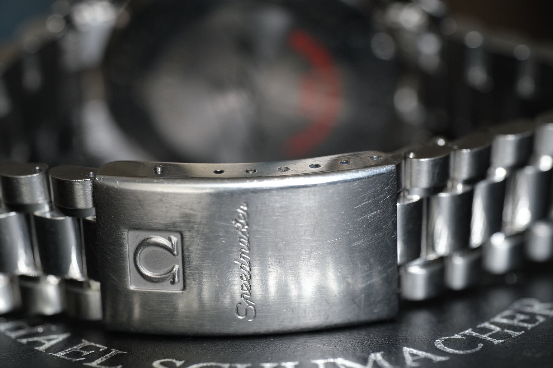 BRACELET: Comes on its original Omega bracelet which I believe to be full, will fit up to nearly an 8 inch wrist. It’s becoming harder to find the Speedy reduce bracelets full as the links are getting expensive, so that’s great to see. Bracelet has wear throughout, mostly seen on the clasp, as expected, but very clean and looks fantastic with a very secure close!