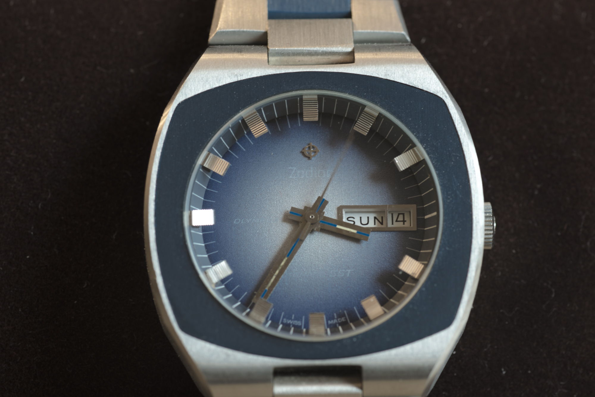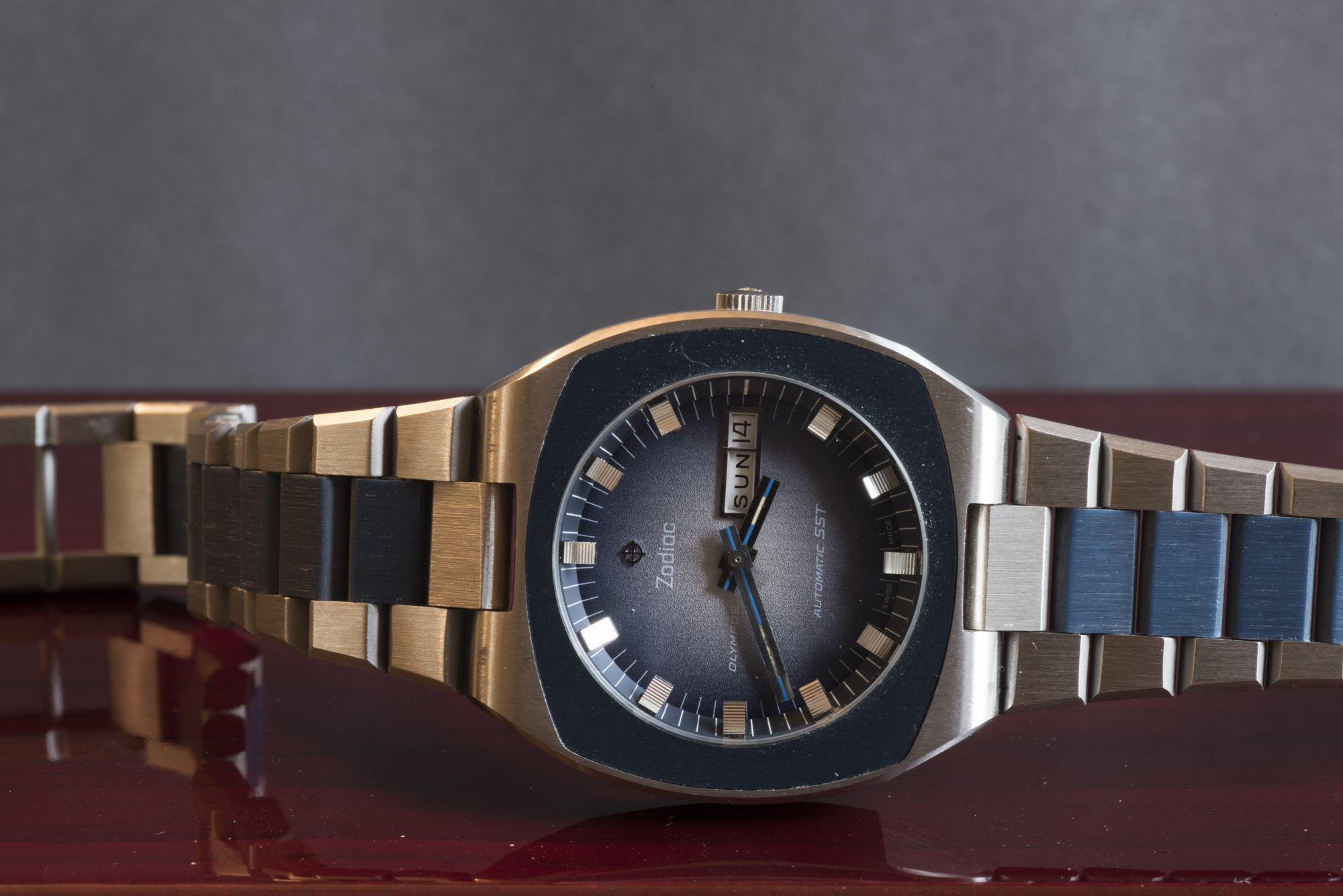 路Quintessential 1970's design from a historical Swiss brand, Zodiac, this is the Olympos Automatic SST in Mint, possibly Unworn, condition.