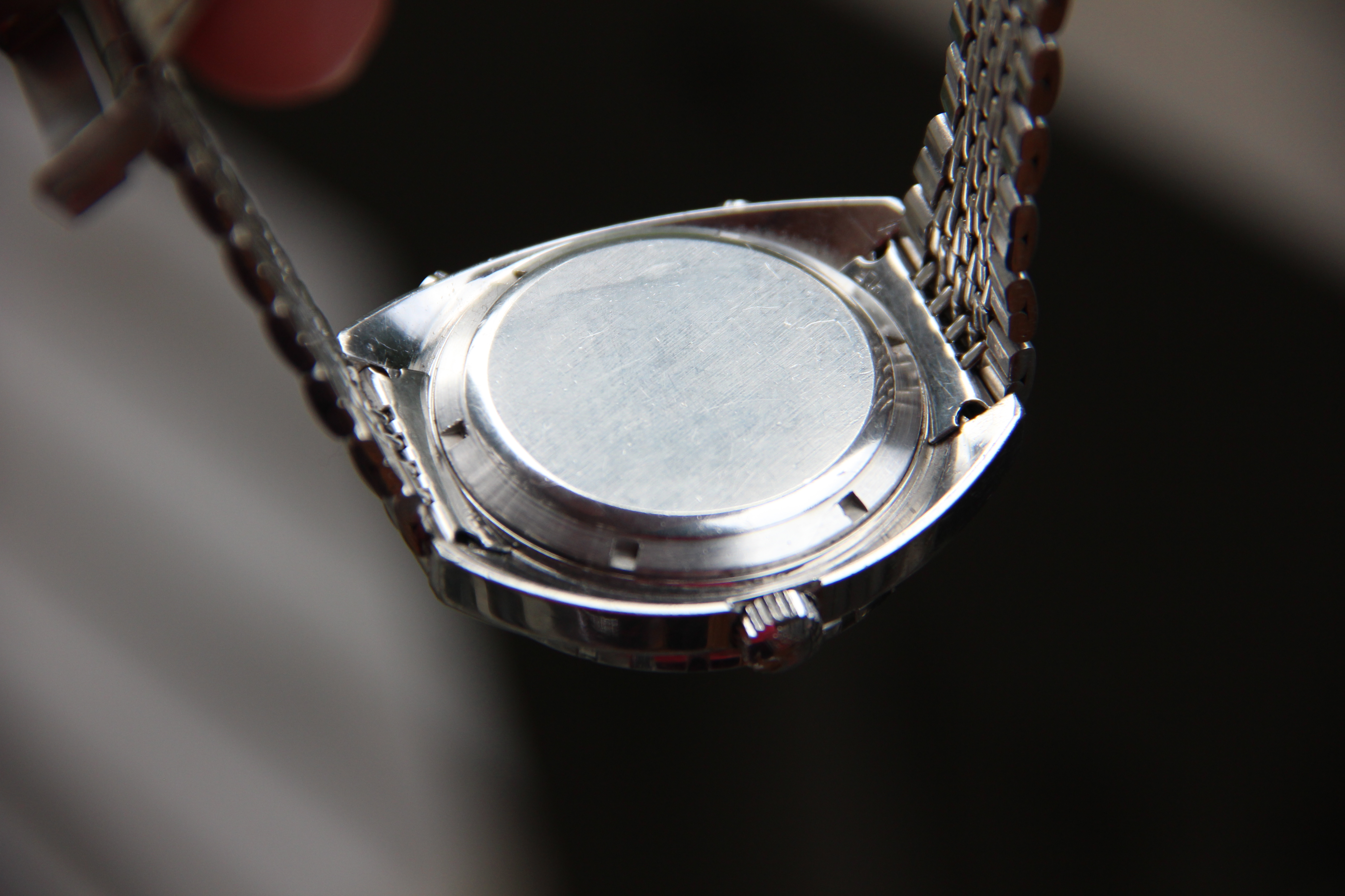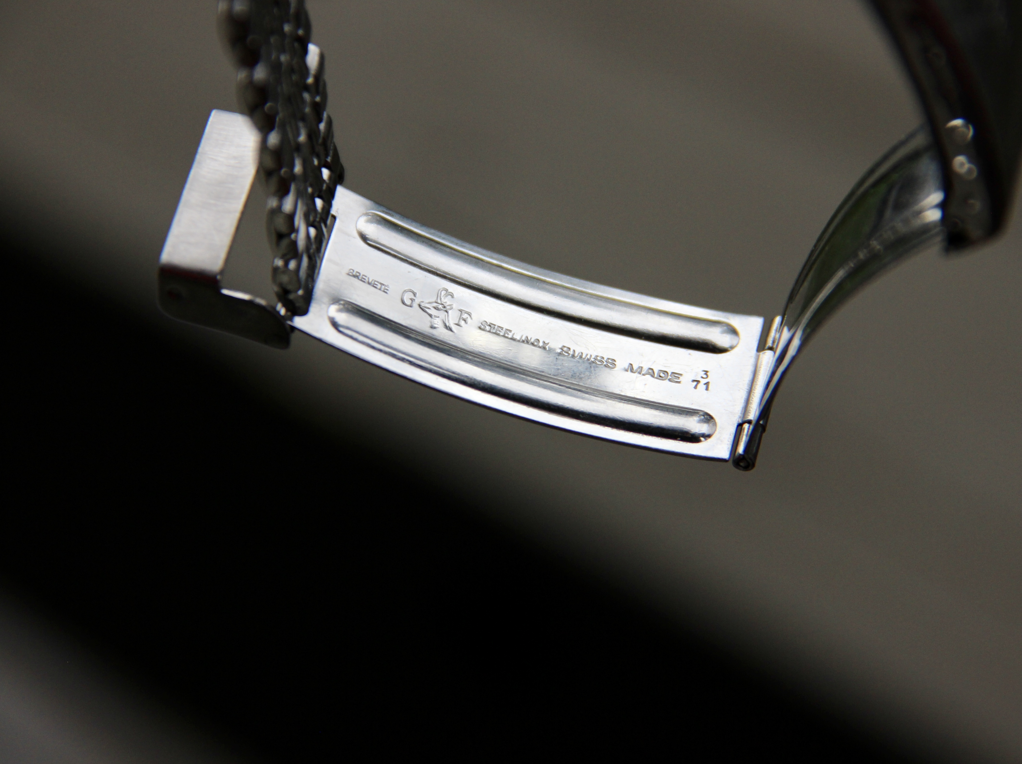 Case: The Piquerez case appears thick and unpolished with the fine original sunburst finish on the upper case remaining intact. Bevels are very well defined. As expected of a 50 year old watch, there are some scratches and nicks on the case. Ref and serial # are legible between the lugs.