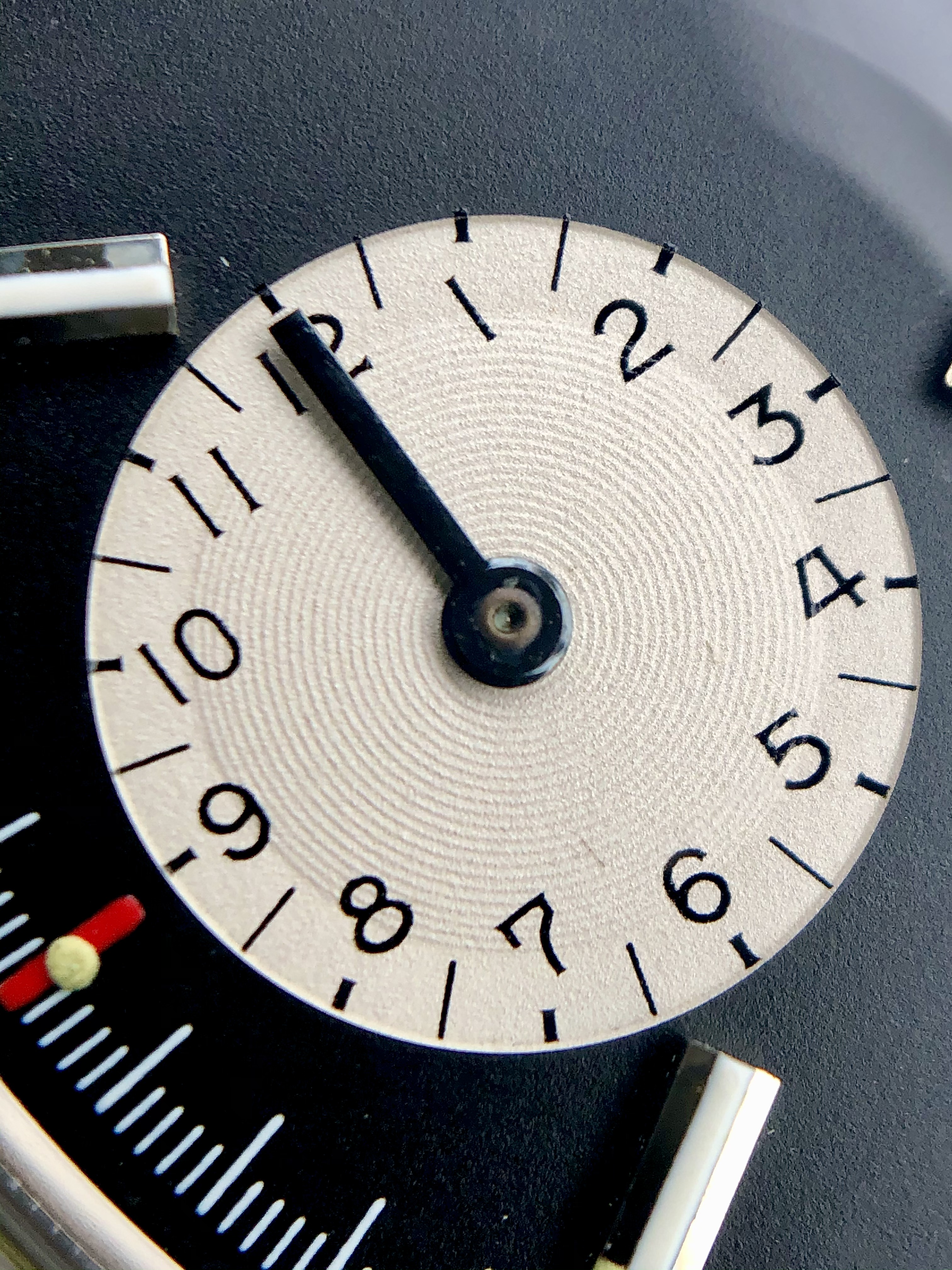 Dial: Matte black dial is clean and sub-dials are very white. Tritium is original, couple lume plots are missing at 3 and 6.