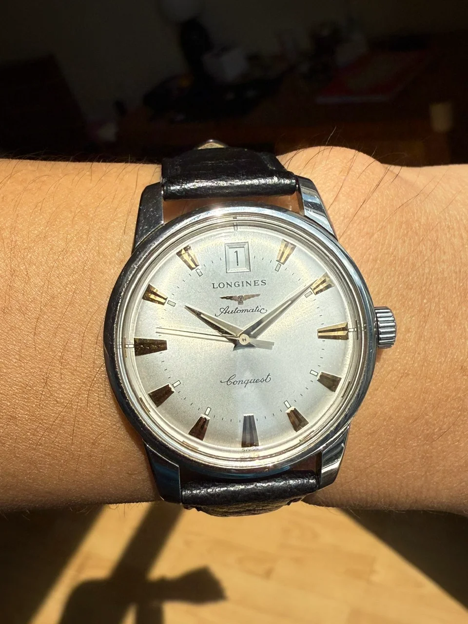 - Brand: Longines; Model: Conquest Heritage; Reference: L1.611.4; Origin: This watch is a gift to my father-in-law but it has been neglected for years since his favorite now is an apple watch.