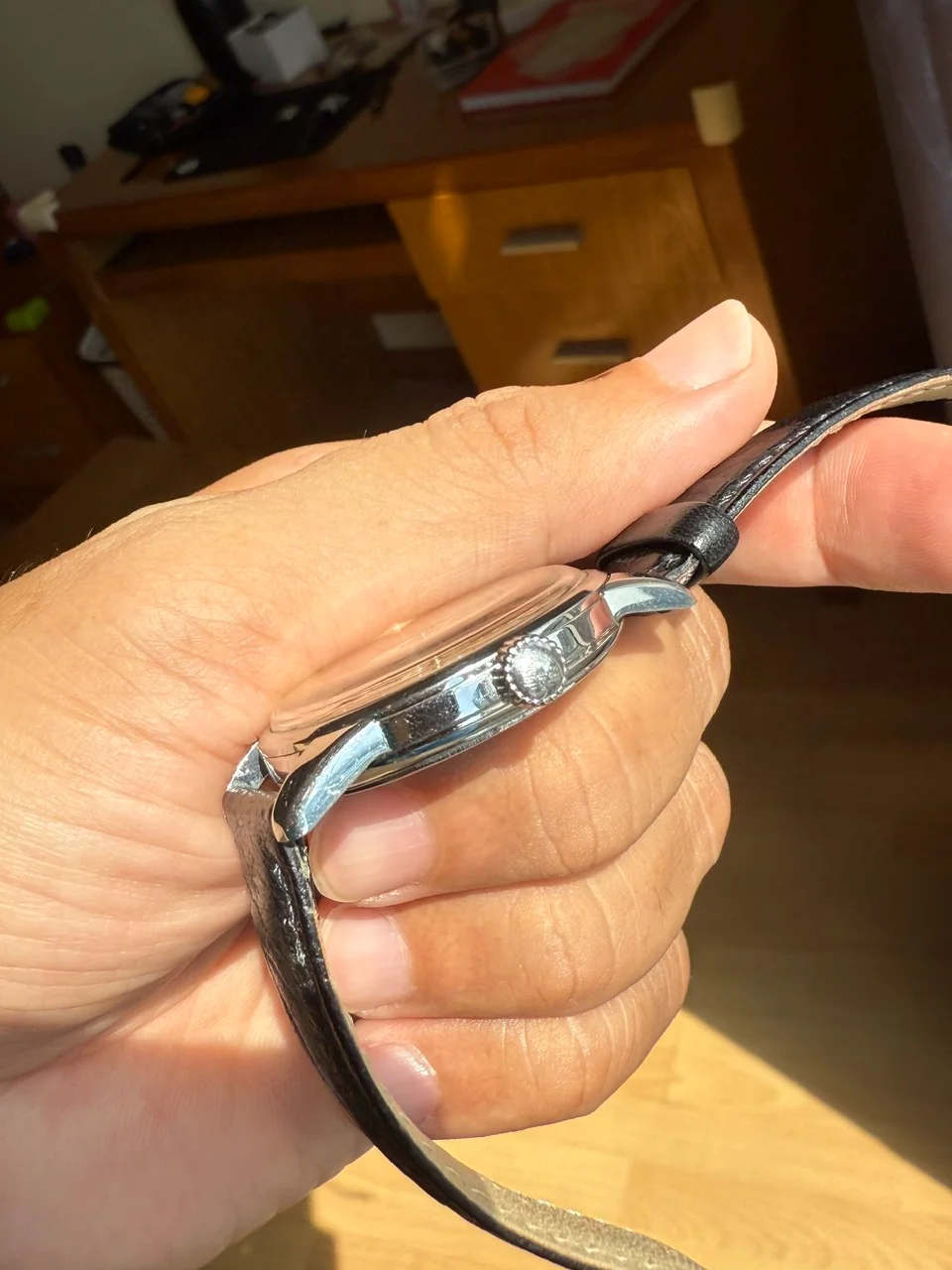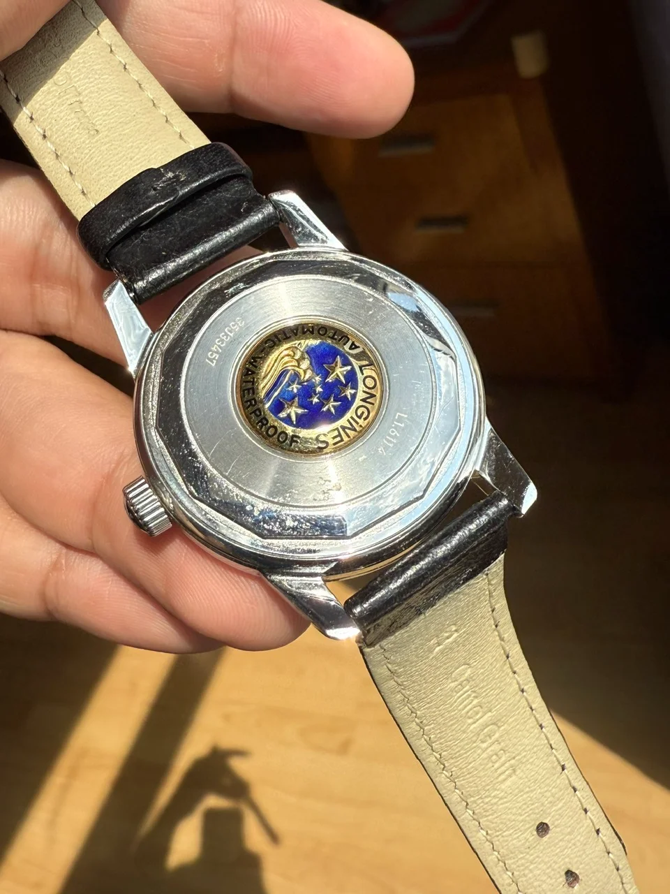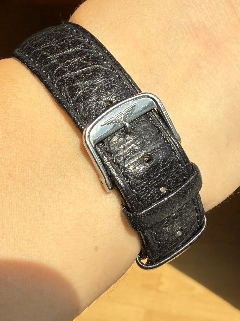 - Strap: Original black leather strap with original Longines 16mm buckle. But the strap is loose since the adhesive is starting to fall out. So IMO the next owner should get a new strap.