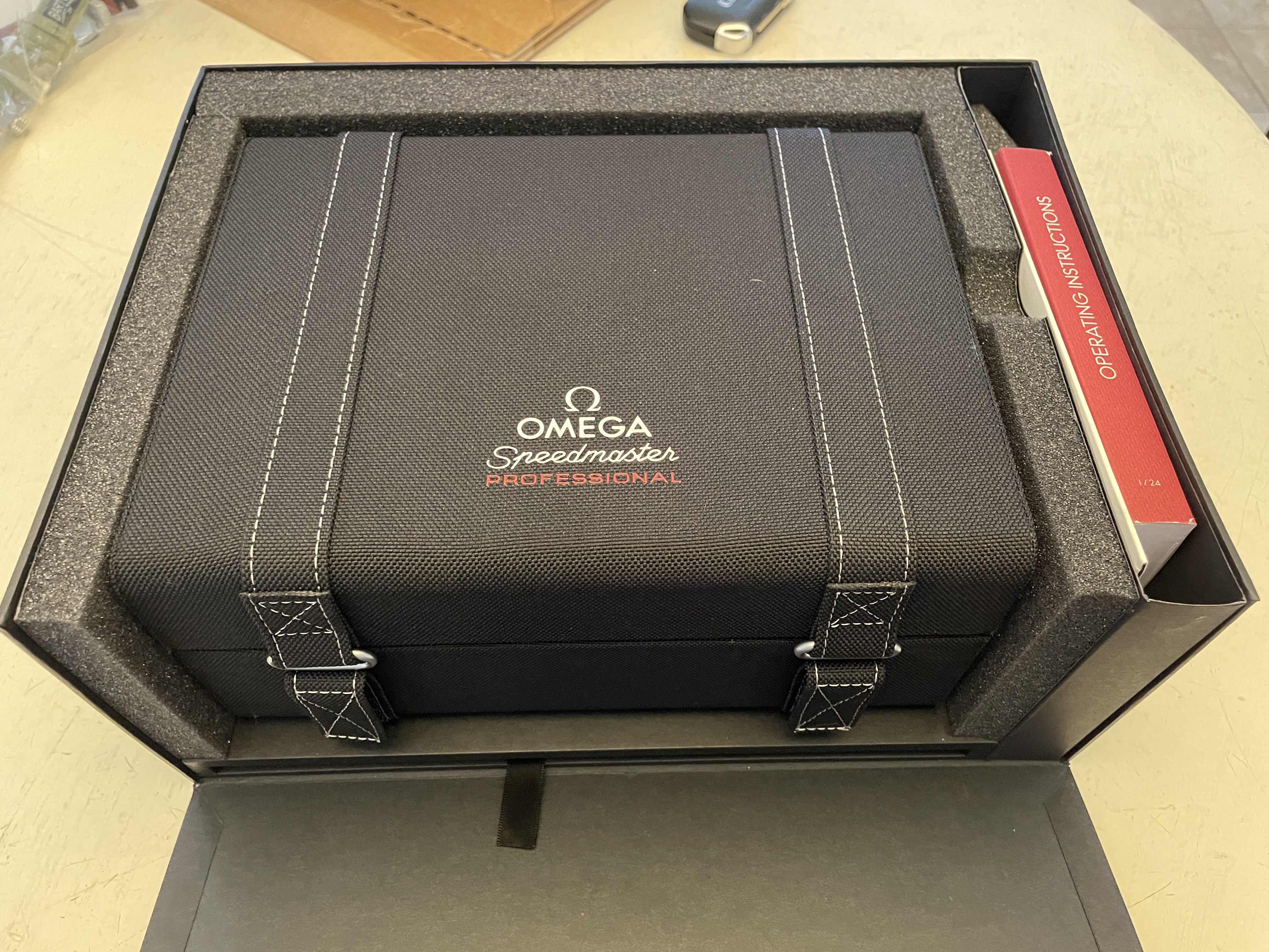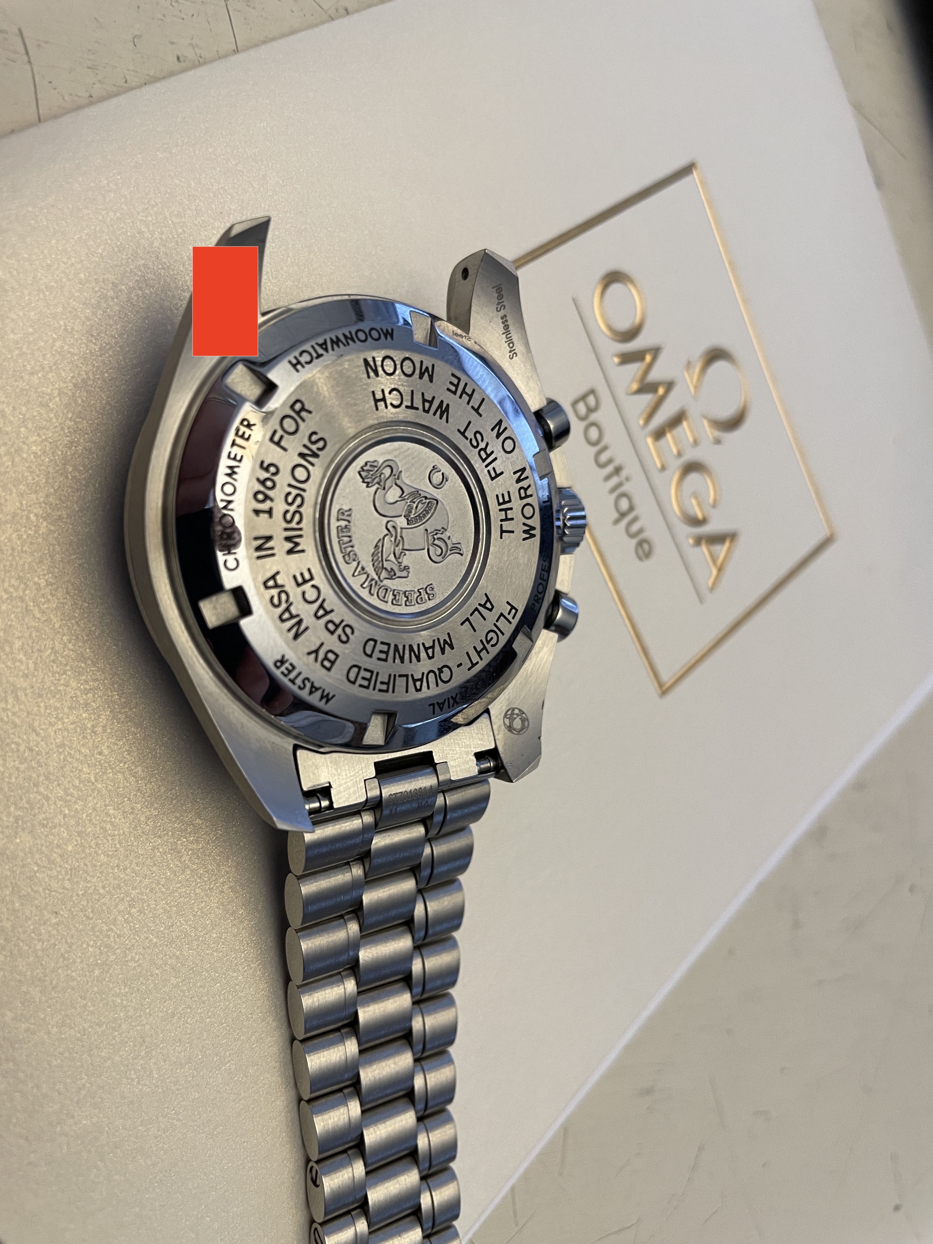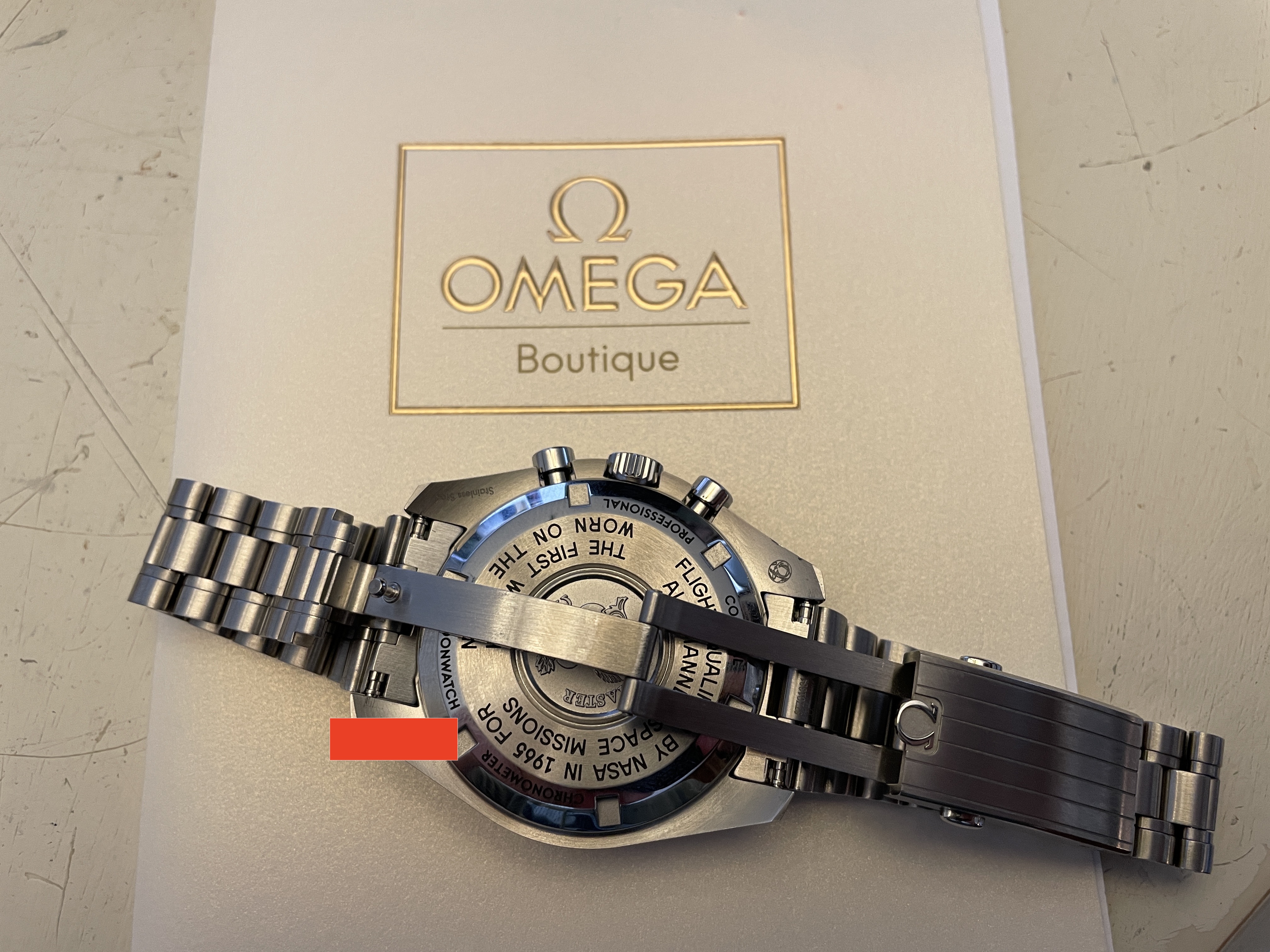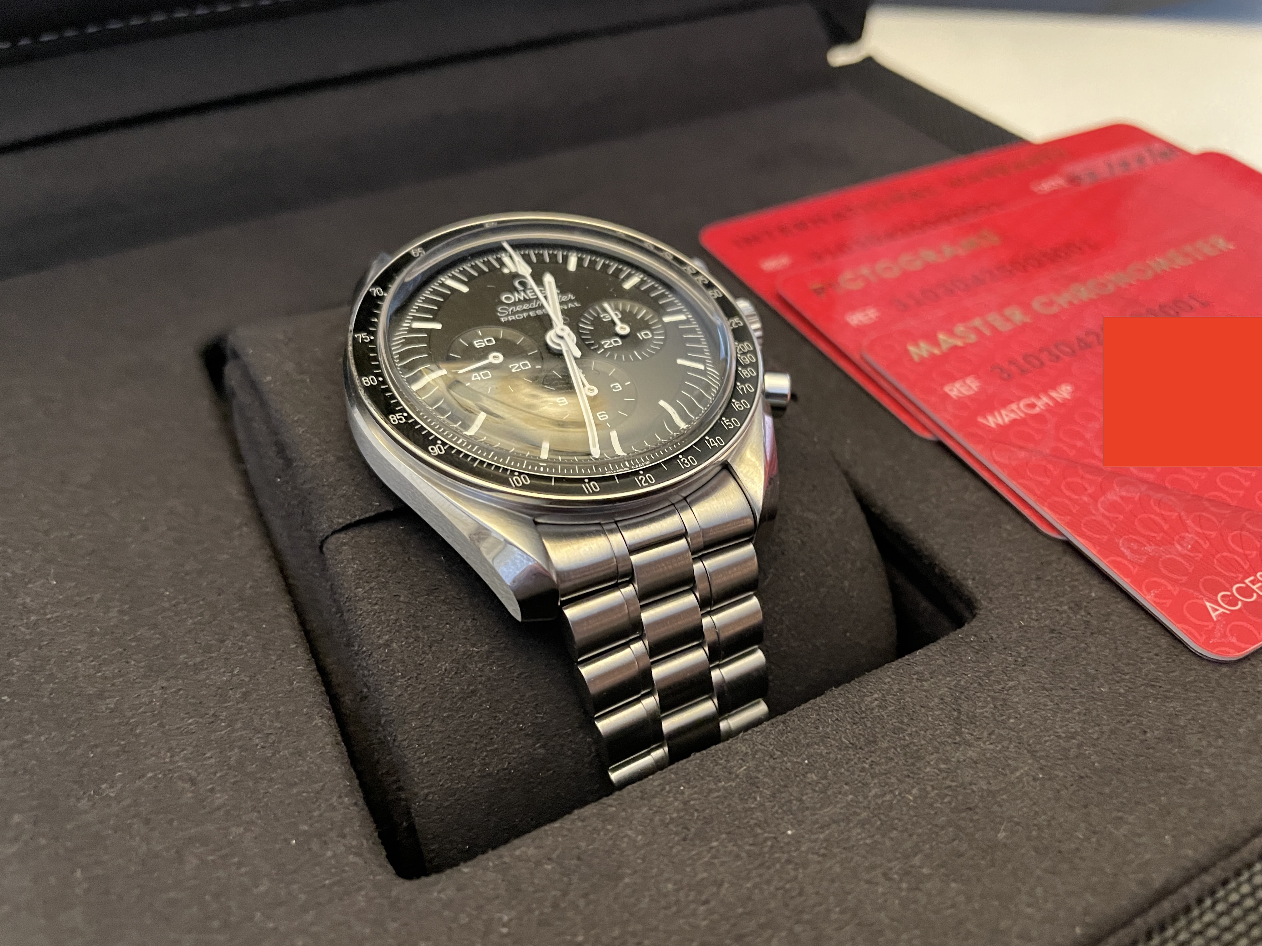 My wife and I purchased two of these last week and she just isn't in love with it as much as I am with mine. I'm selling hers so she can purchase something else. Comes with the box, manuals, all three OEM cards, Omega boutique receipt, stamped warranty (February 2021), outer box, extra links from bracelet resizing, etc. etc. etc.