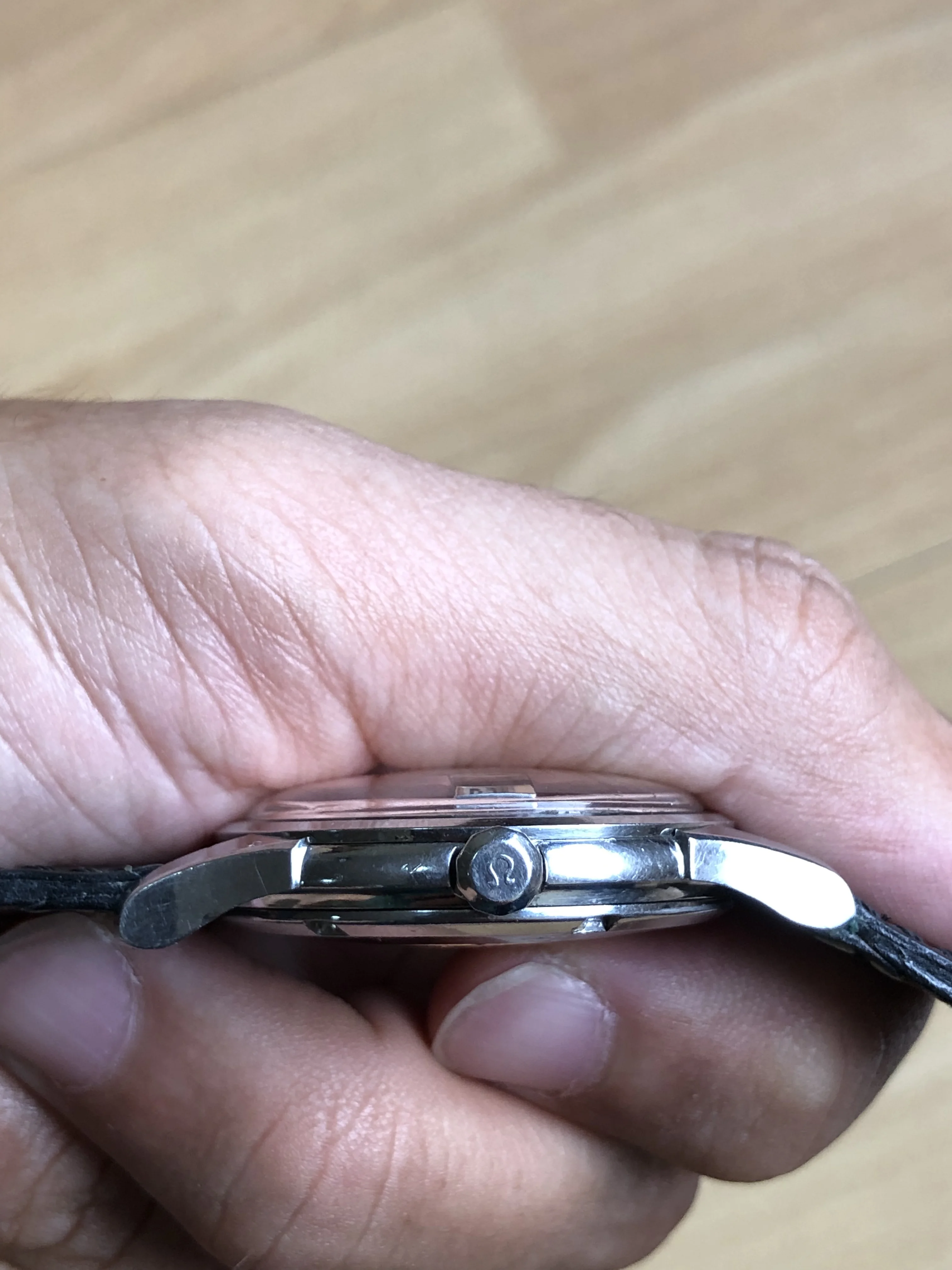 - Case: The diameter is 34.5mm without the crown. Original case in fair condition with scratches. Original thin Omega ten-sides crown.