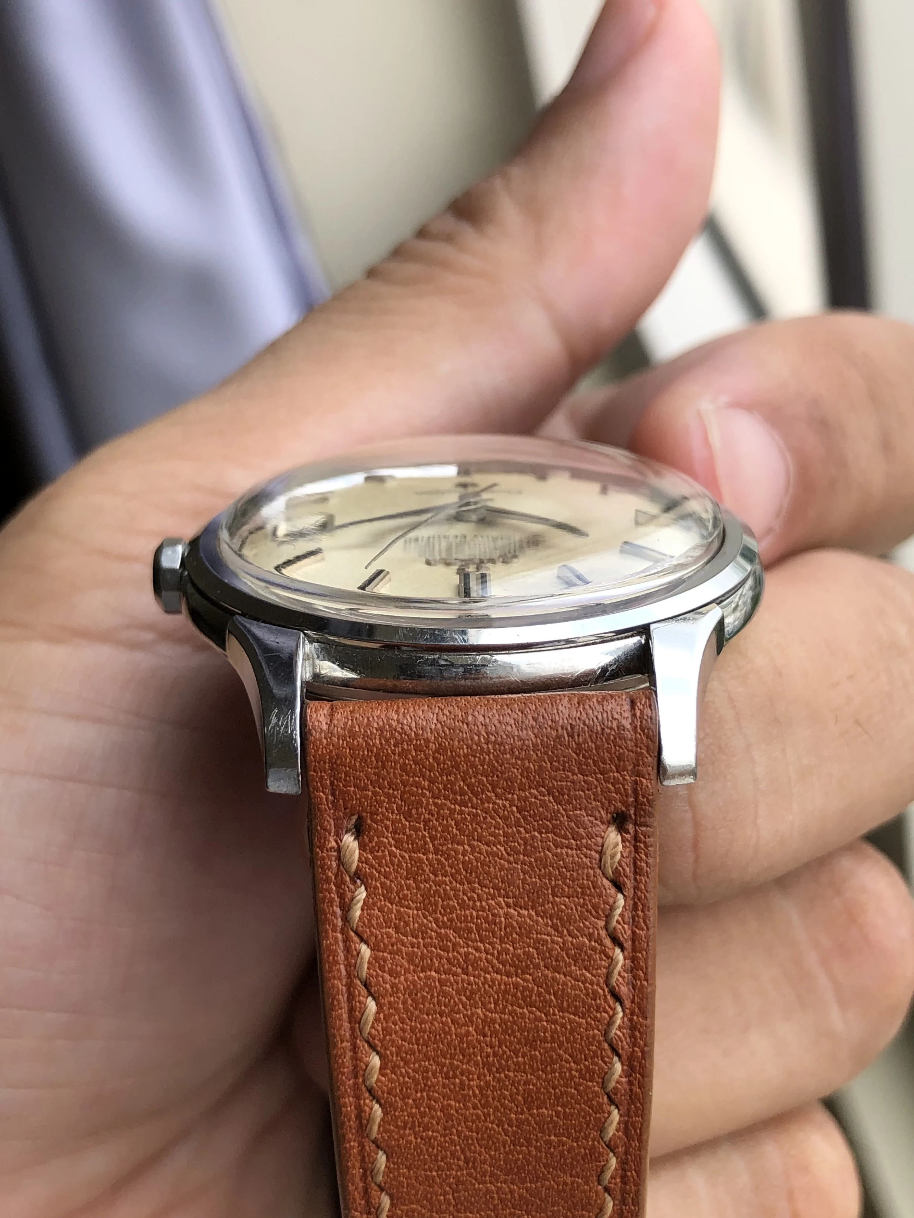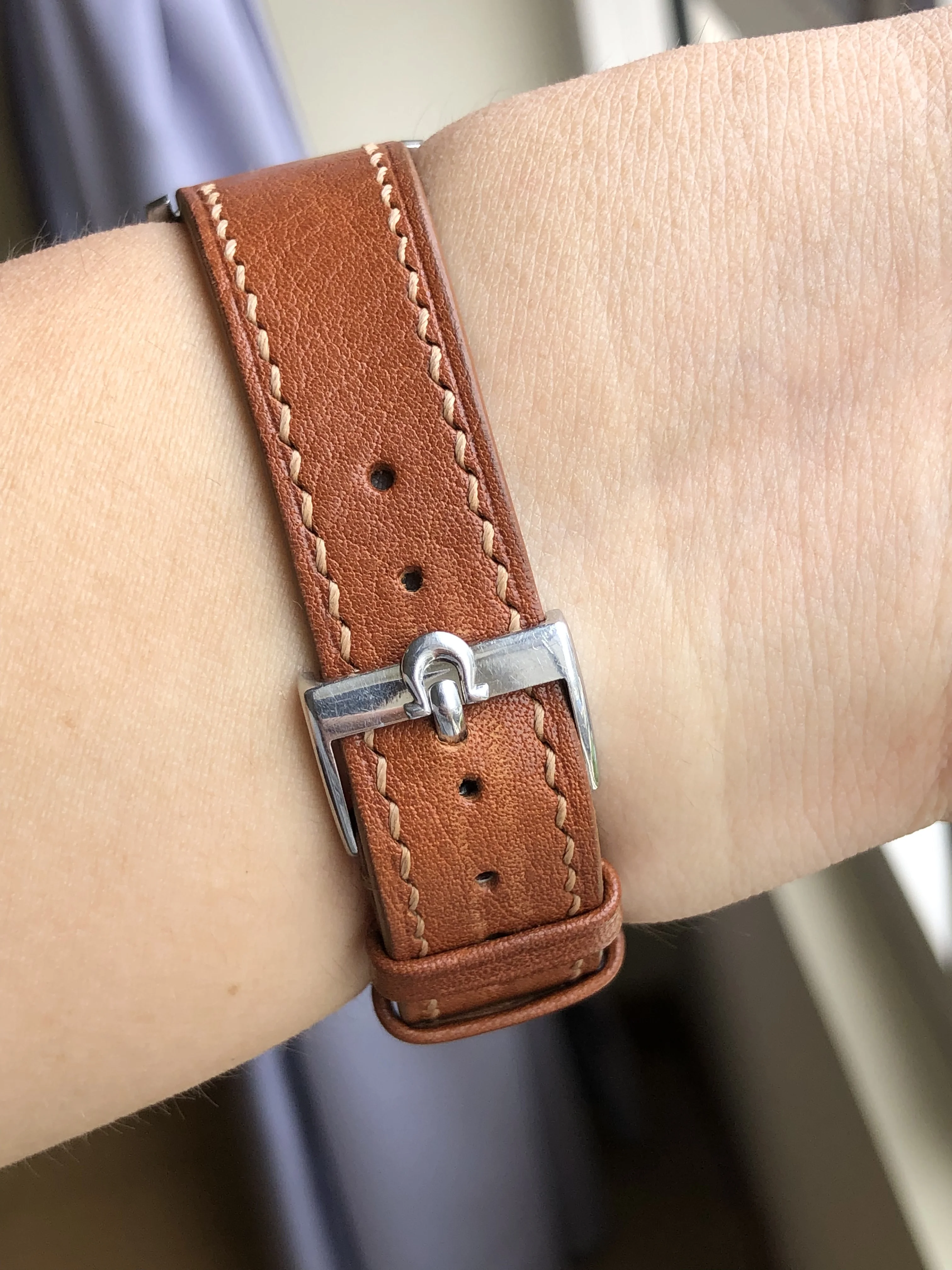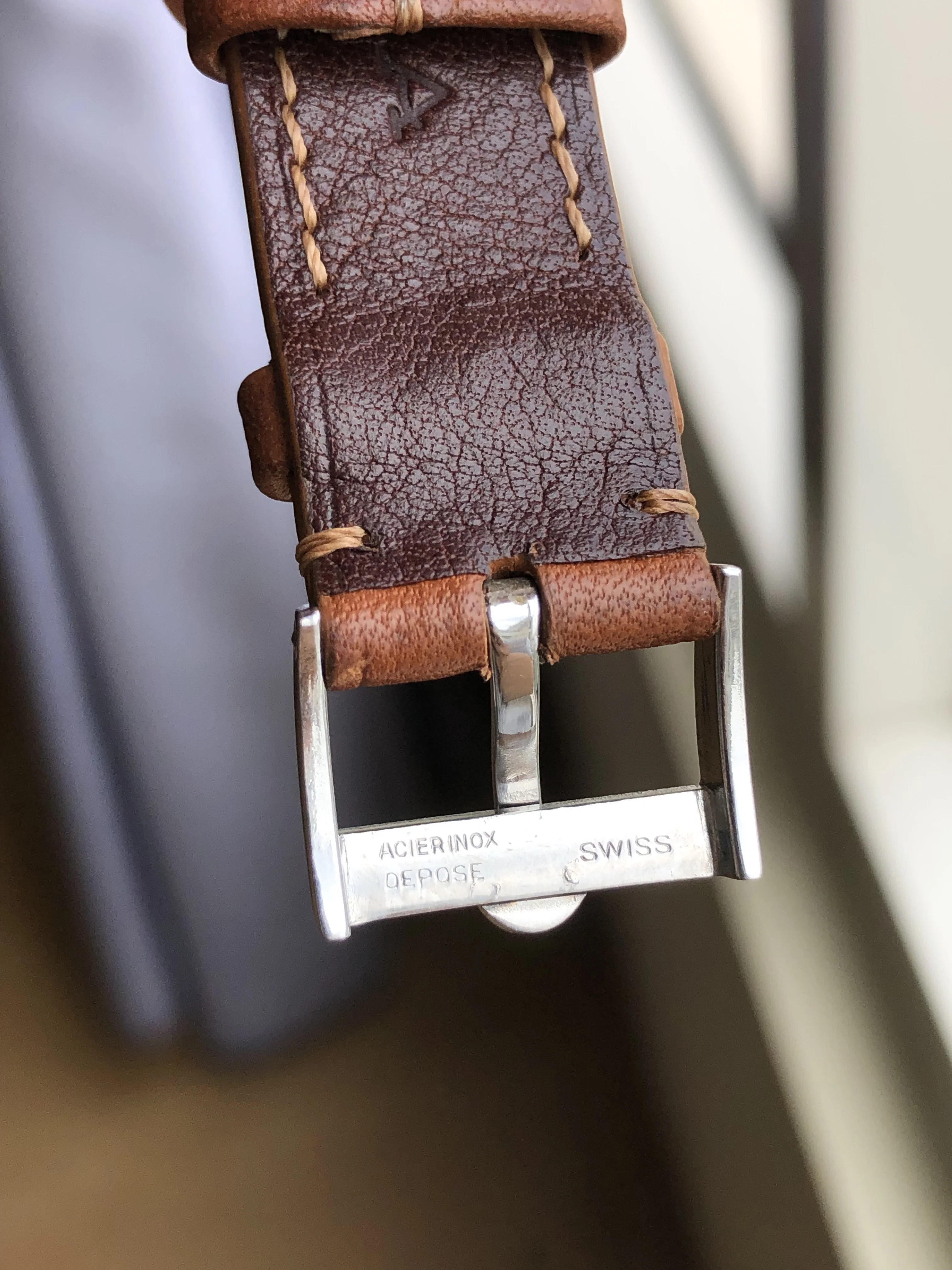 - Strap/buckle: Brown handmade leather strap. Original AW Omega buckle.