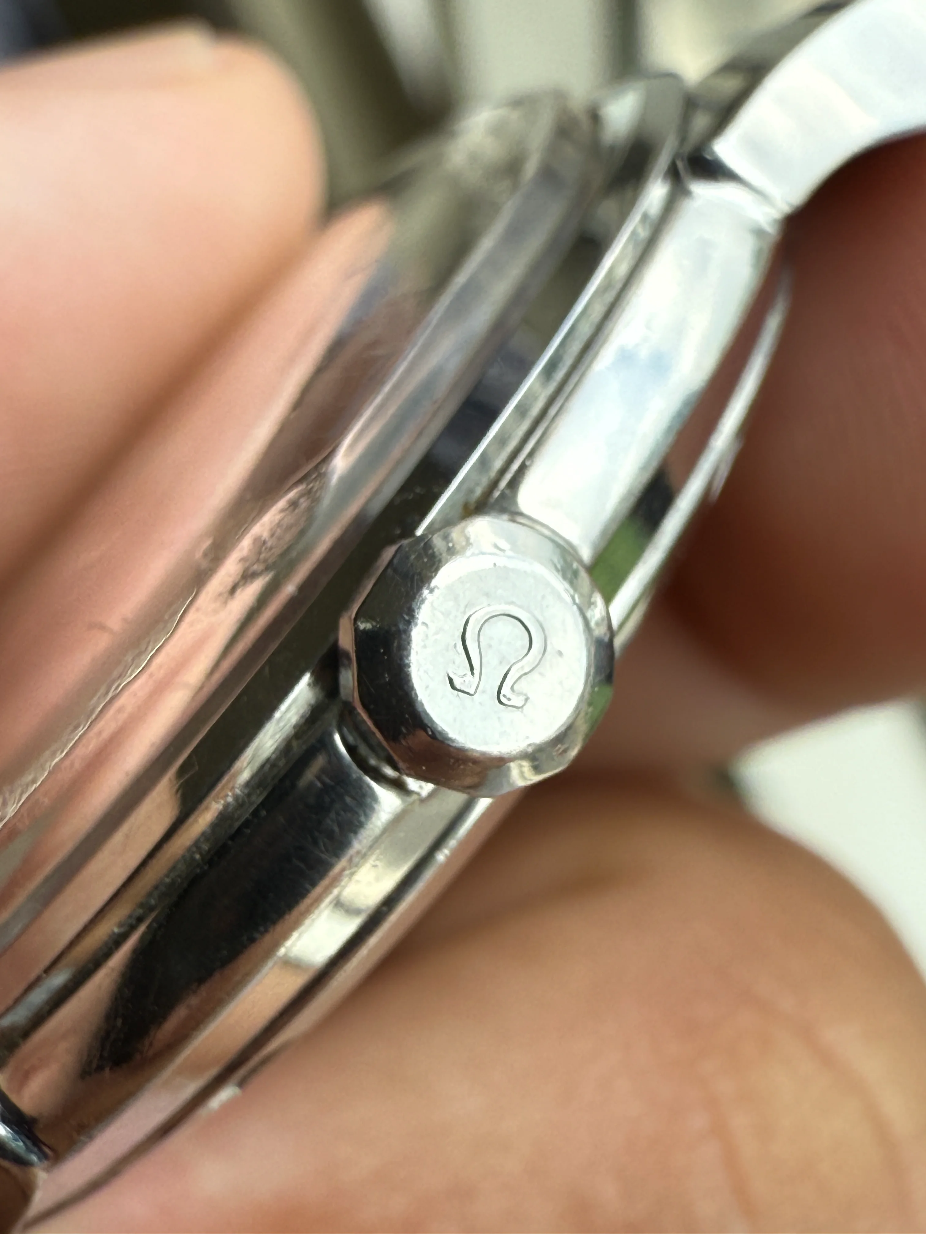 - Case: The diameter is 37mm without the crown. Original case in good condition with hairline scratches. Lug size is 19mm. Original decagonal Omega crown.