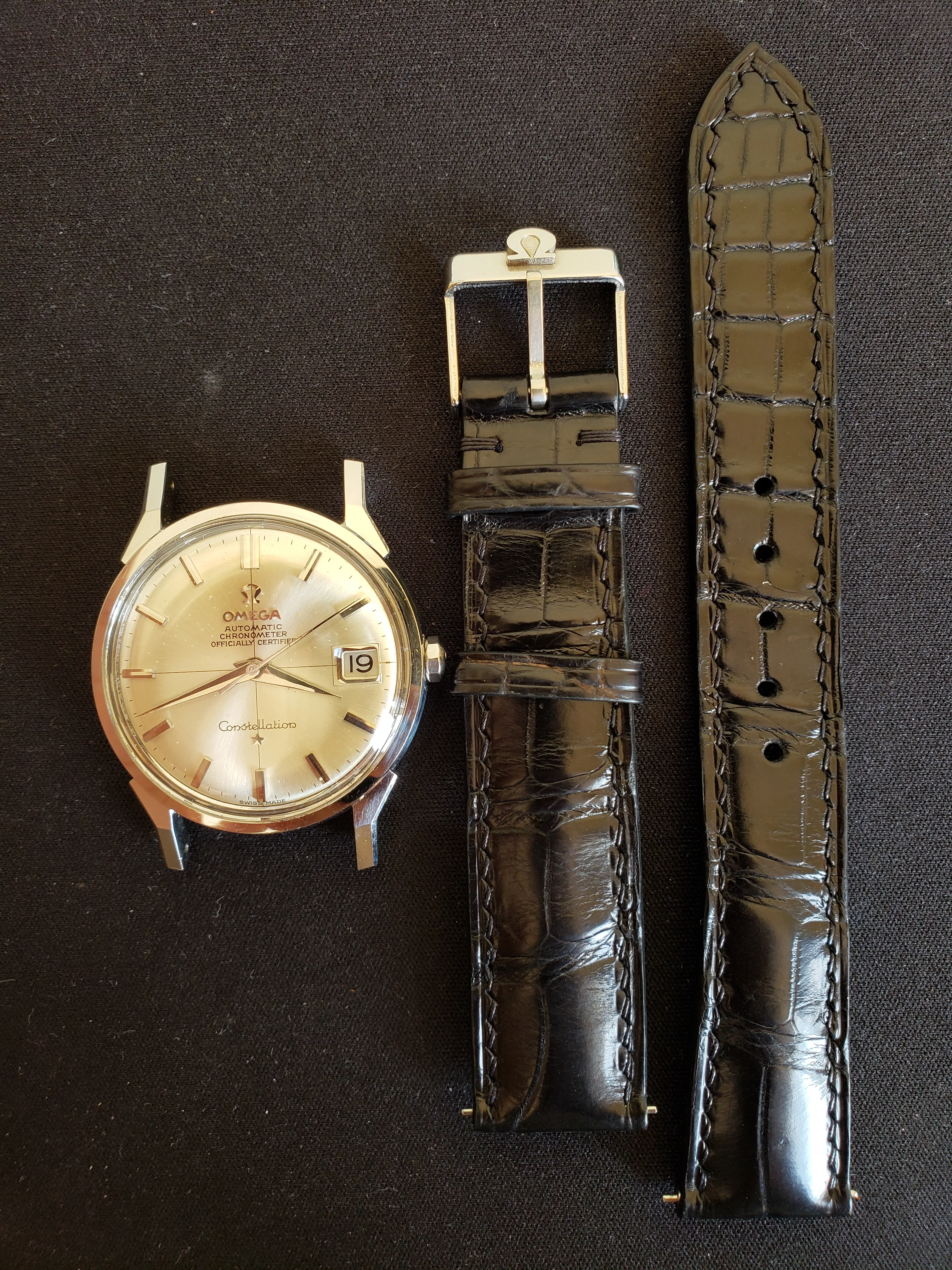 - Strap: Brand new handmade crocodile leather strap with smart spring bar. Aftermarket Omega buckle.