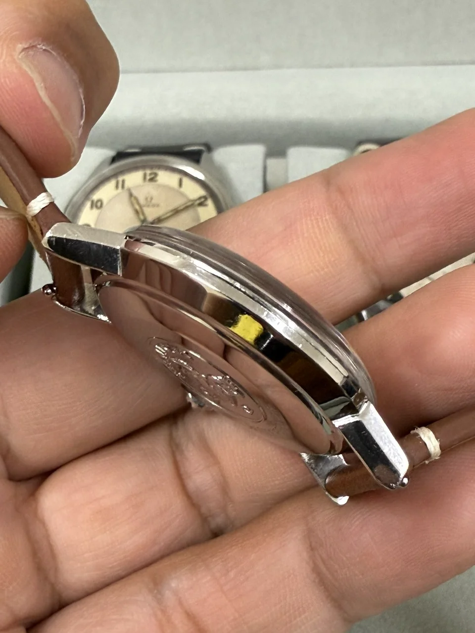 - Case: The diameter is 34.5mm without the crown. The case in good condition, no obvious dings or dents. Original Omega signed crown.
