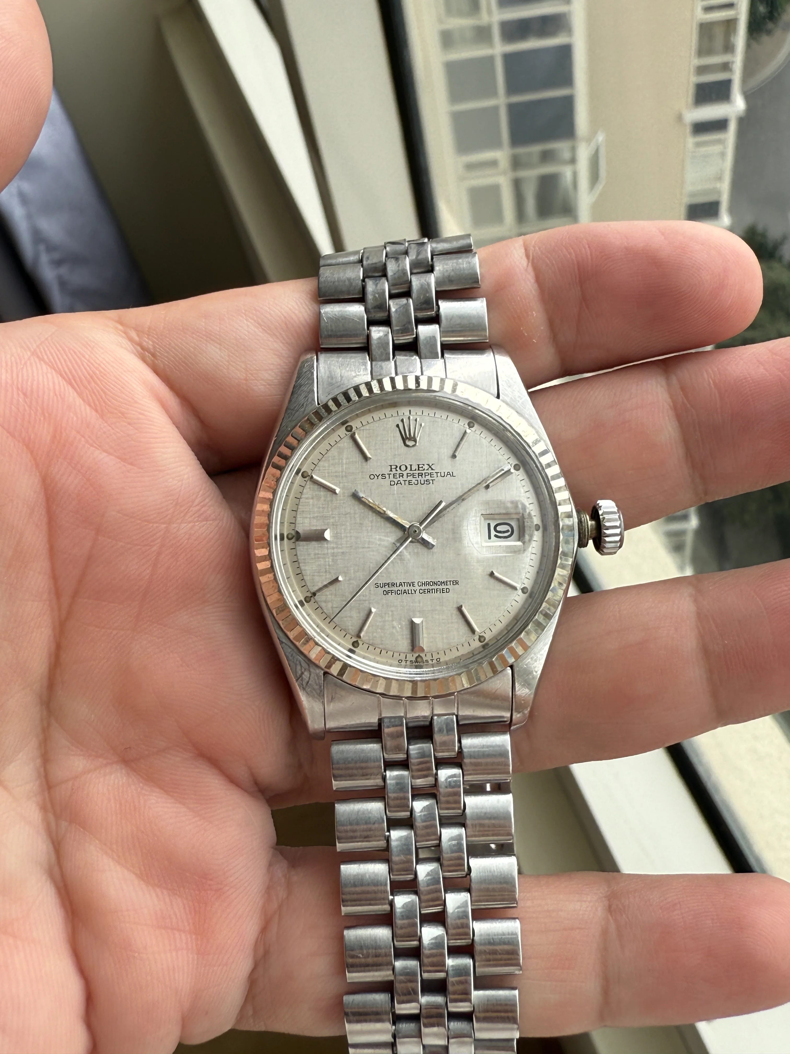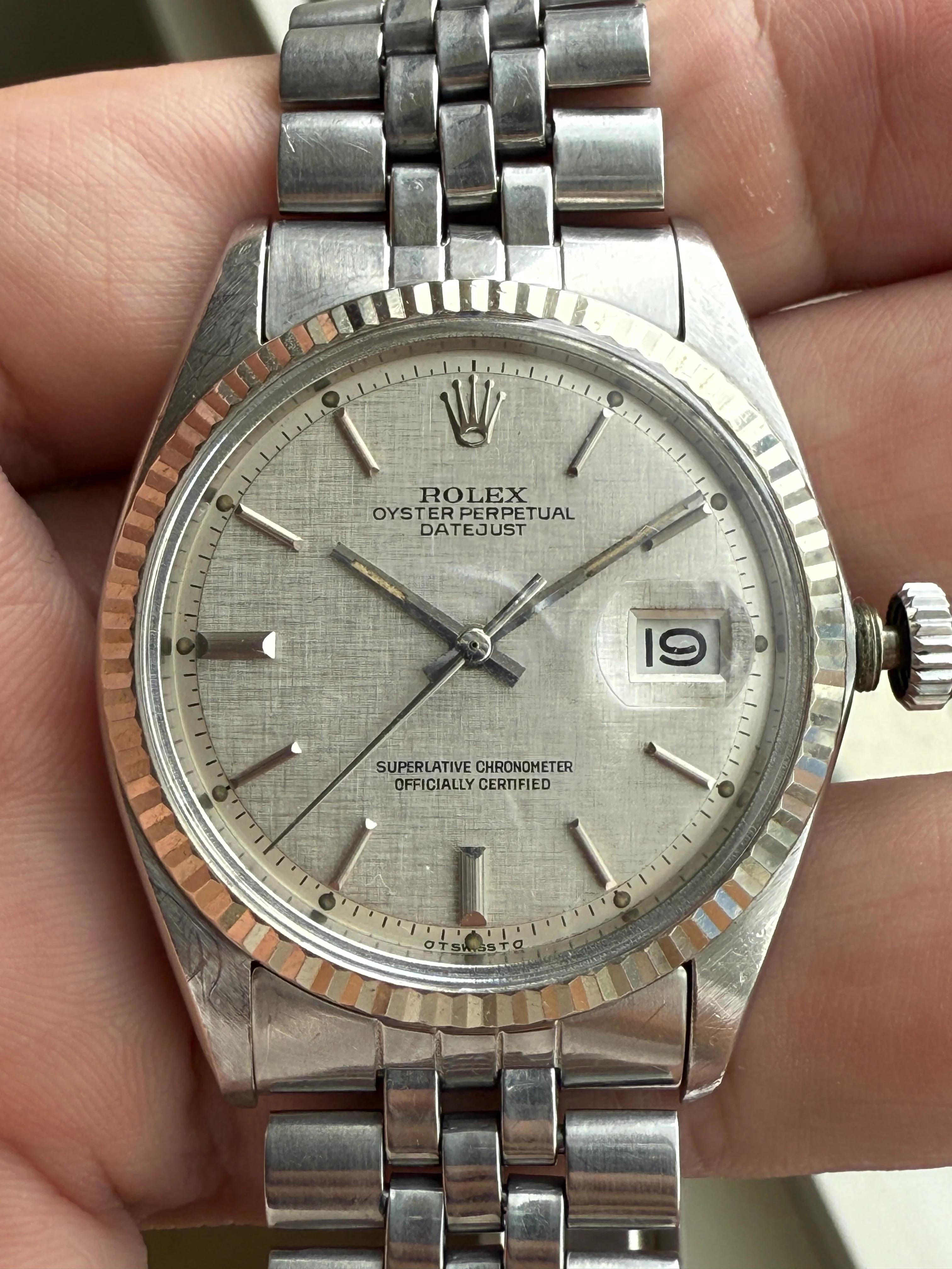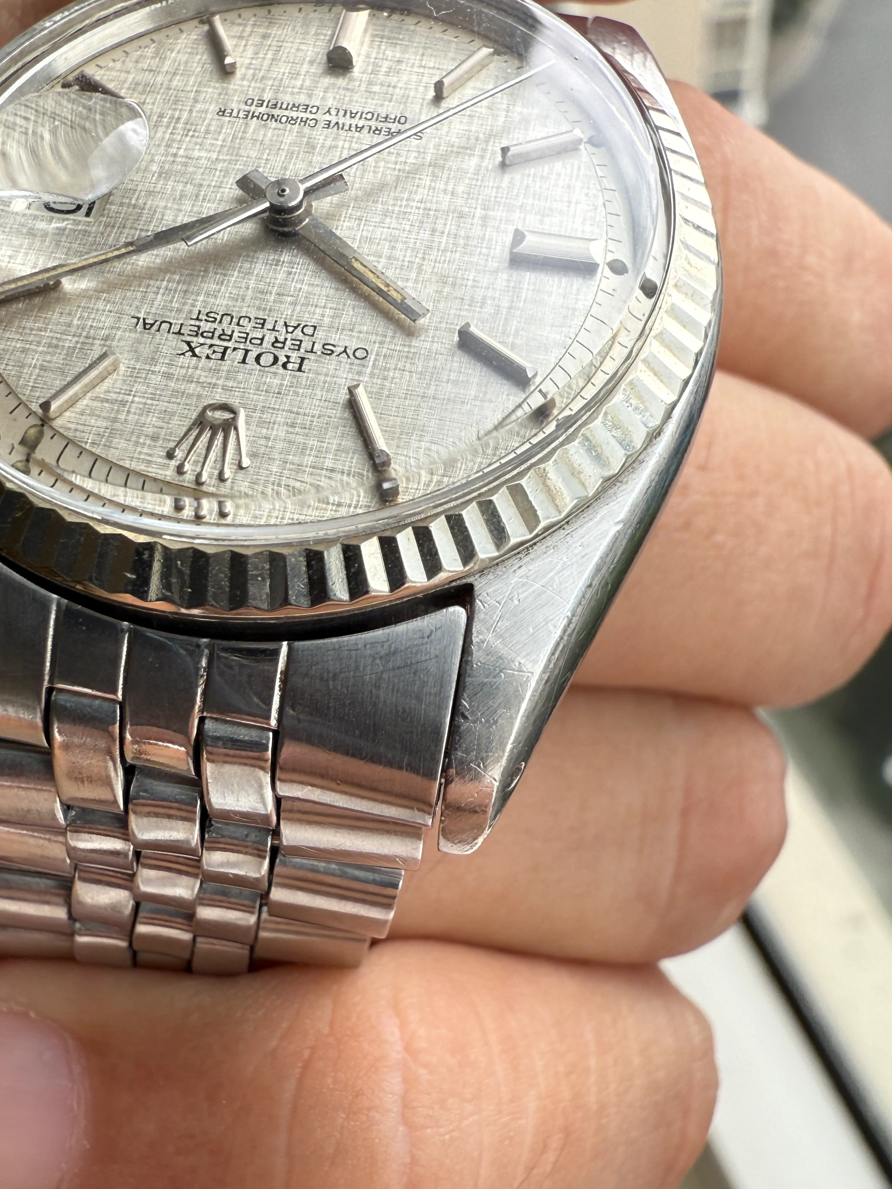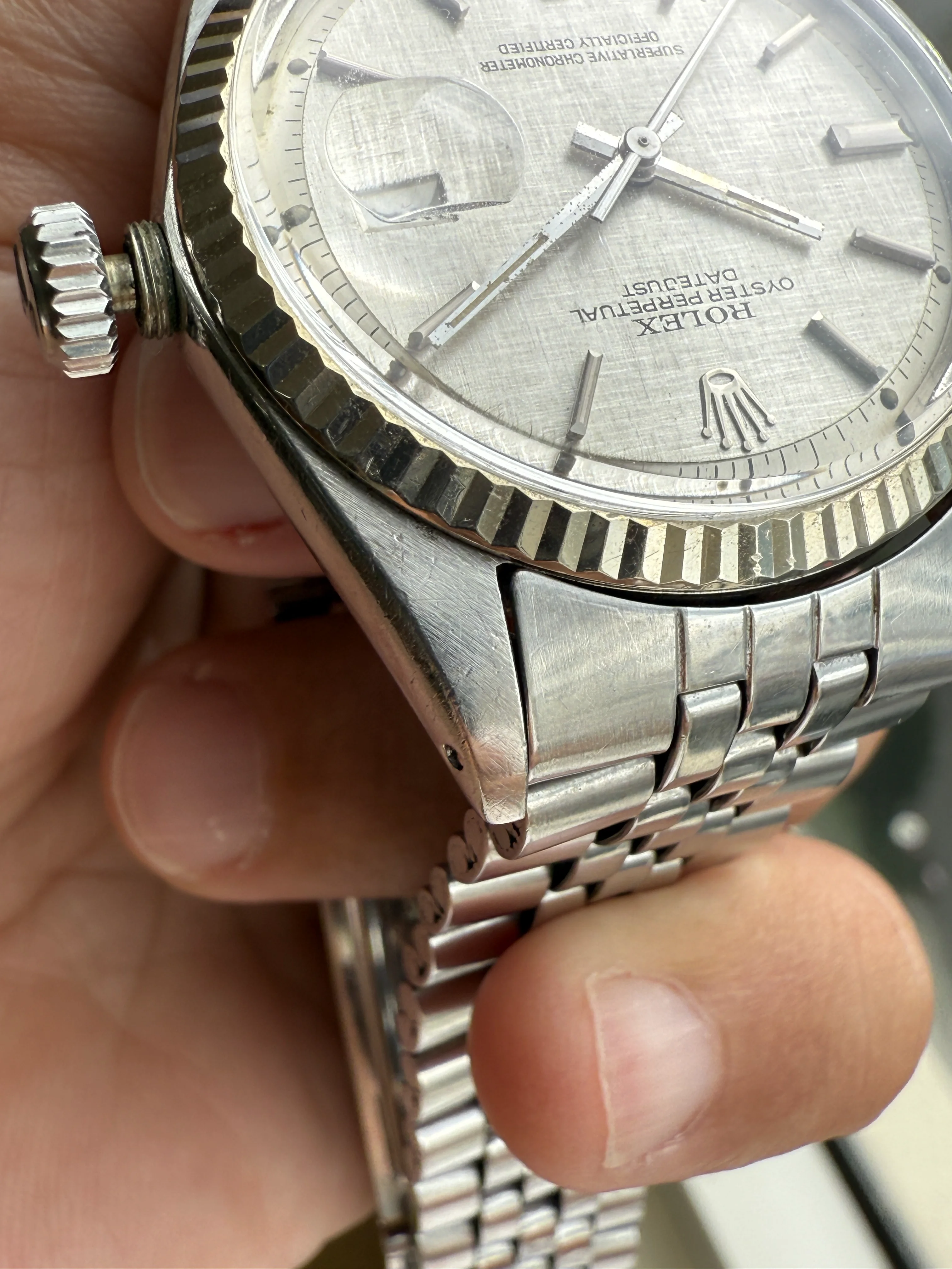 A very nice Rolex Datejust 1601, original sigma silver linen dial, fluted bezel, original jubilee bracelet with 55 endlinks, serviced, free shipping with insurance in EU.