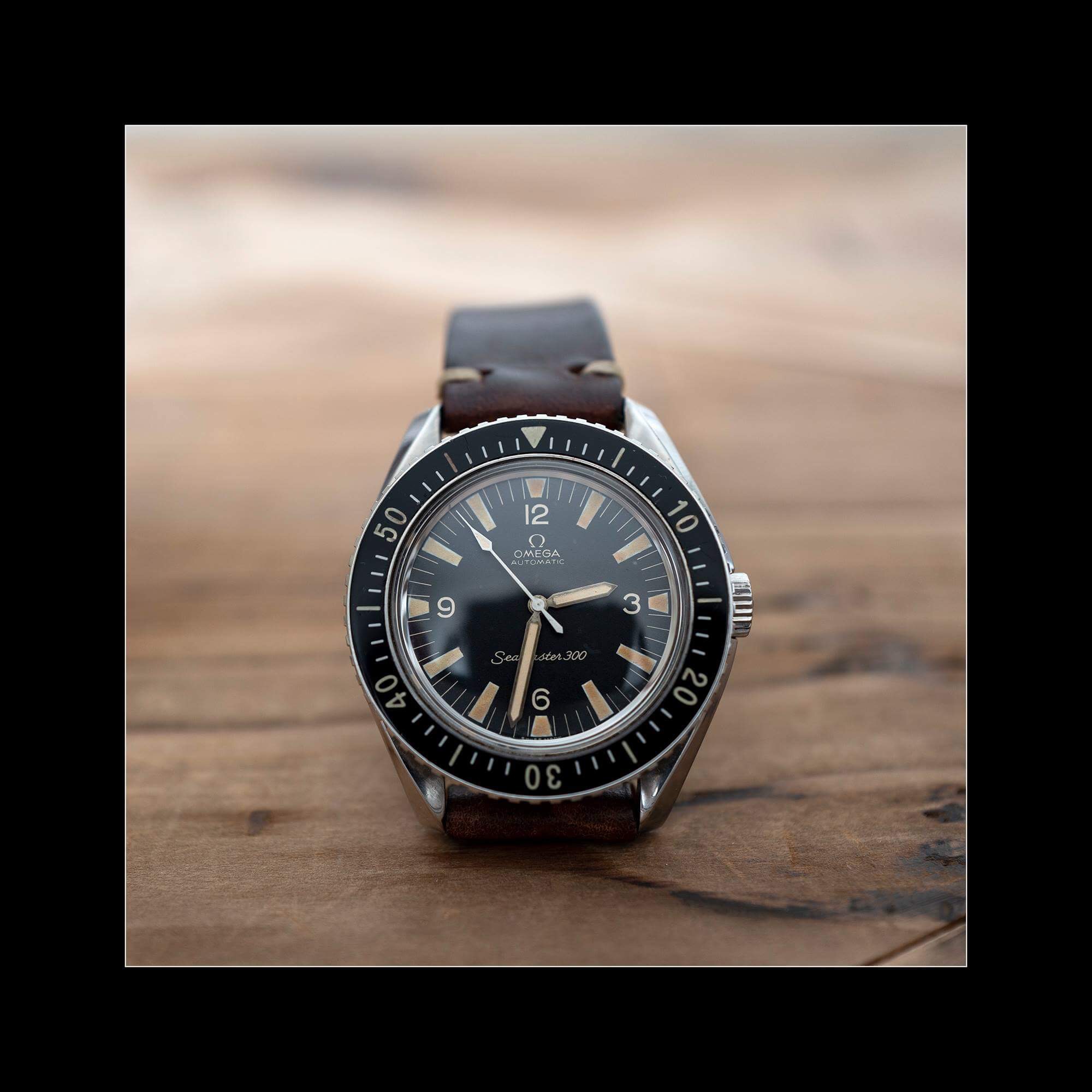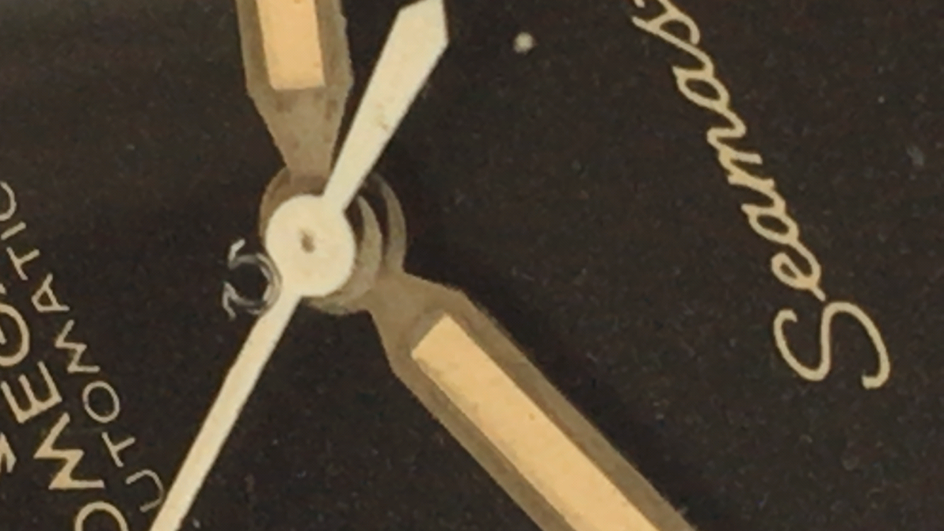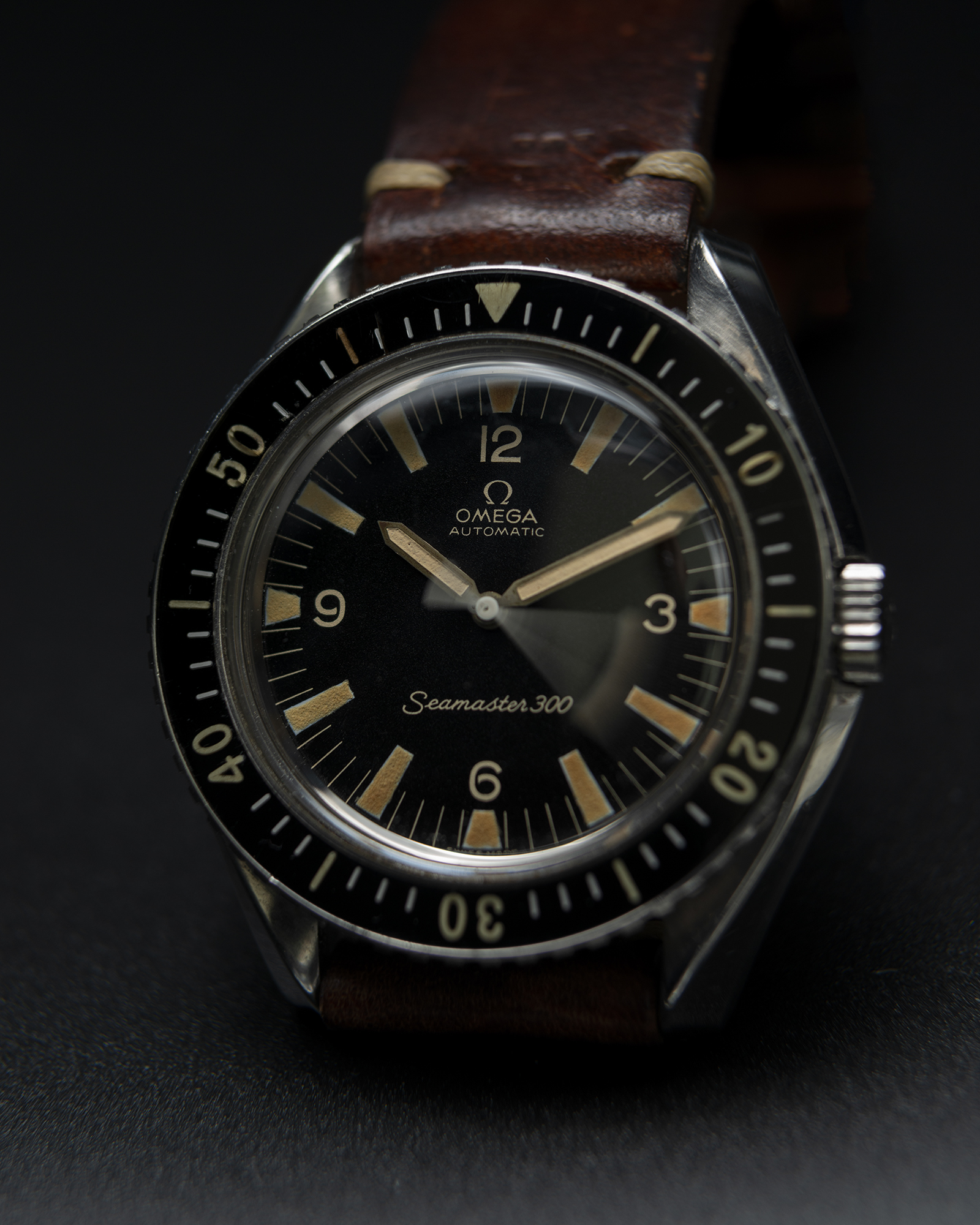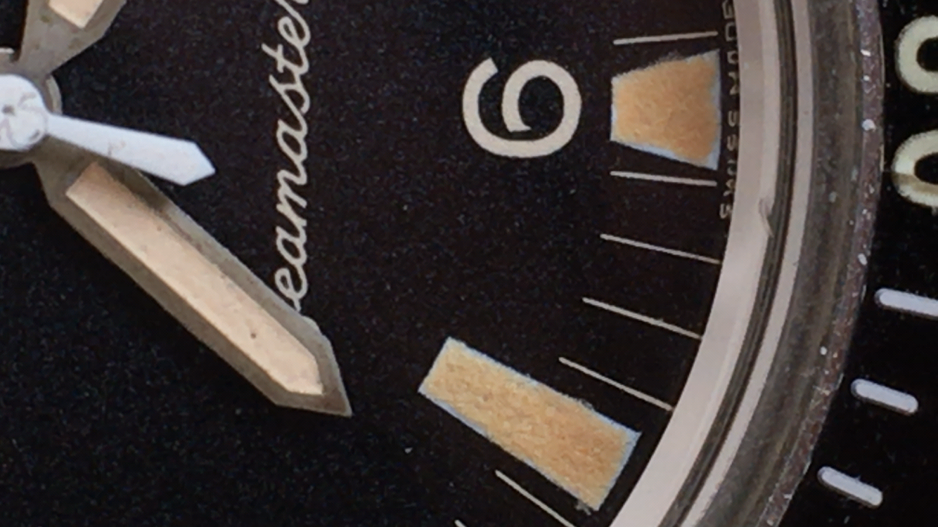 This was the first year of this model of Seamaster dive watches and is distinctive because of the gilt writing and the very simple bezel insert.