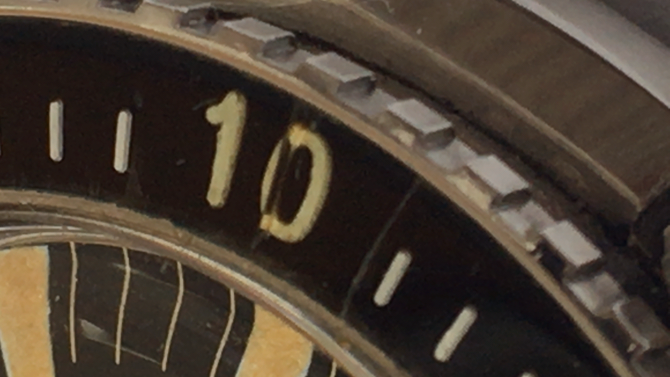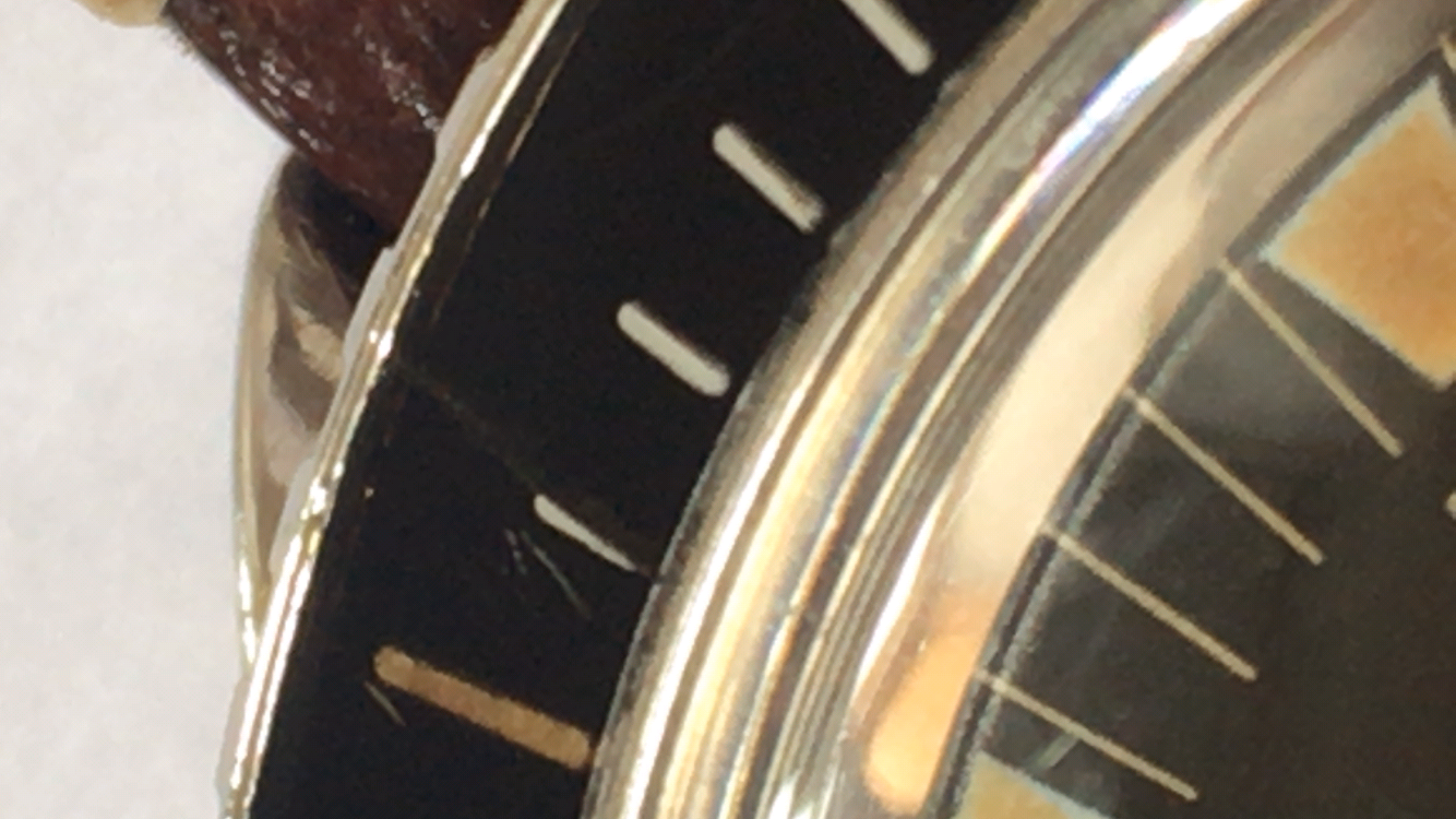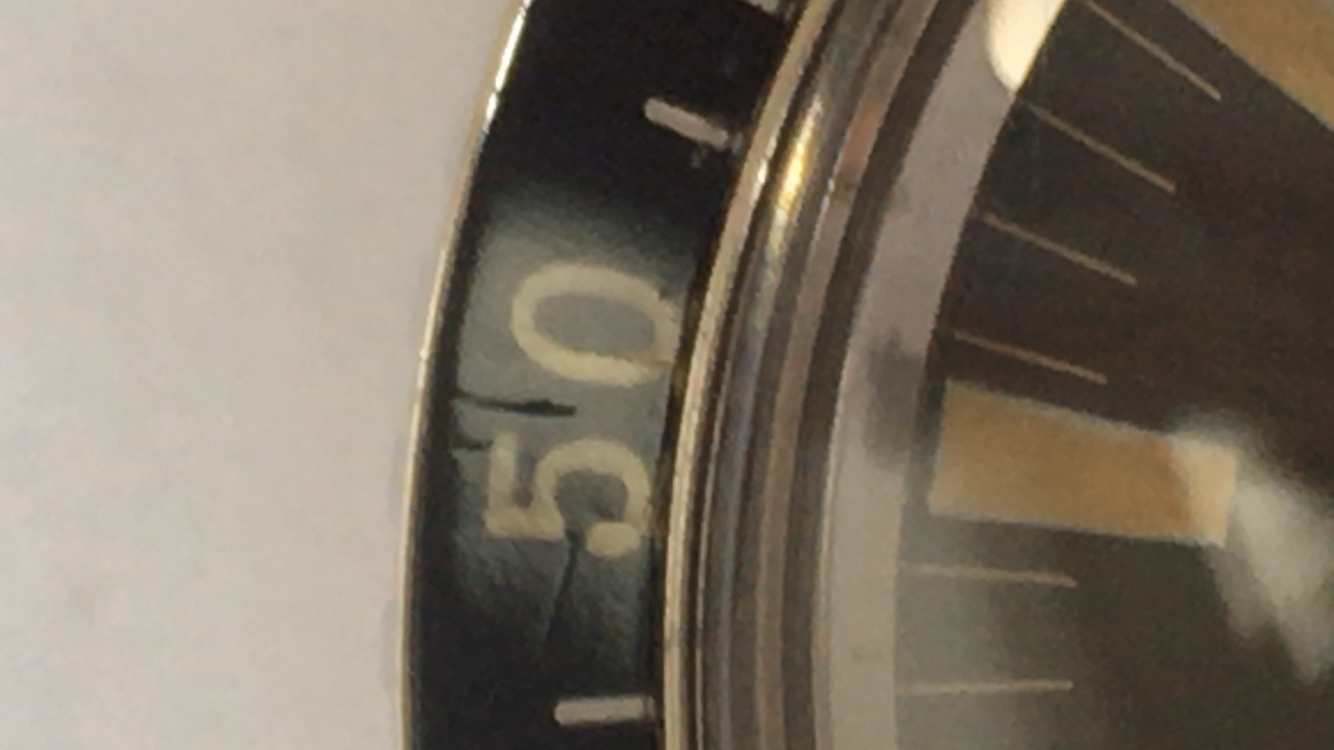 The case is in very good overall condition along with the bezel and the insert is one of the best I have seen. For full transparency here are two hairline cracks at 56 and 11 and a couple of marks (which look like flaws rather than damage) but it still has a beautiful gloss finish and the defects are only visible upon very close examination. To the naked eye it looks perfect.