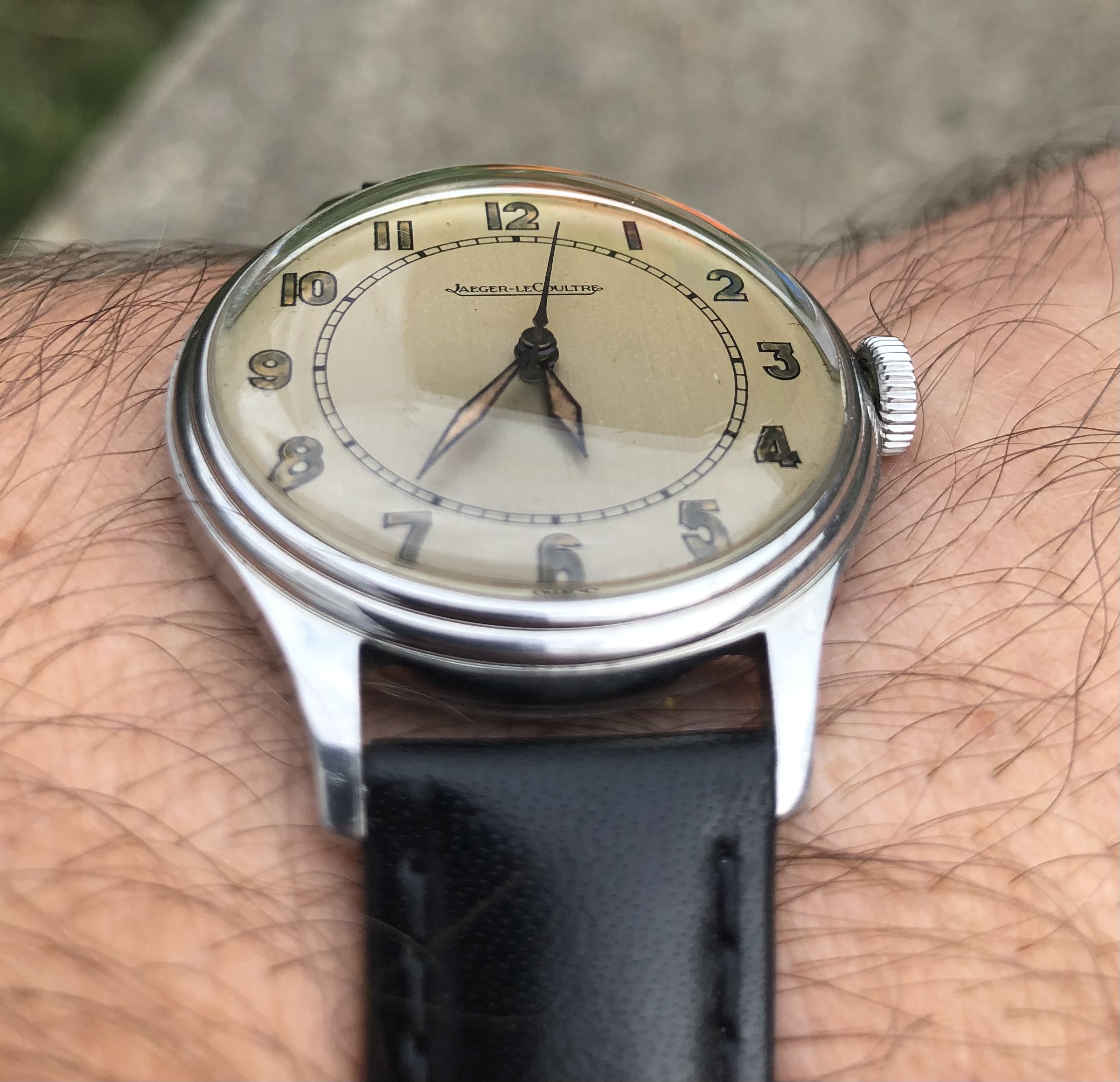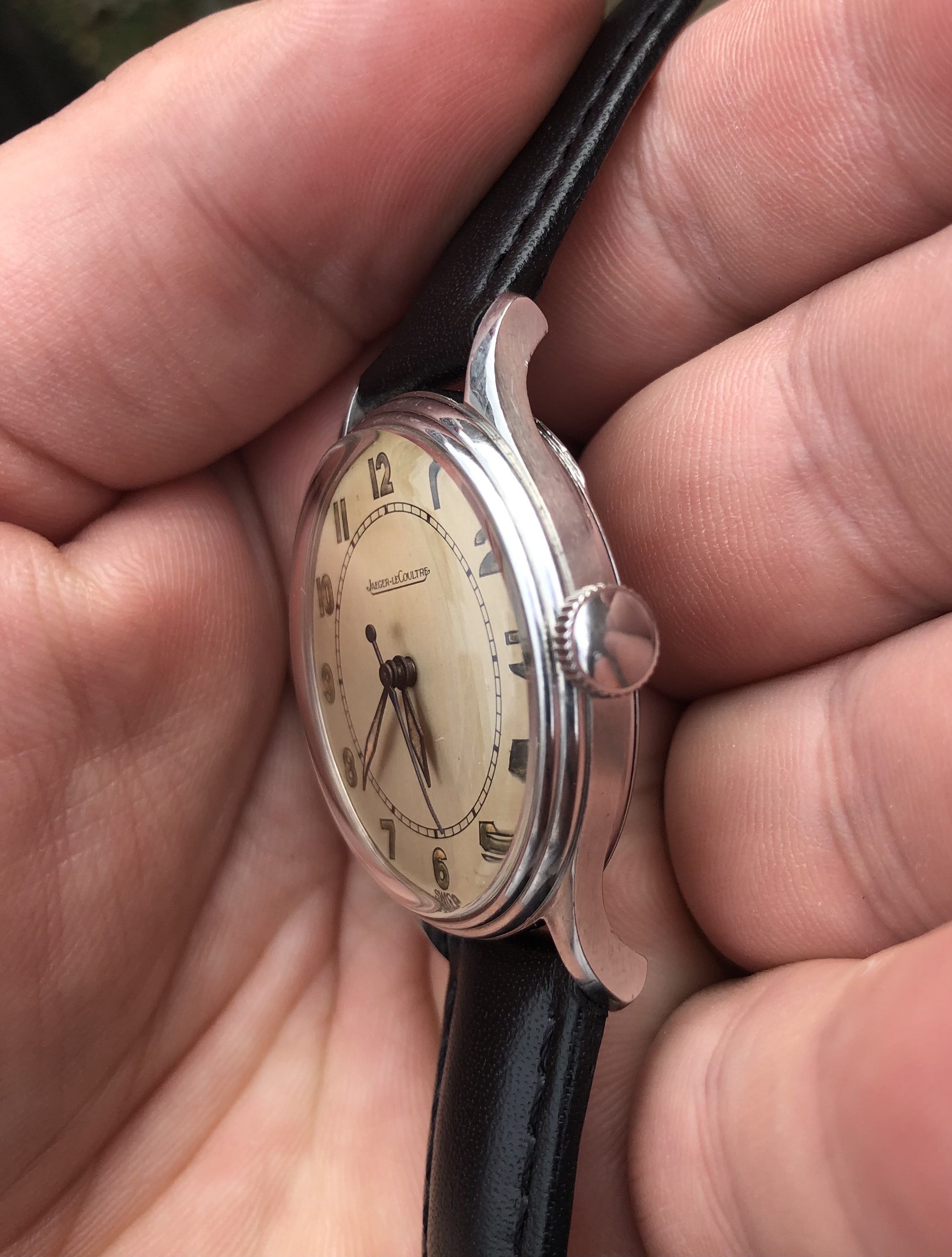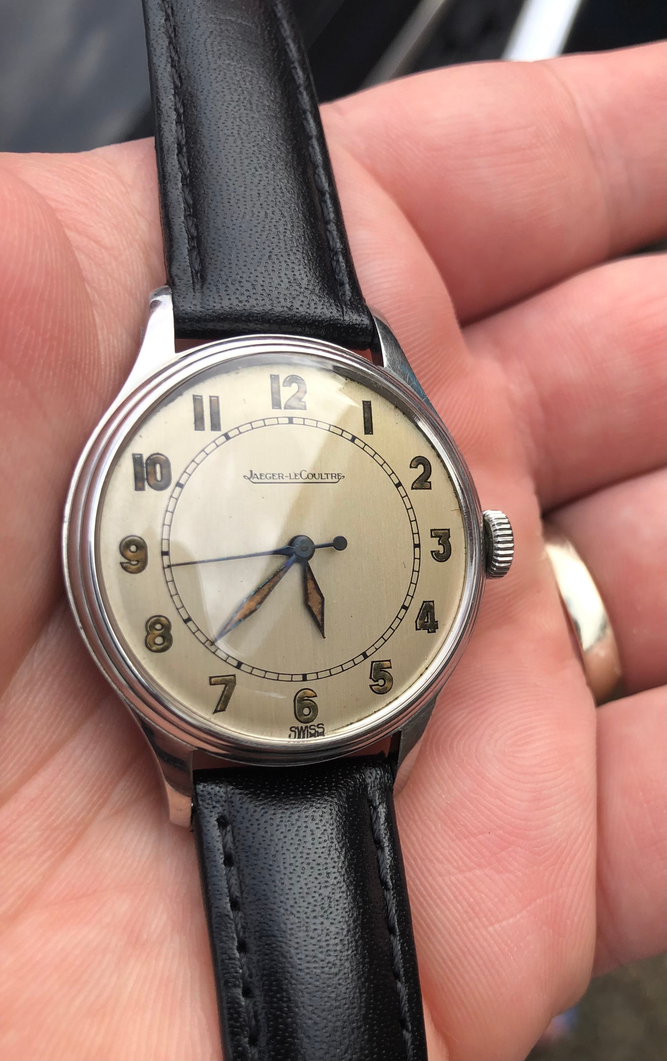 ·I have for sale my Jaeger-LeCoultre cal P478 from the 1940’s. 34mm with lovely case, crystal is scratch free. I believe this example to be all original and appears period correct and un polished. I’m not sure on service history but I’ve had for around a year and winds, sets and keeps excellent time. Comes with 2 16mm straps, a black leather and a tan suede with reproduction jlc buckle.