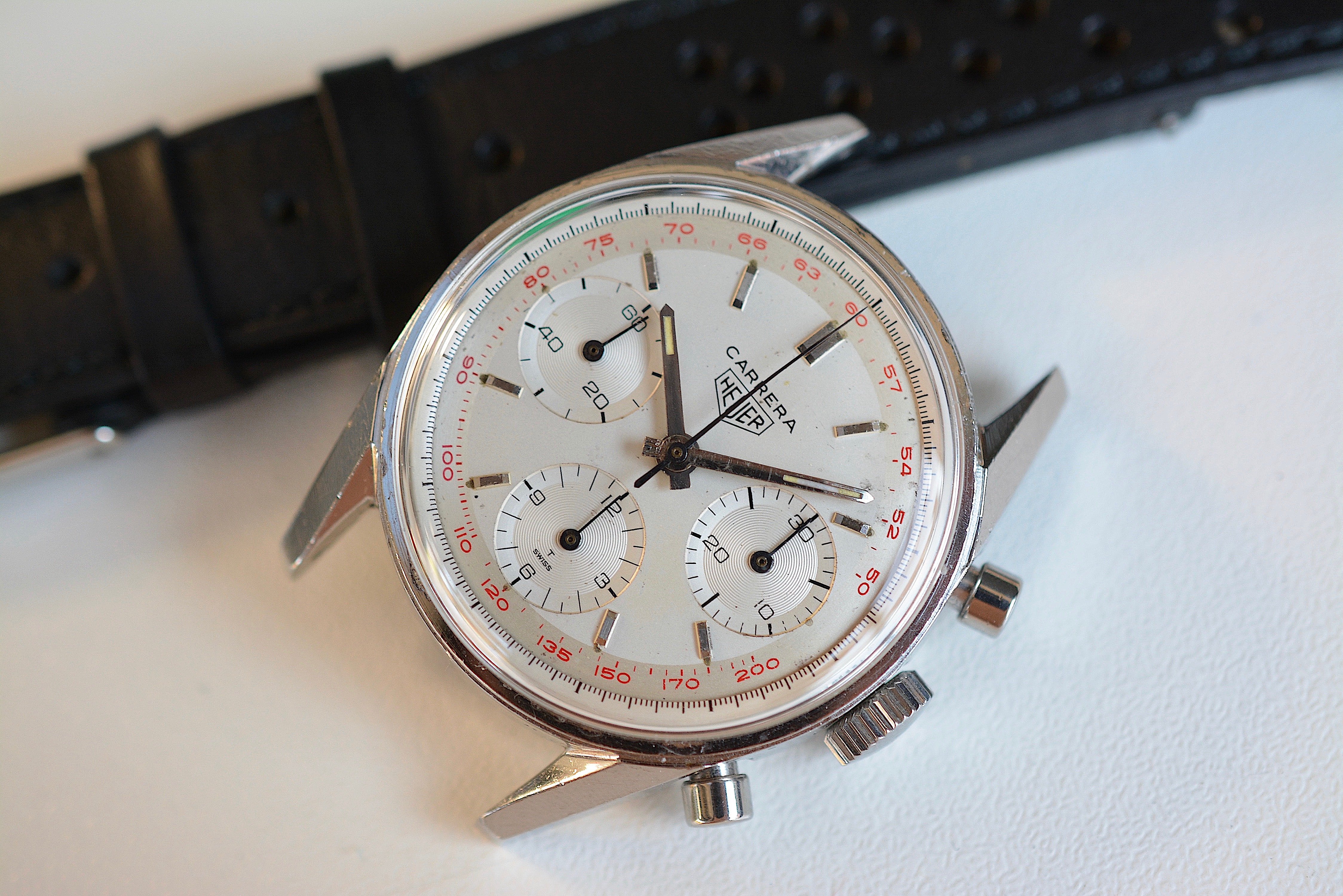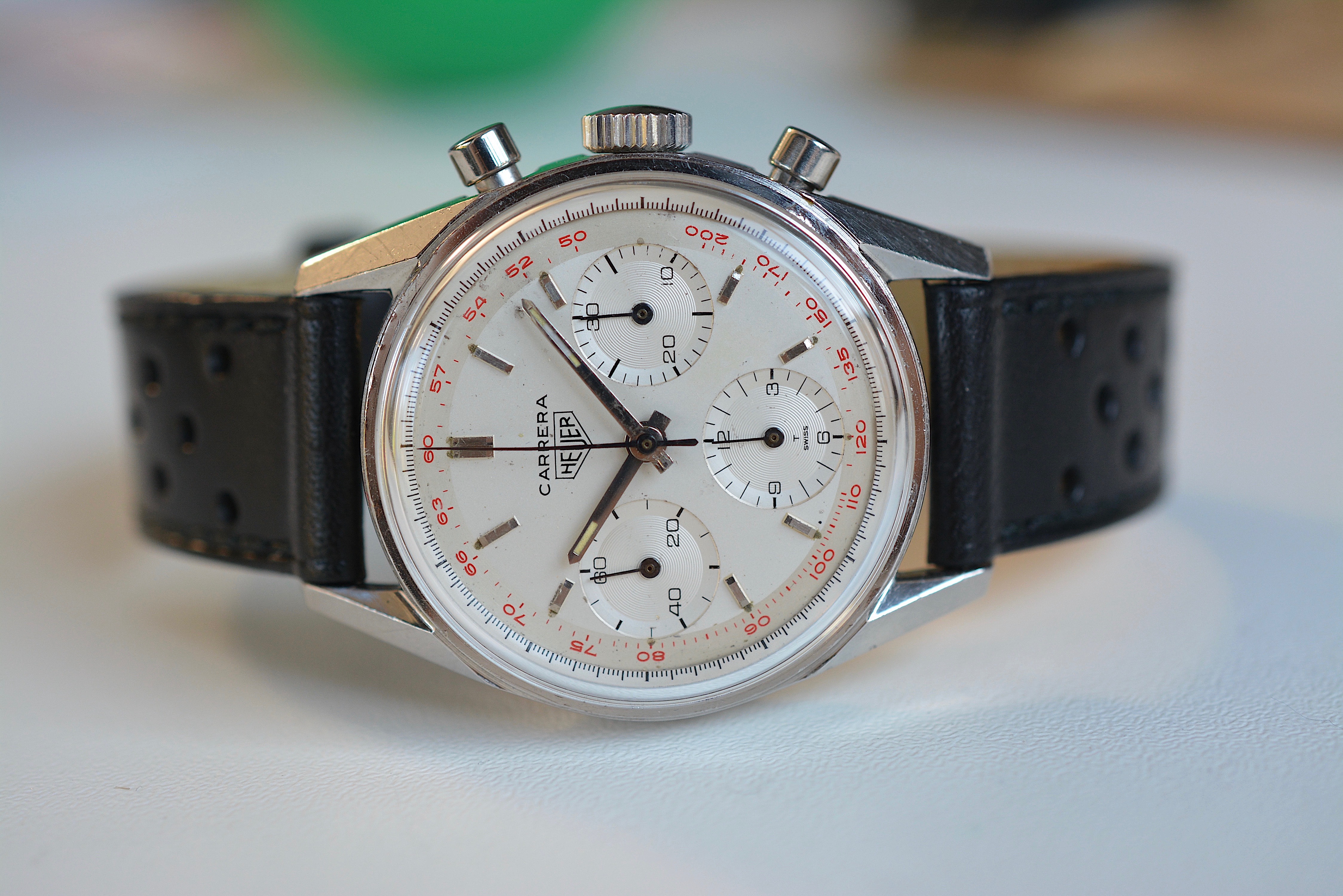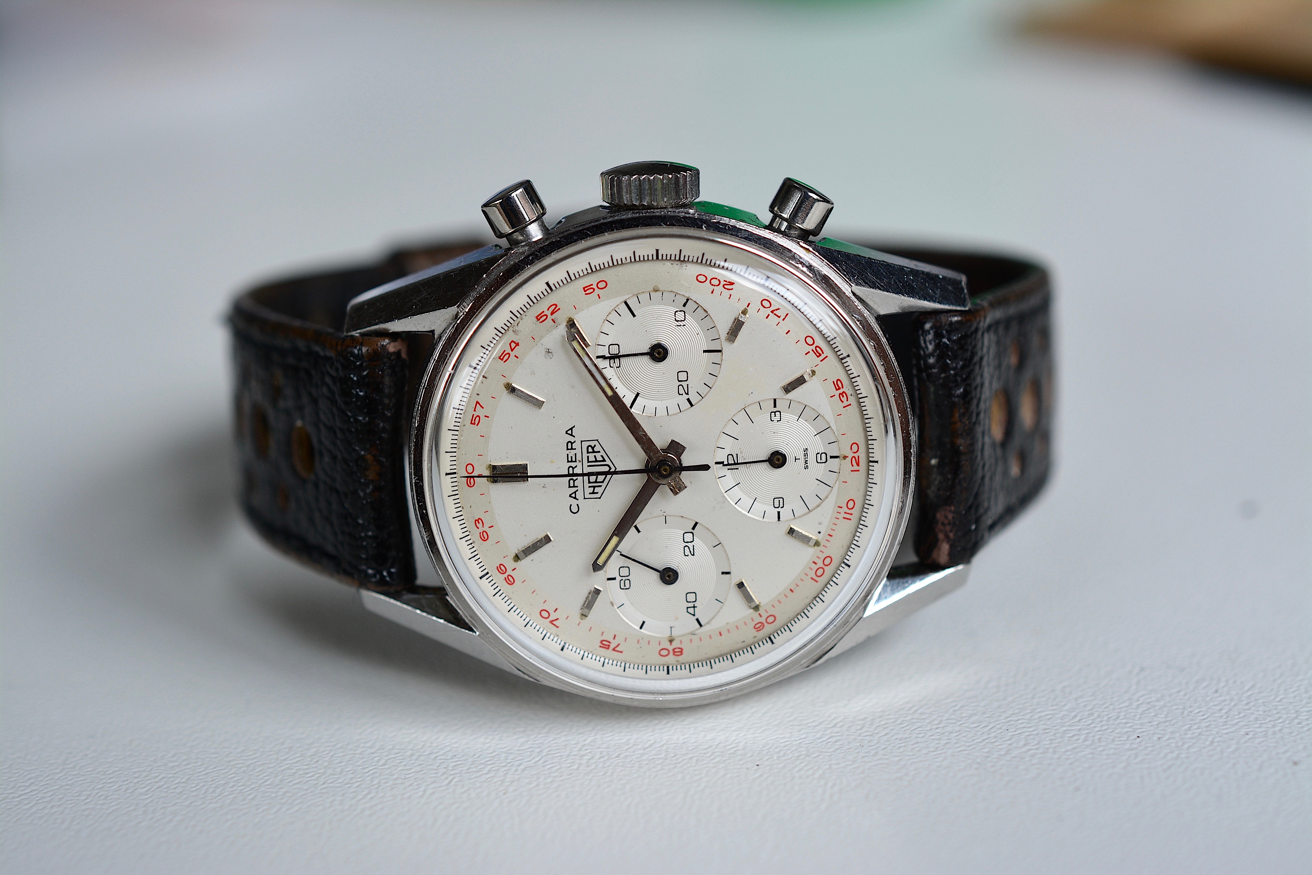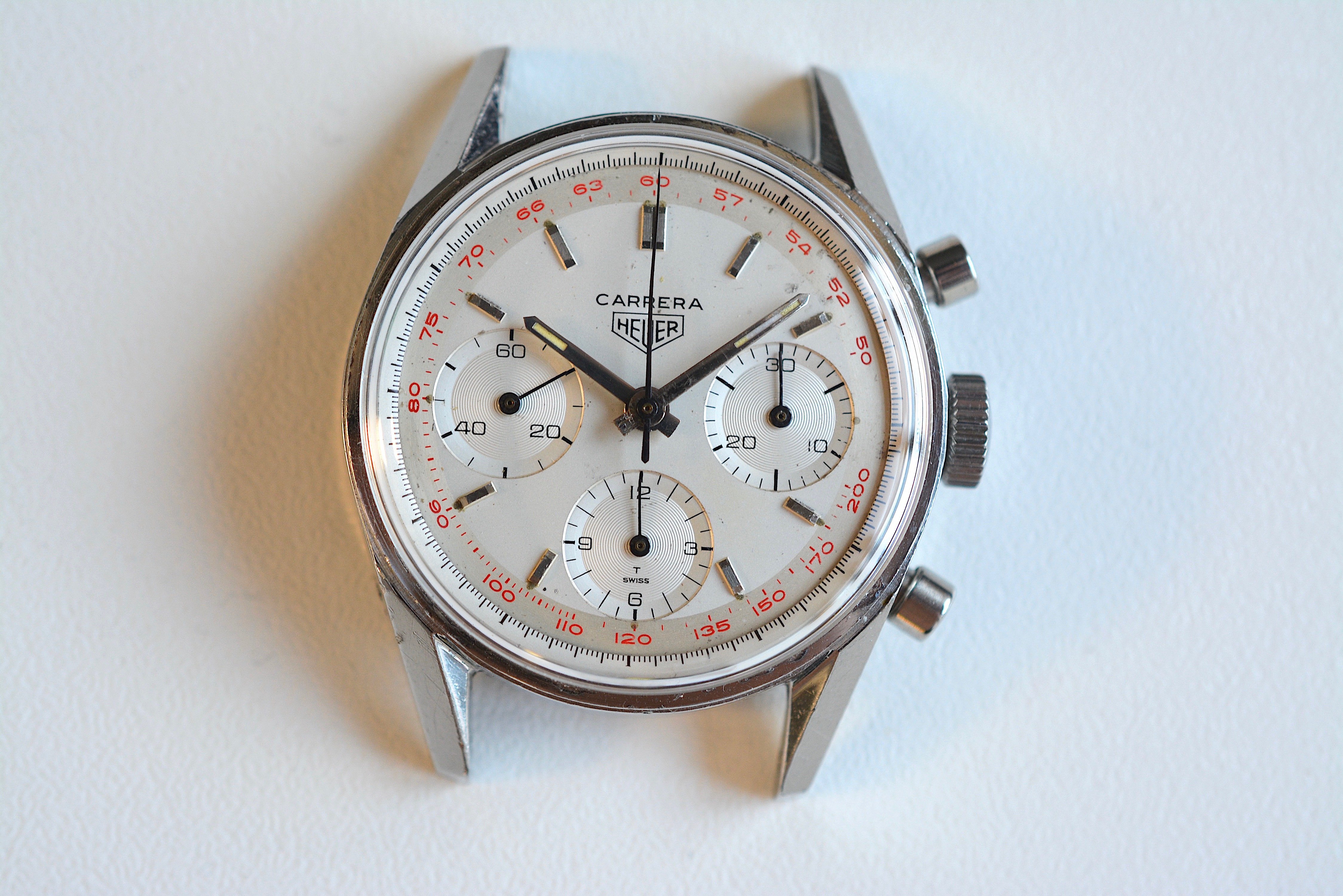Model: Heuer Carrera 2447 with Tachymeter scale on the dial