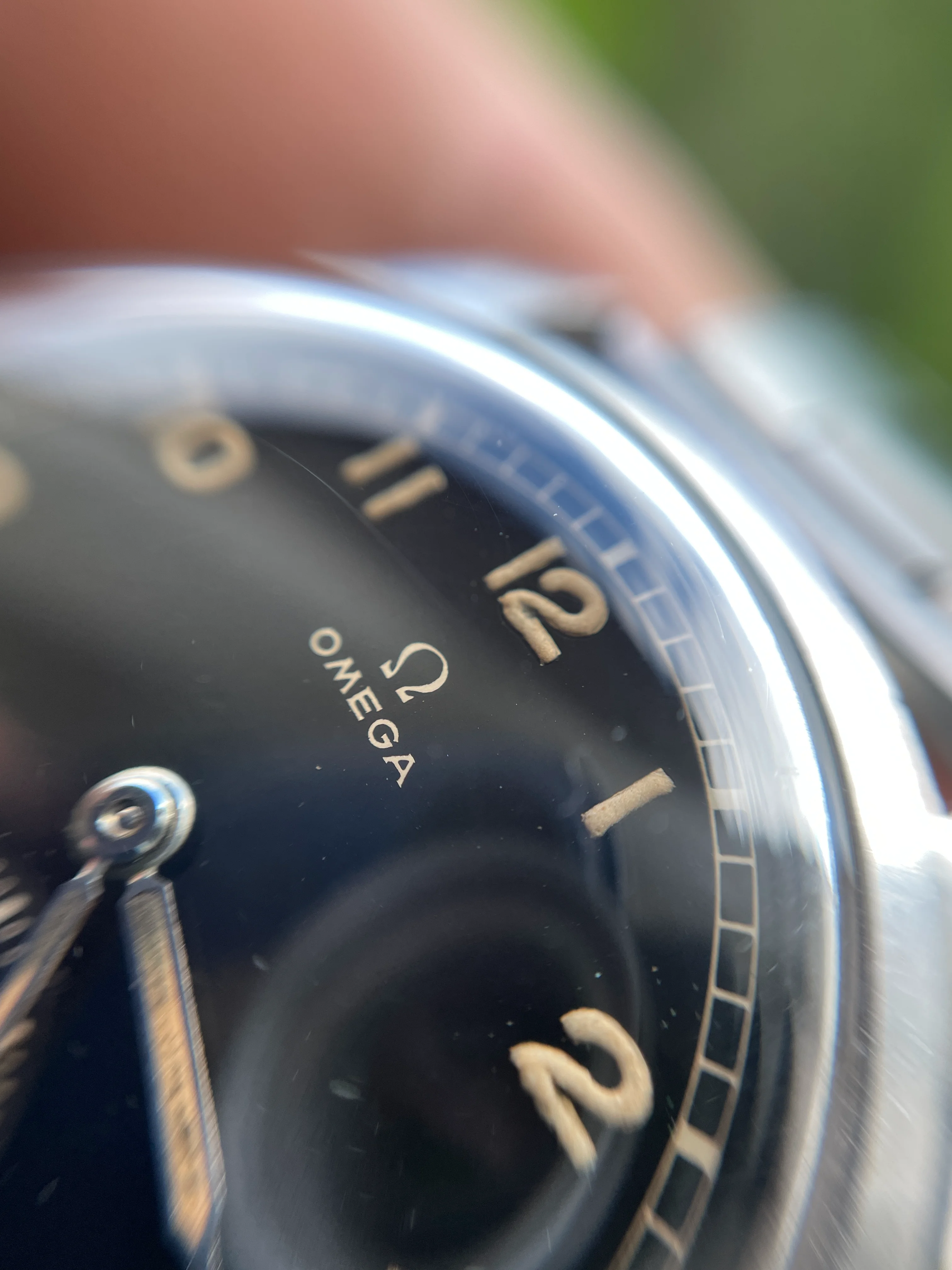 A preserved glossy black gilt dial, railroad minute markers and puffy matching lume are all uncommon to find on their own. But to find them all in one watch and in addition to the exceptionally good case its almost impossible.