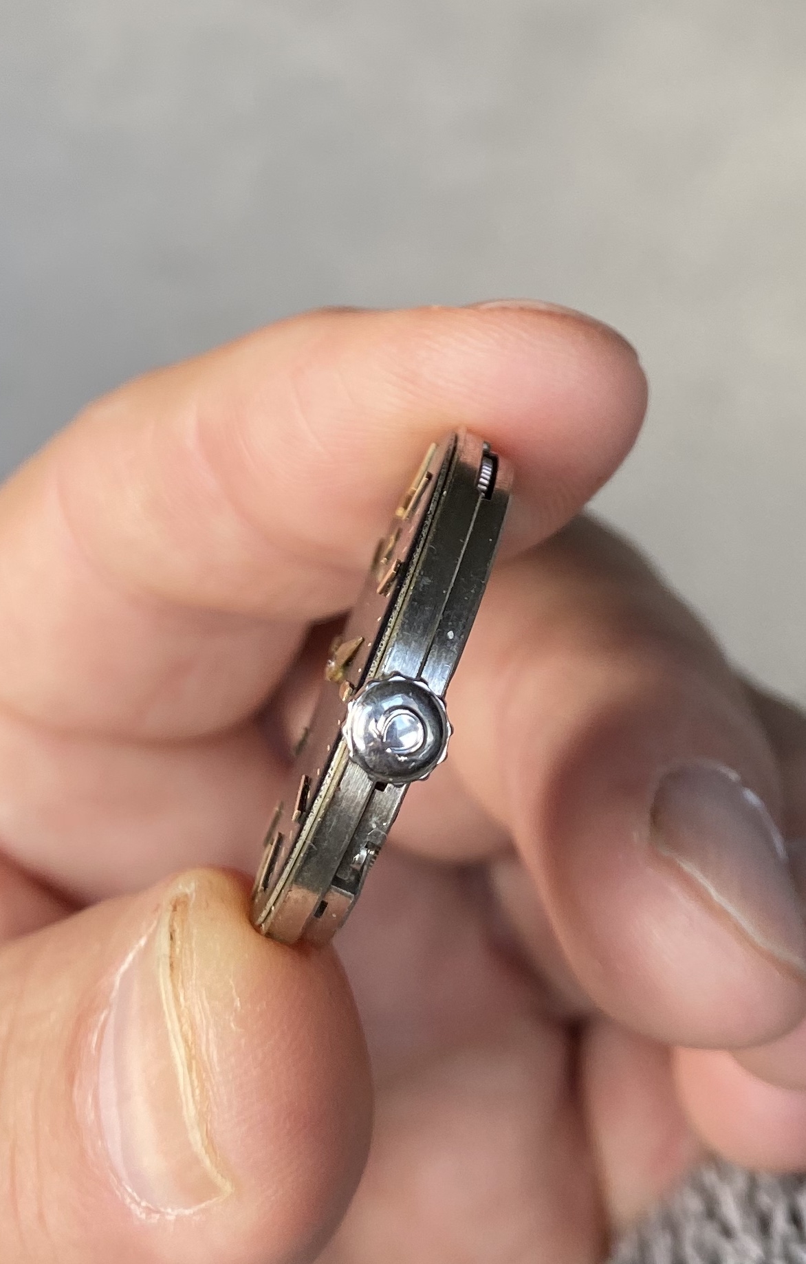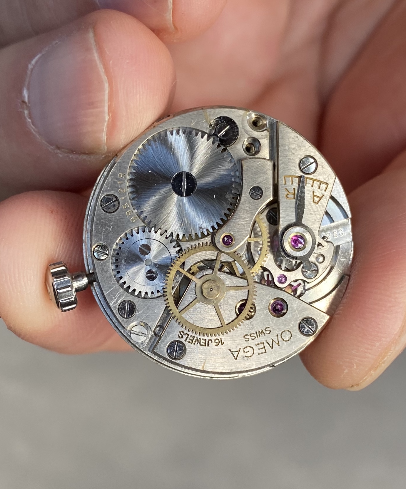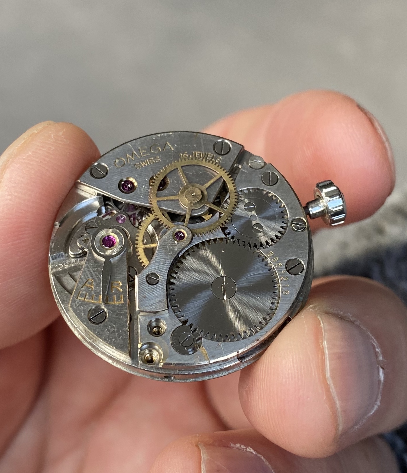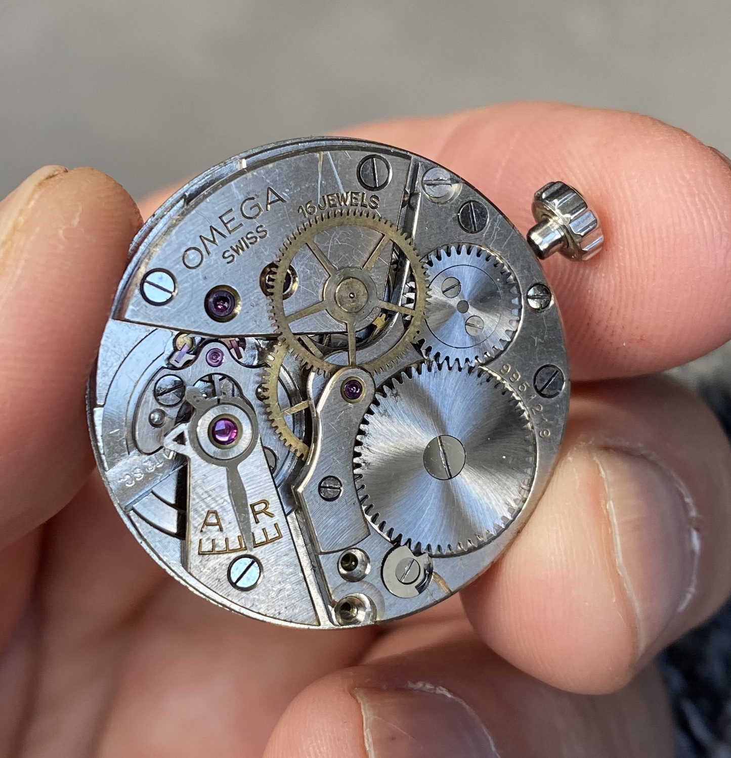 Movement from 1943/44 (correct me if I’m wrong) with crown/stem attached.
