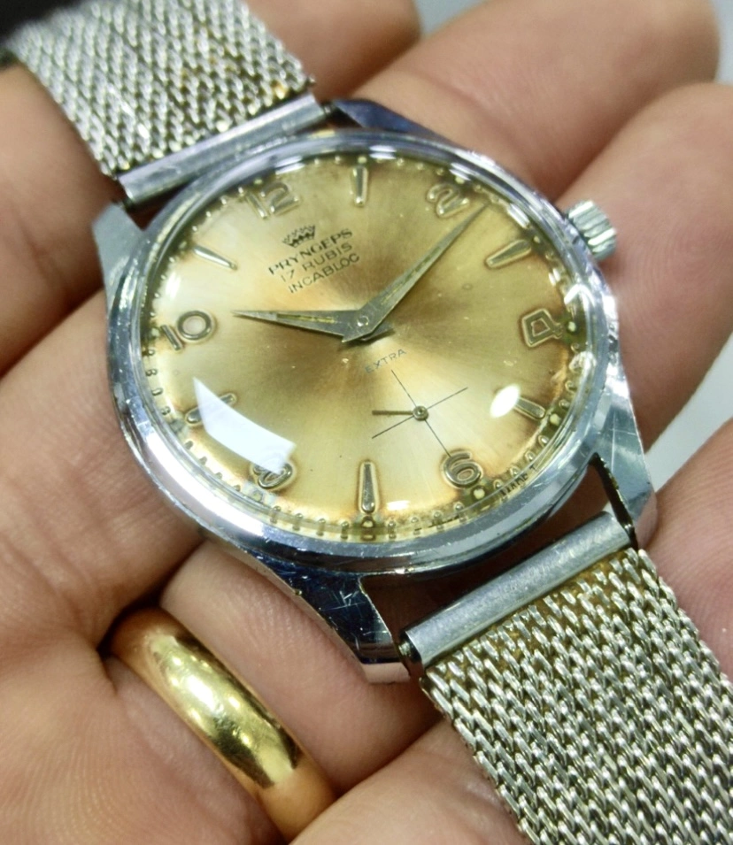 There seems to be precious little about Pryngeps online apart from that they were based in Milan and started out in 1956. I stumbled across this watch whilst casually browsing eBay, and was immediately taken by the dial patina. Based around the banning of radium dates early 60’s I am presuming this to be a late 50’s model. It is running a sturdy looking AS1130 movement.