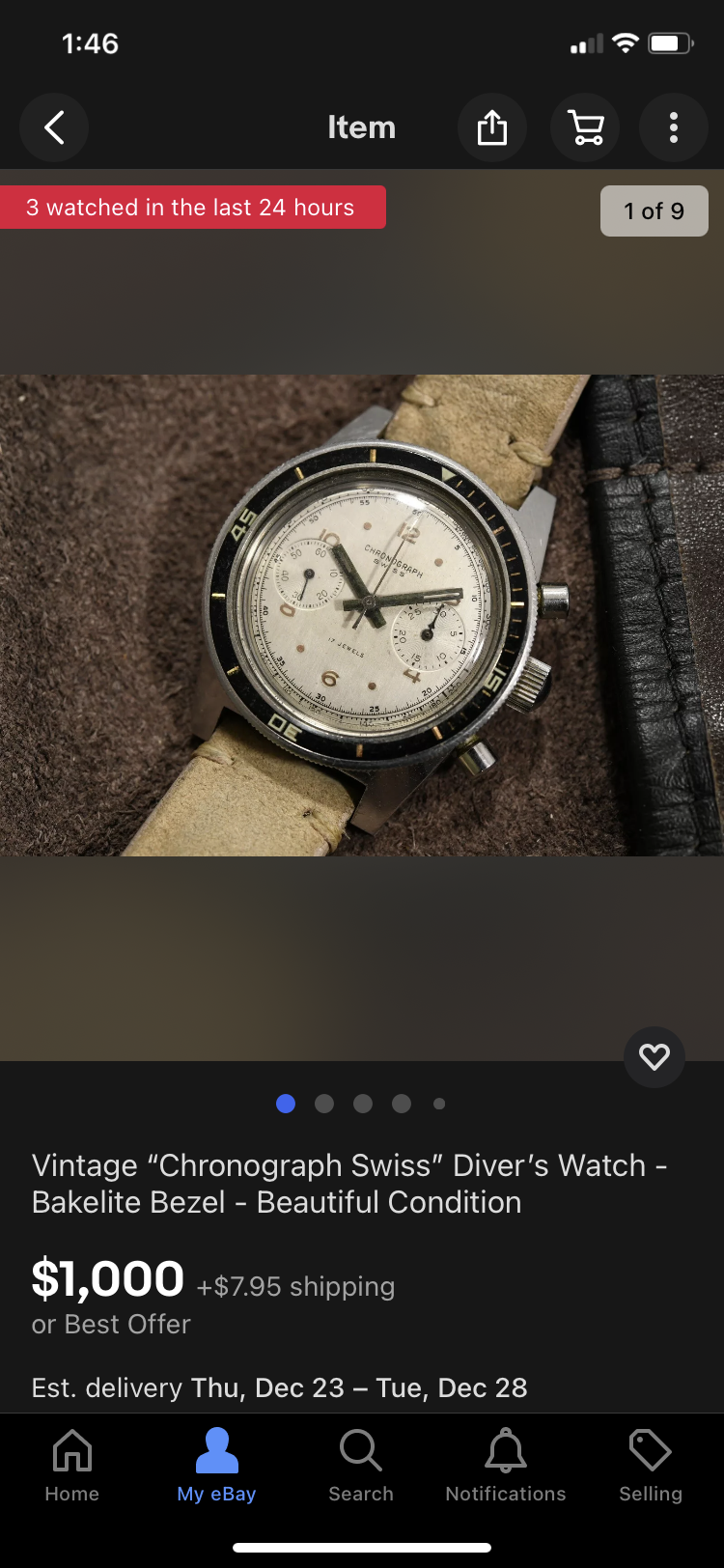 Looks attractive at first blush, nice Bakelite bezel, and late 60’s diver/chrono case, love it-love it…but wait