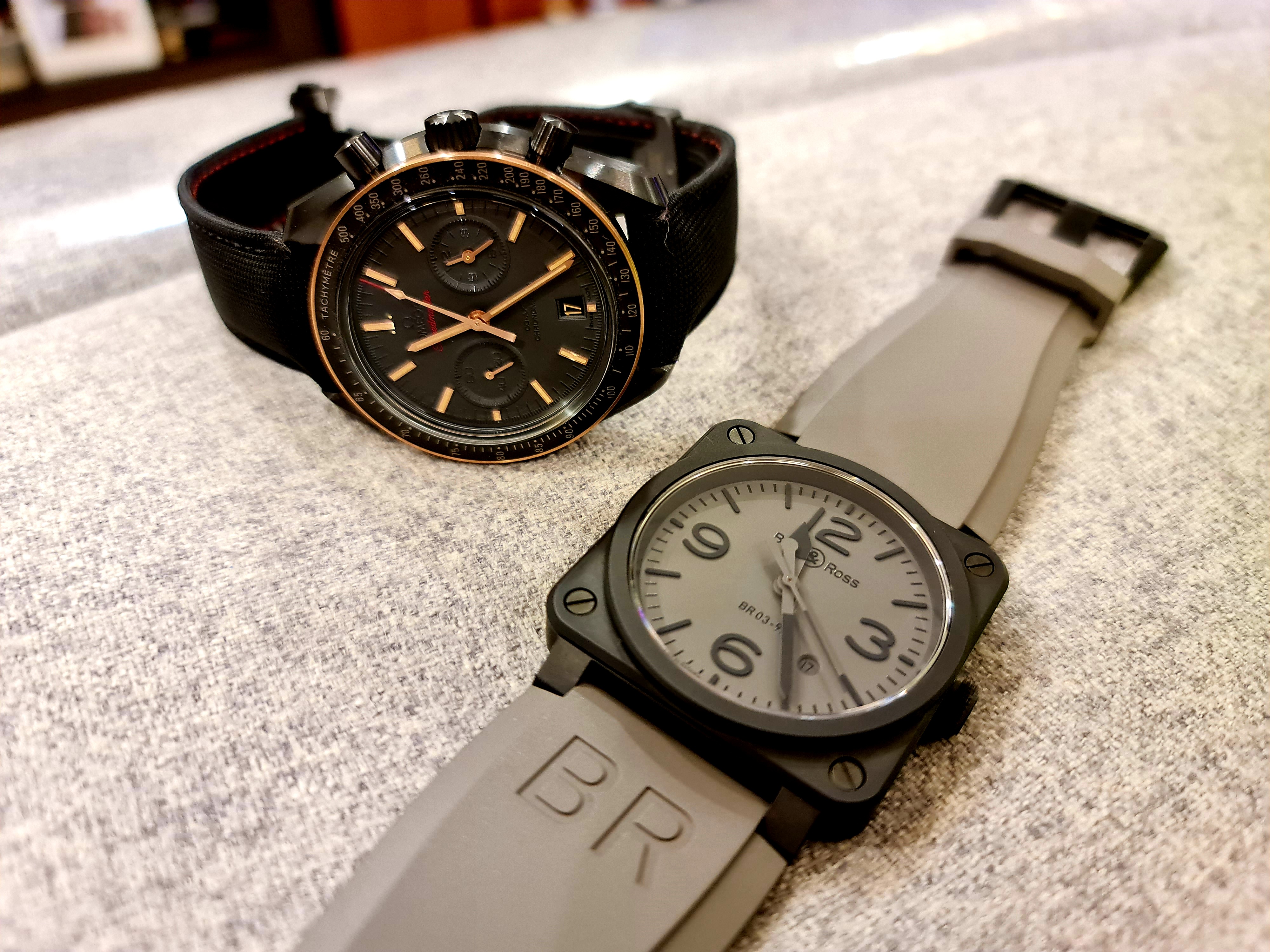 The brushed ceramic is semi glossy, reflects light in a very unwieldy way. The Sedna Gold hands and markers makes it totally legible even in dark places, and adds a touch of luxury/class to an otherwise tooly/sporty watch