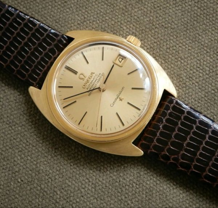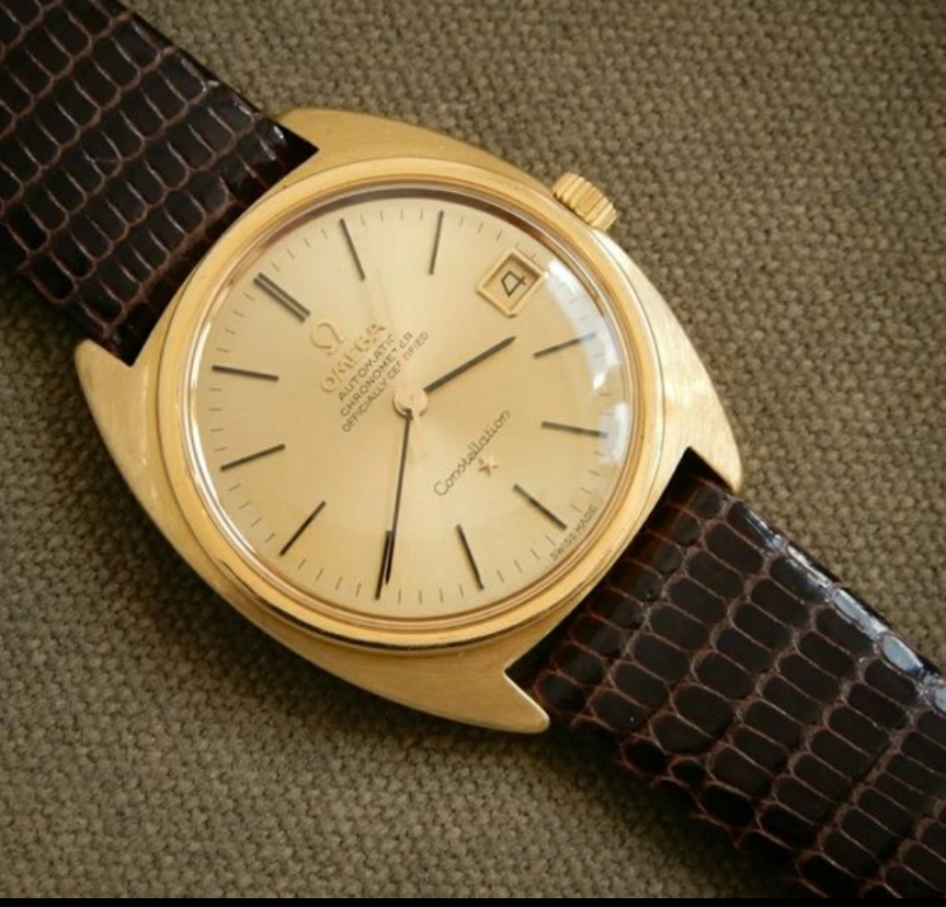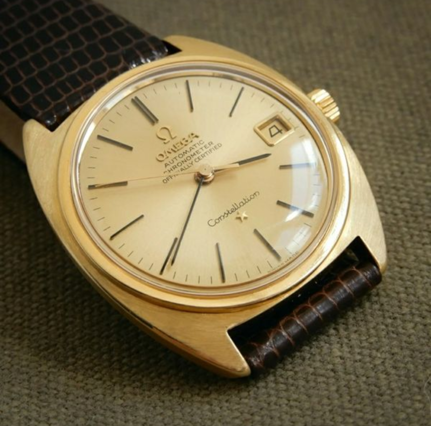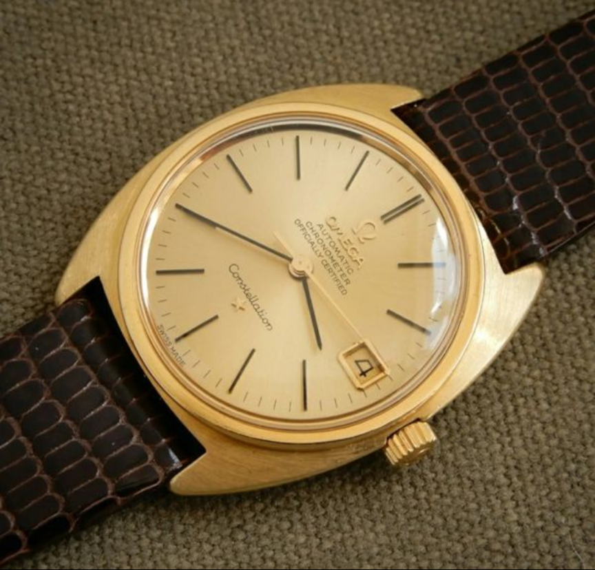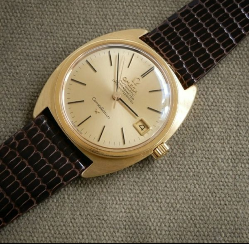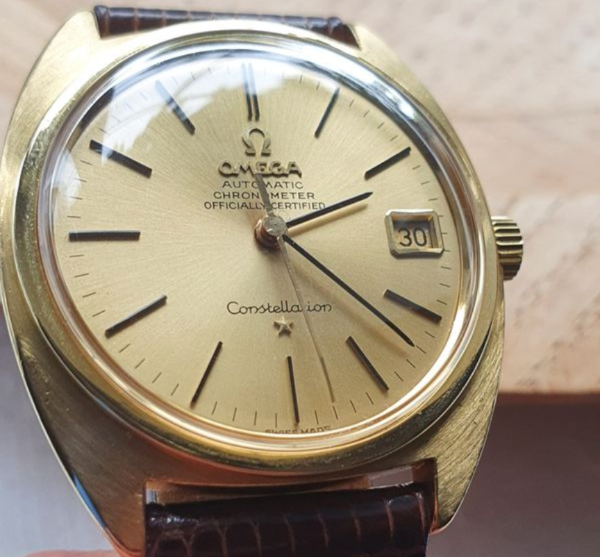 Very clean example and serial number checks out. Not 100% on the dial. I see some 18k examples have OM on dail, though maybe only french versions and whether the batons are the correct (Onyx inlaid). Also not sure if the bezel would have been polished or the coin style as I have seen on a lot of Constellations. Also can't seem to confirm whether crown is original to watch though omega stamped.