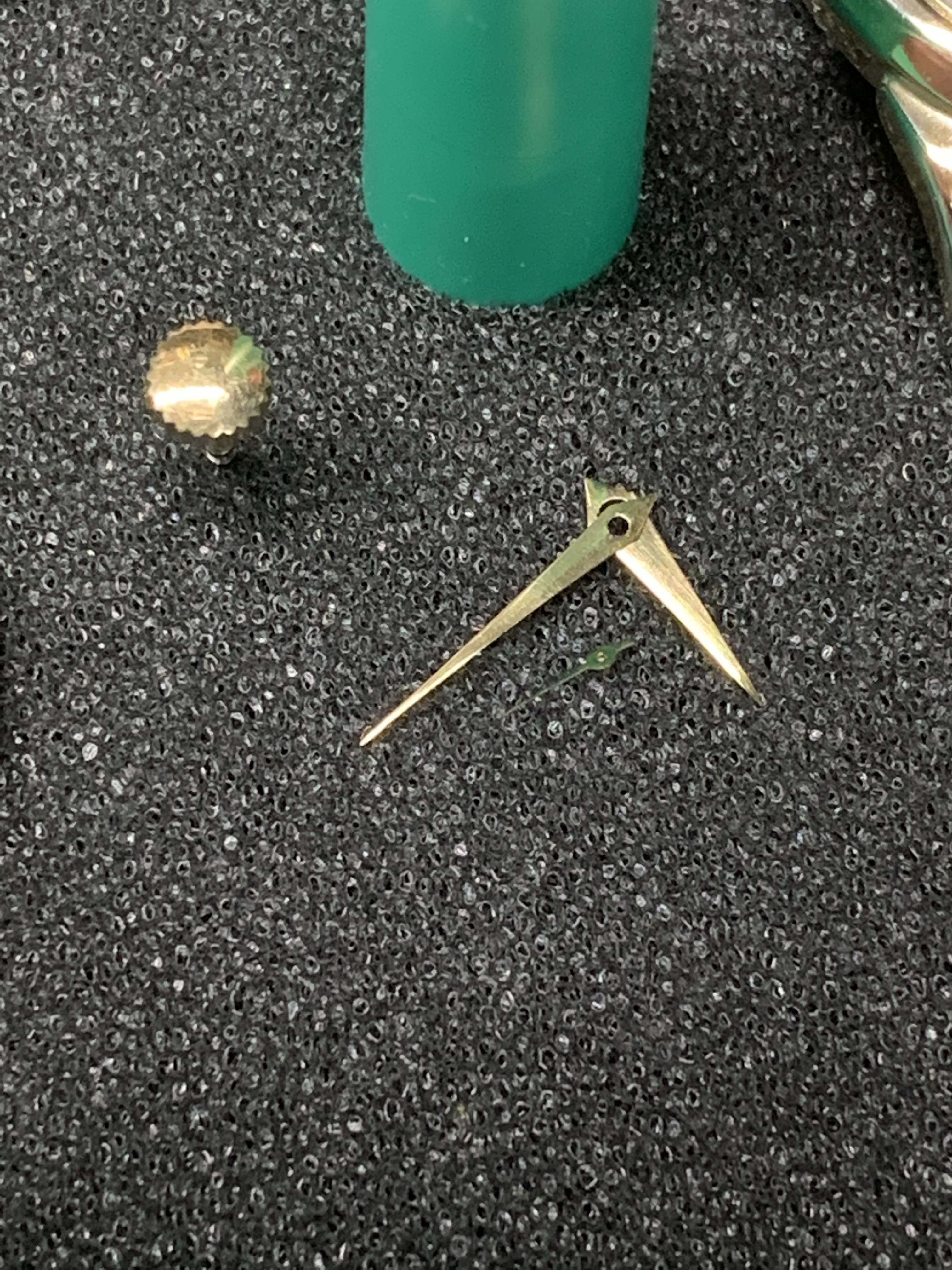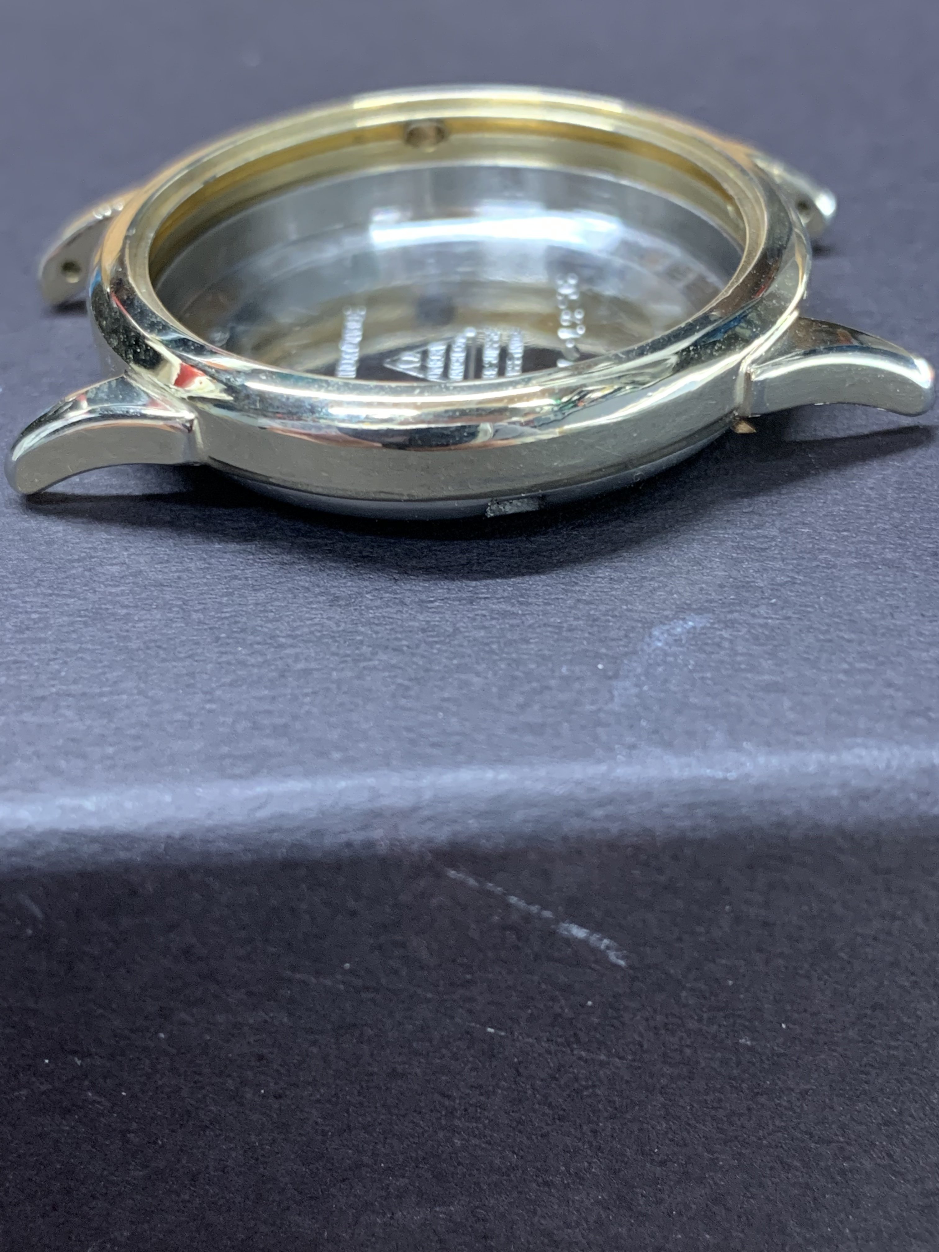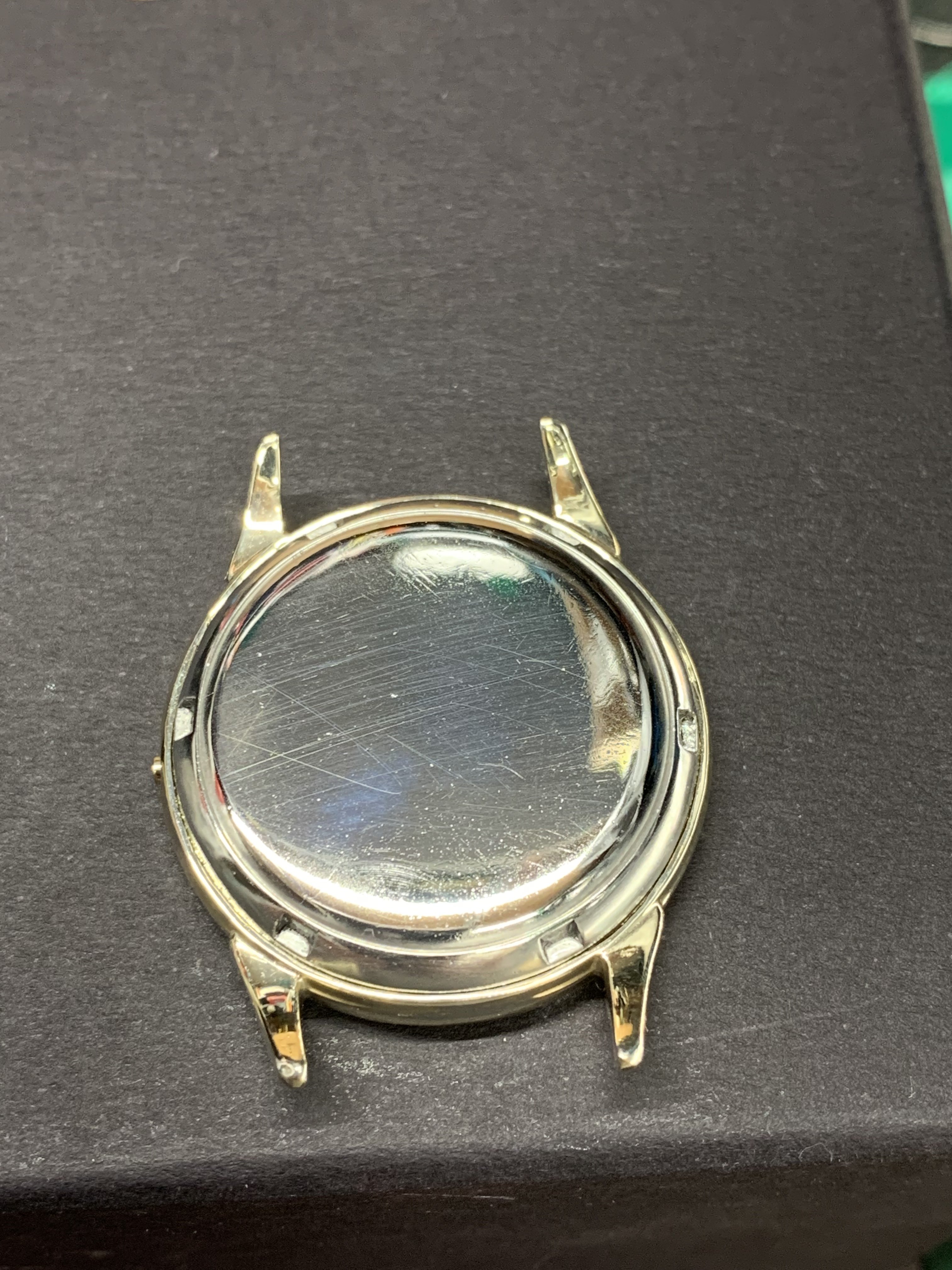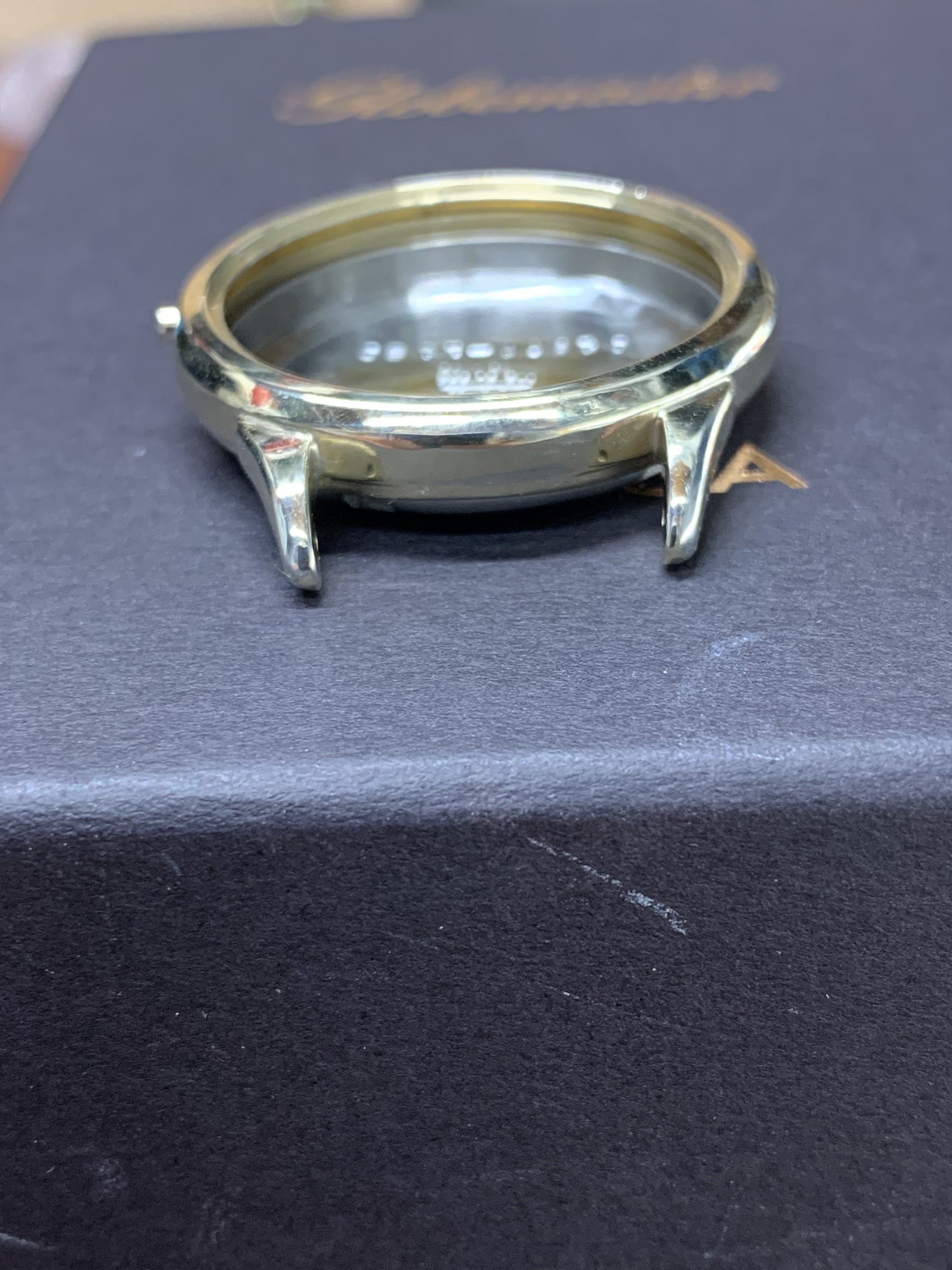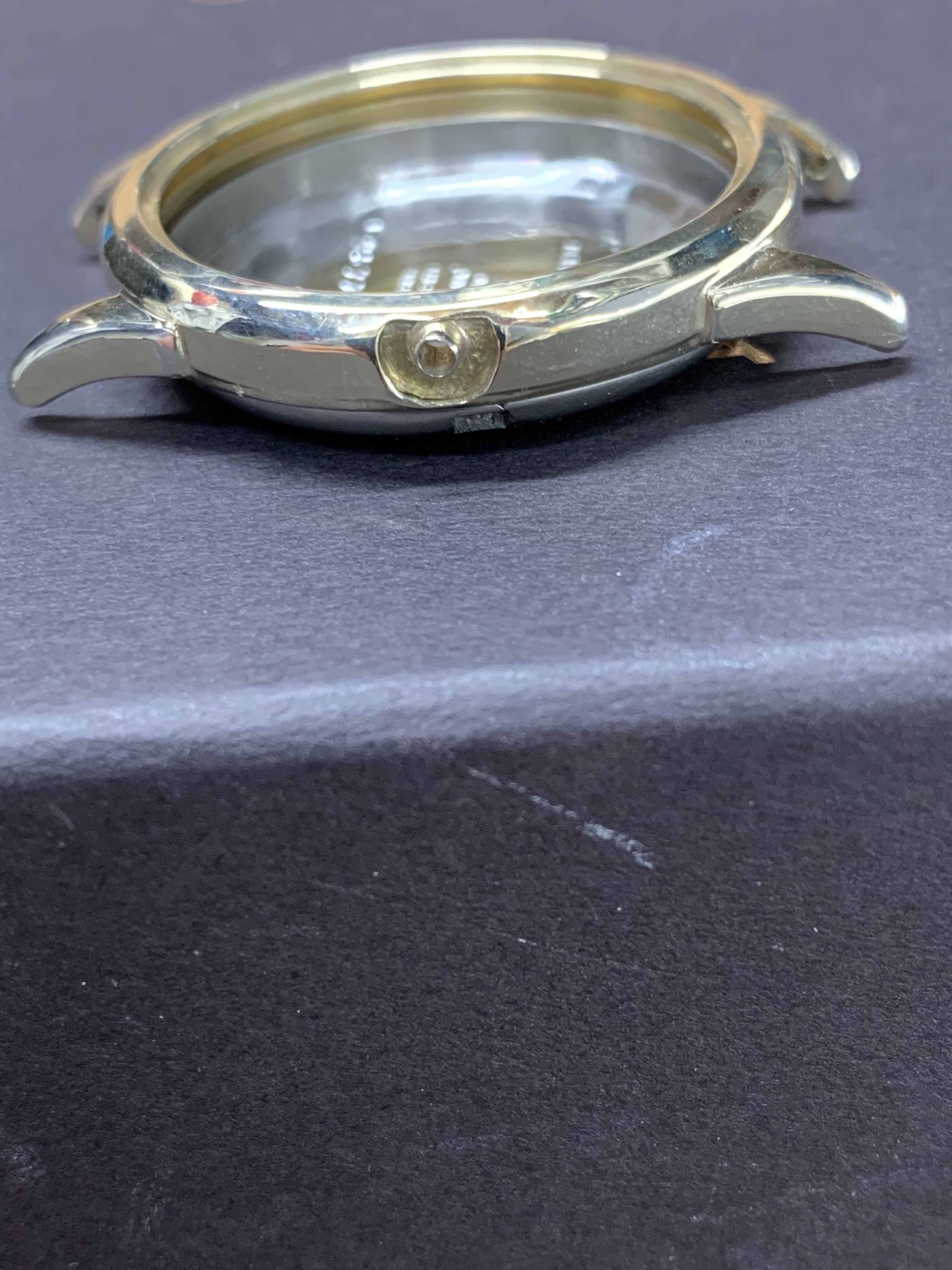 If you look at the case (which turned out to be all gold) you can see that one of the lugs is slightly bent.
