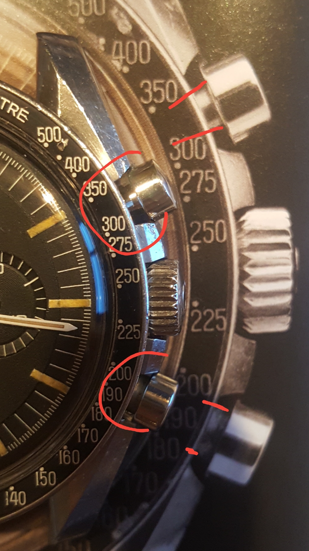 I know that one pusher has been replaced during the watch life. Question is : which one has been replaced...?