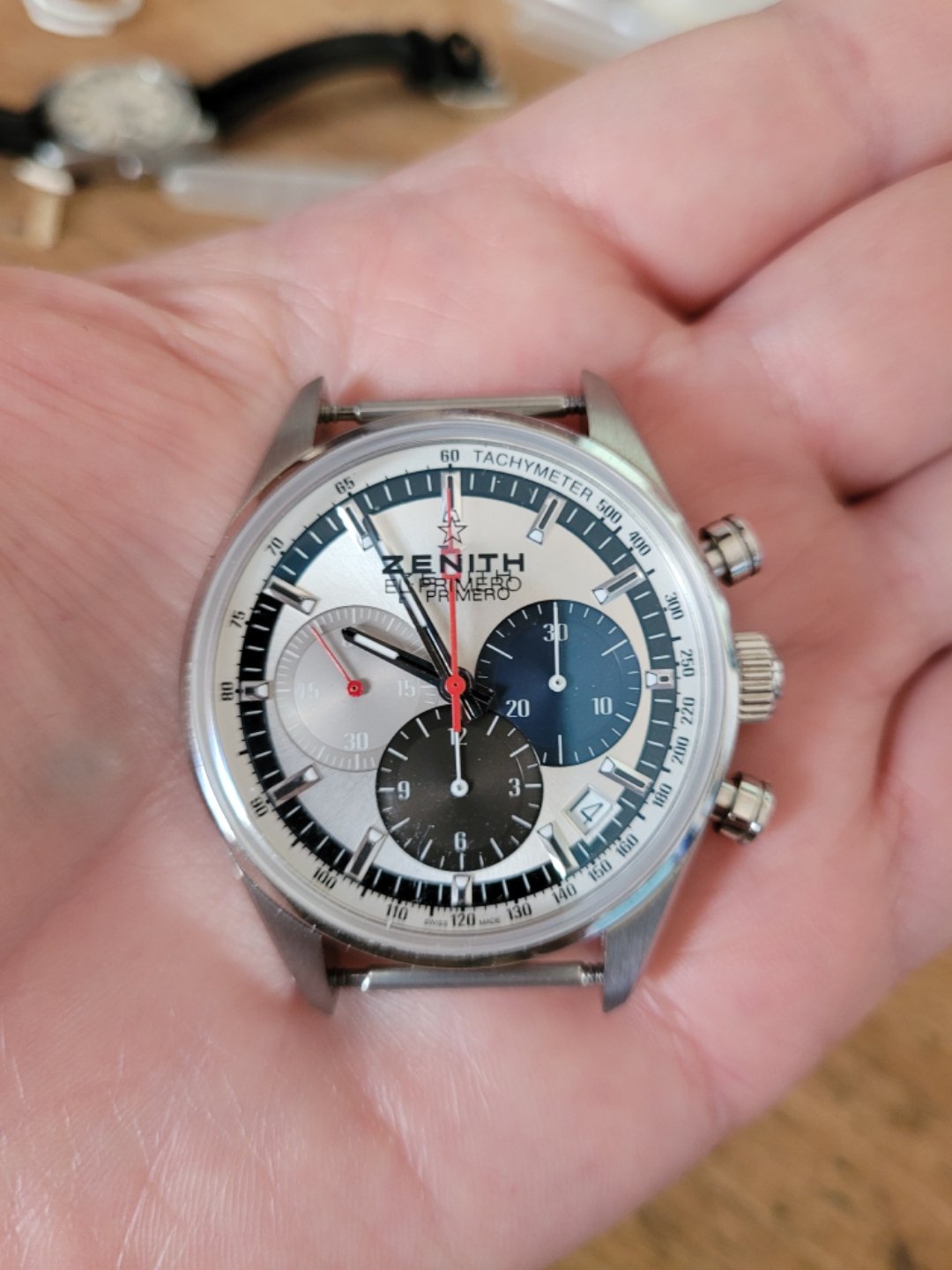 I'd like to have a little help concerning a 38mm chronomaster. I had a 400 movement aside and found a Zenith case and dial for a very decent price. So I decided to make my own chronomaster with some custom hands.