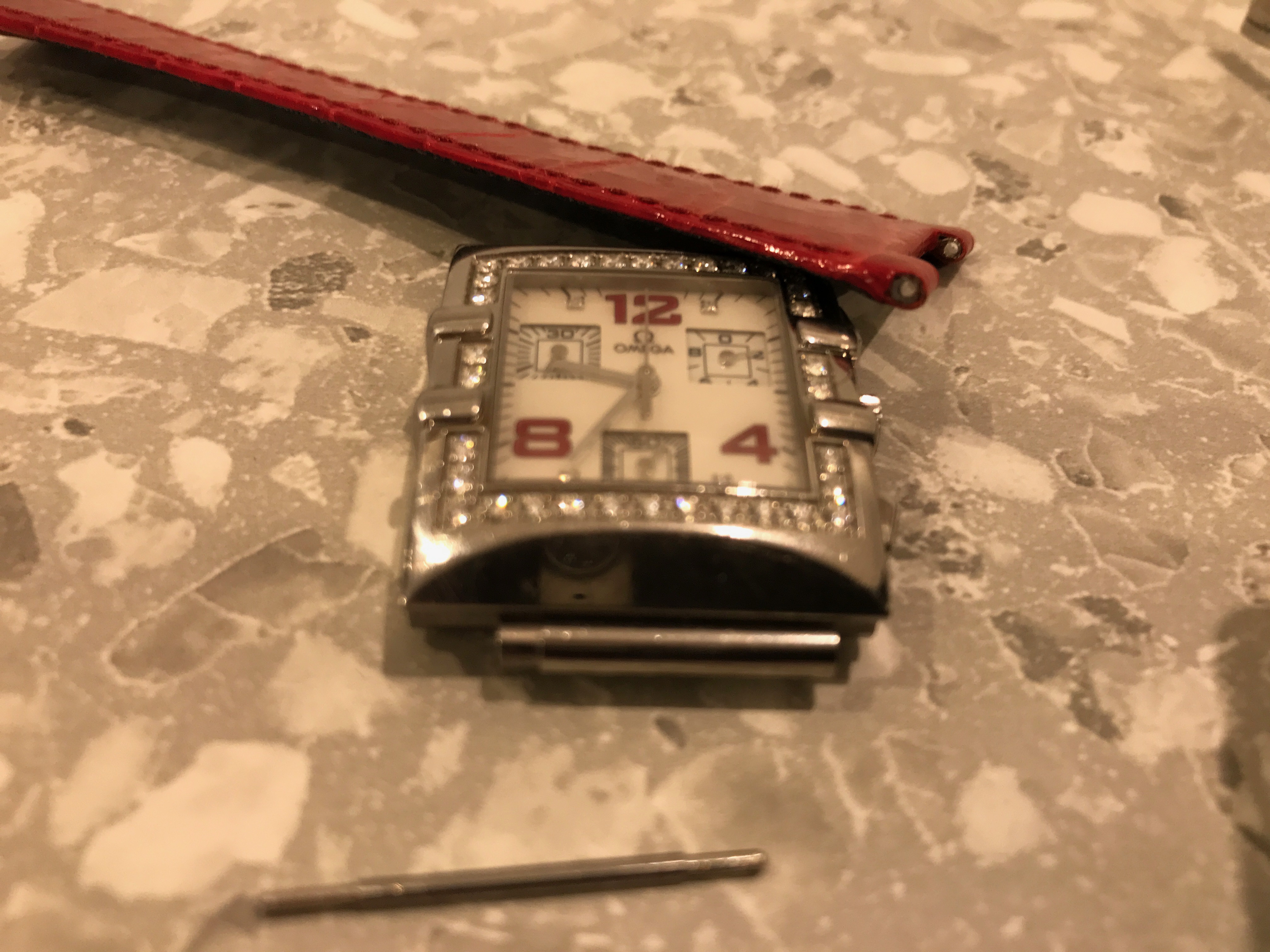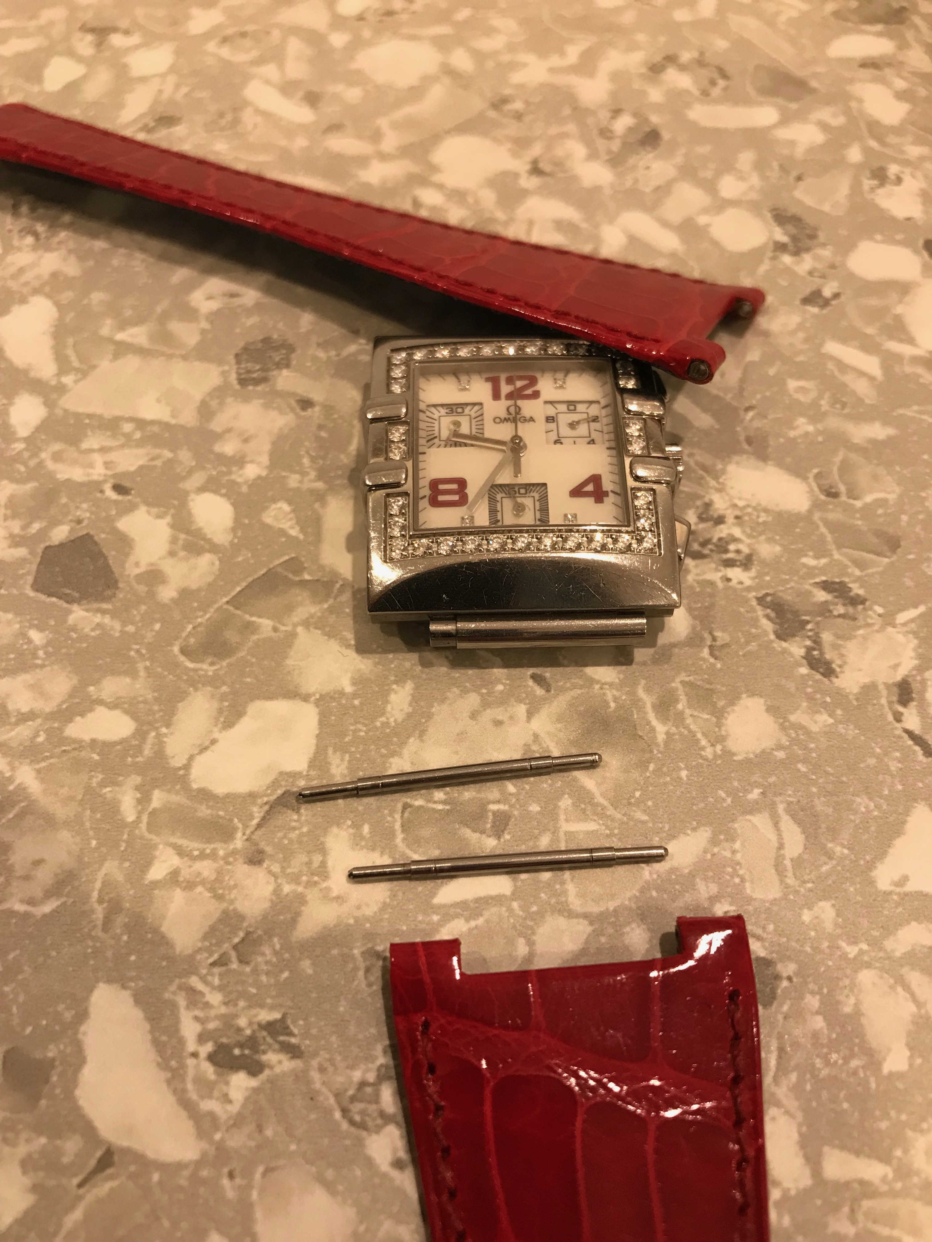 Note the if the pin and pipe don't have a good solid press fit, you may have to replace the pins. Not one of Omega's greatest designs for holding a strap on to be honest...