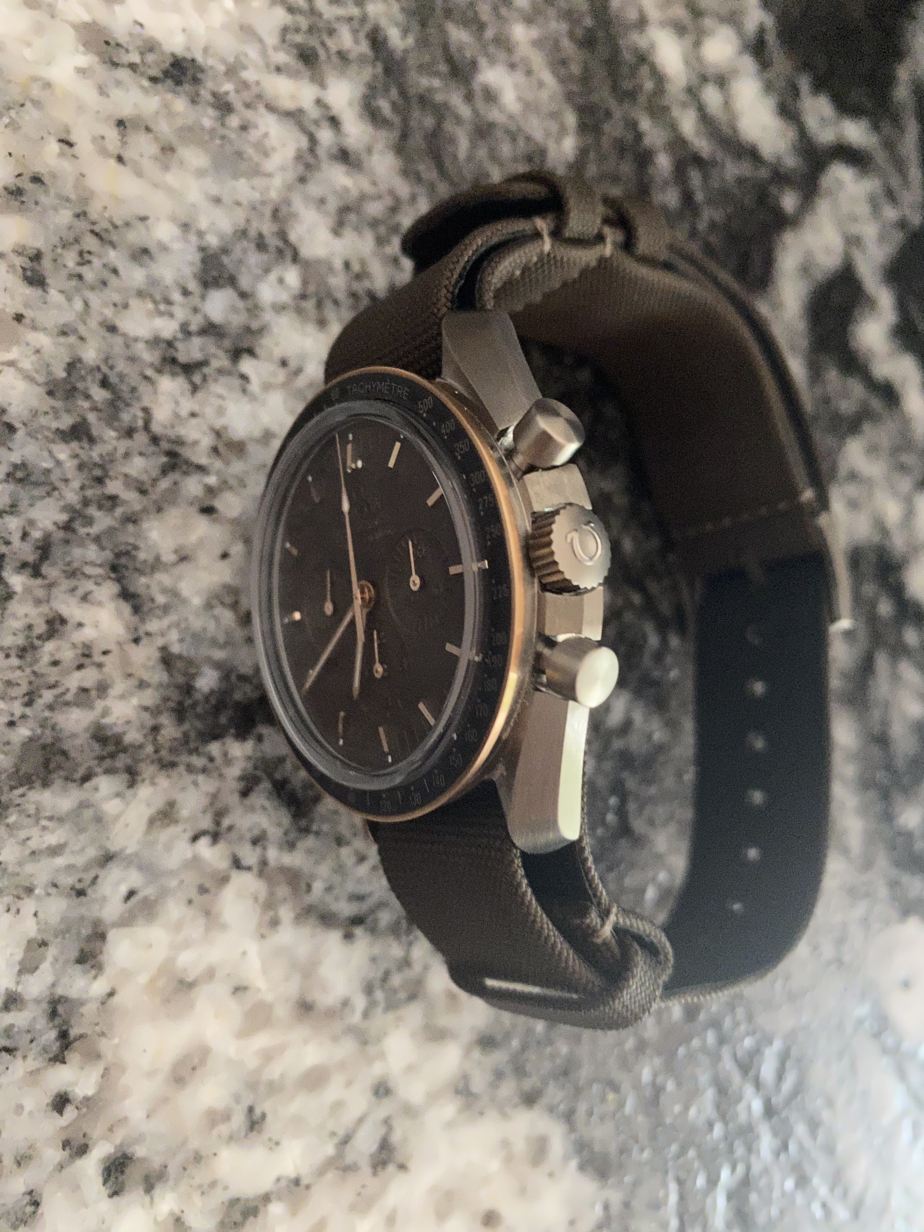 Can't make up my mind whether I like the reflections on the crystal or whether next time I'll try to display the dial a bit more. Hard to capture both the chapter ring without getting some glare on the crystal. Wondering if anyone has any experience with polarising filters (usually for landscape photography)?