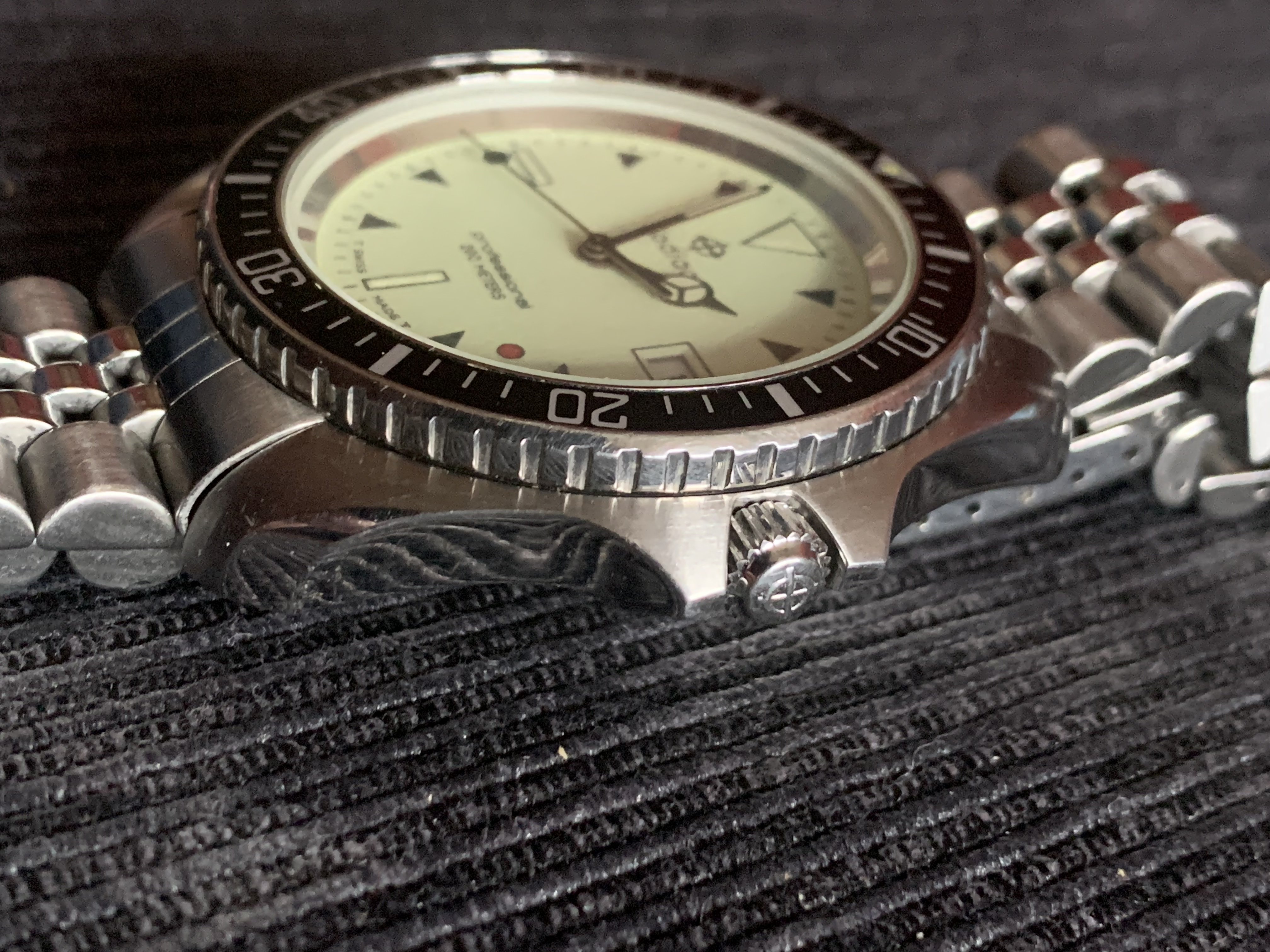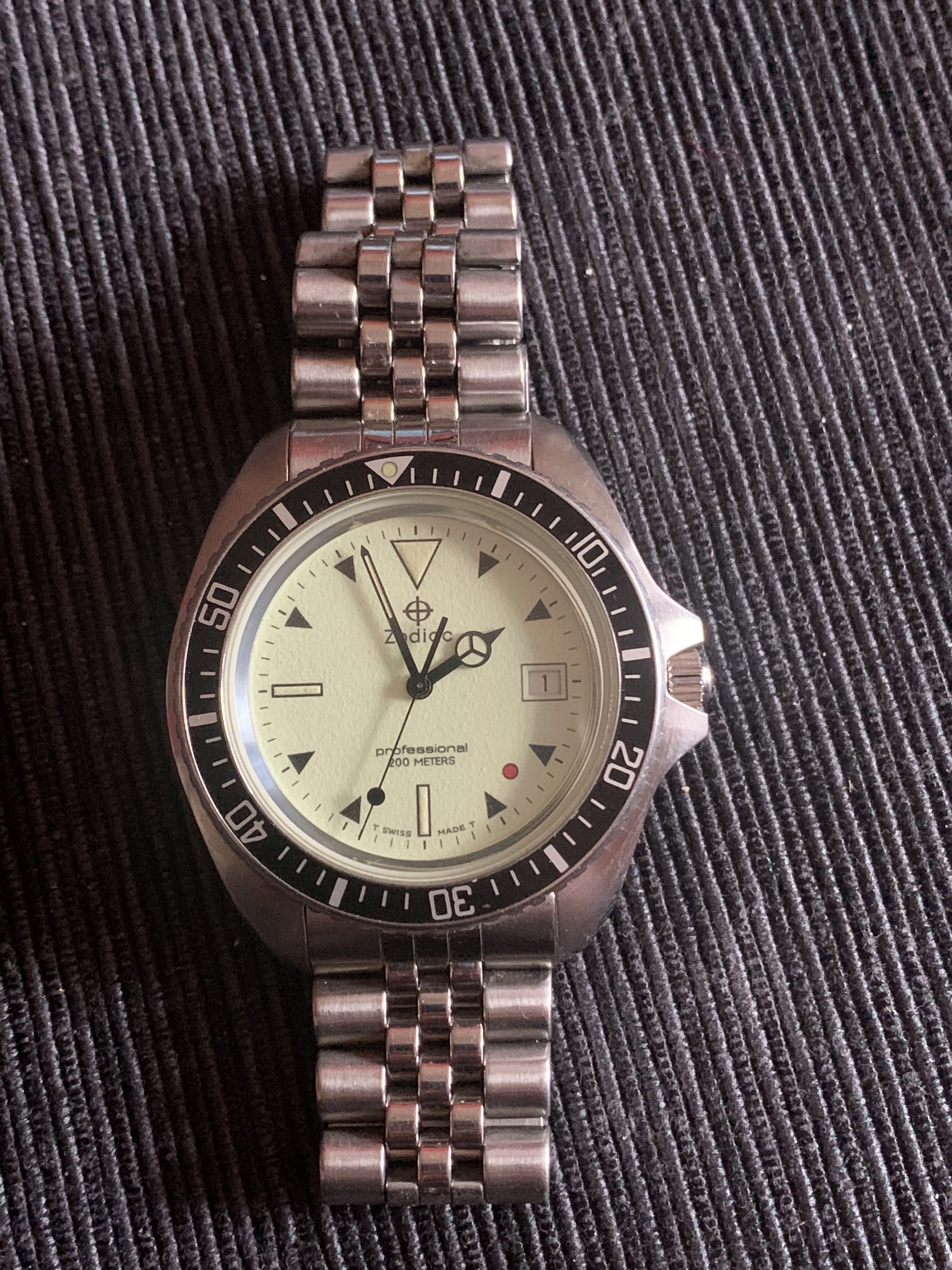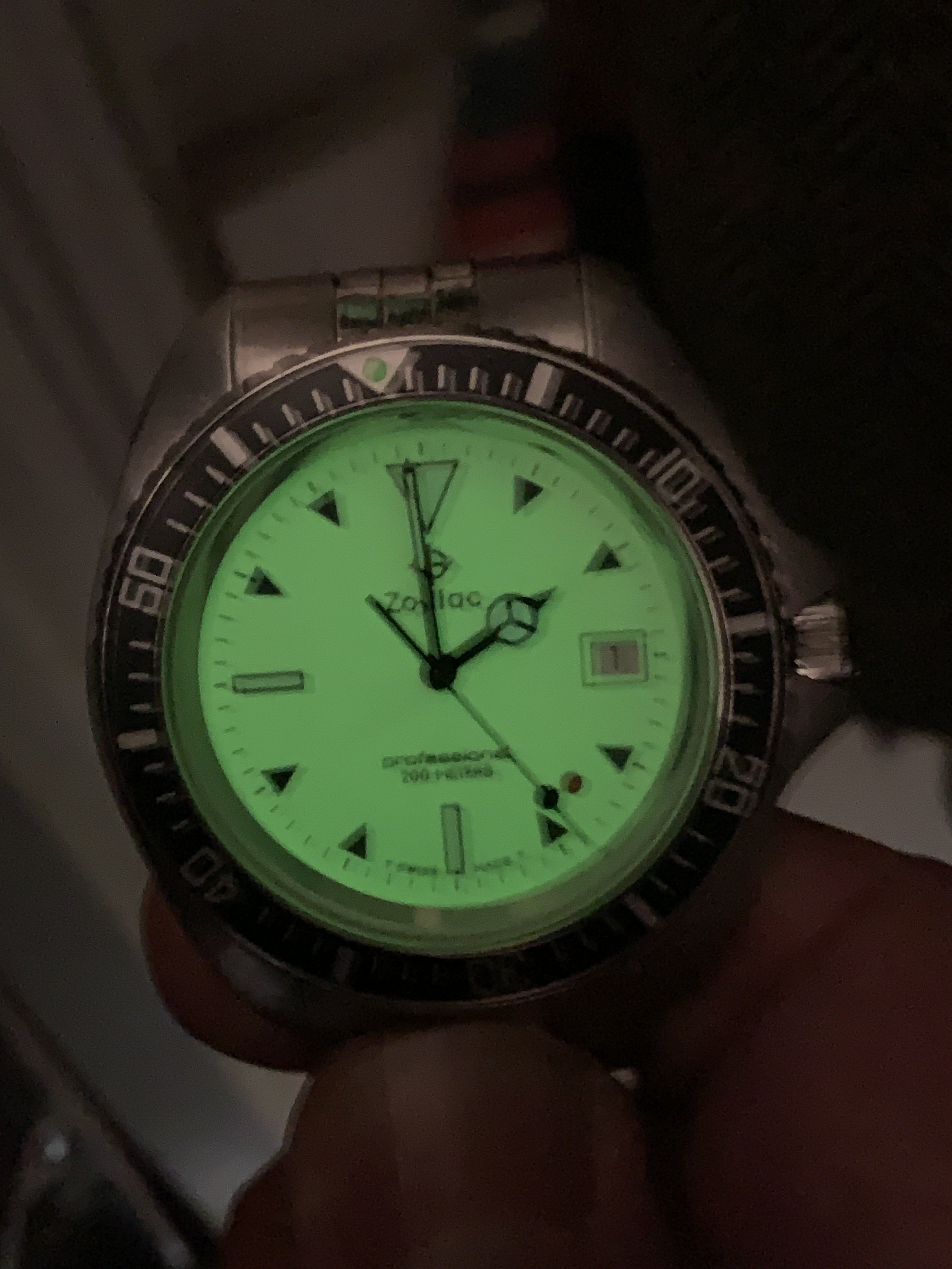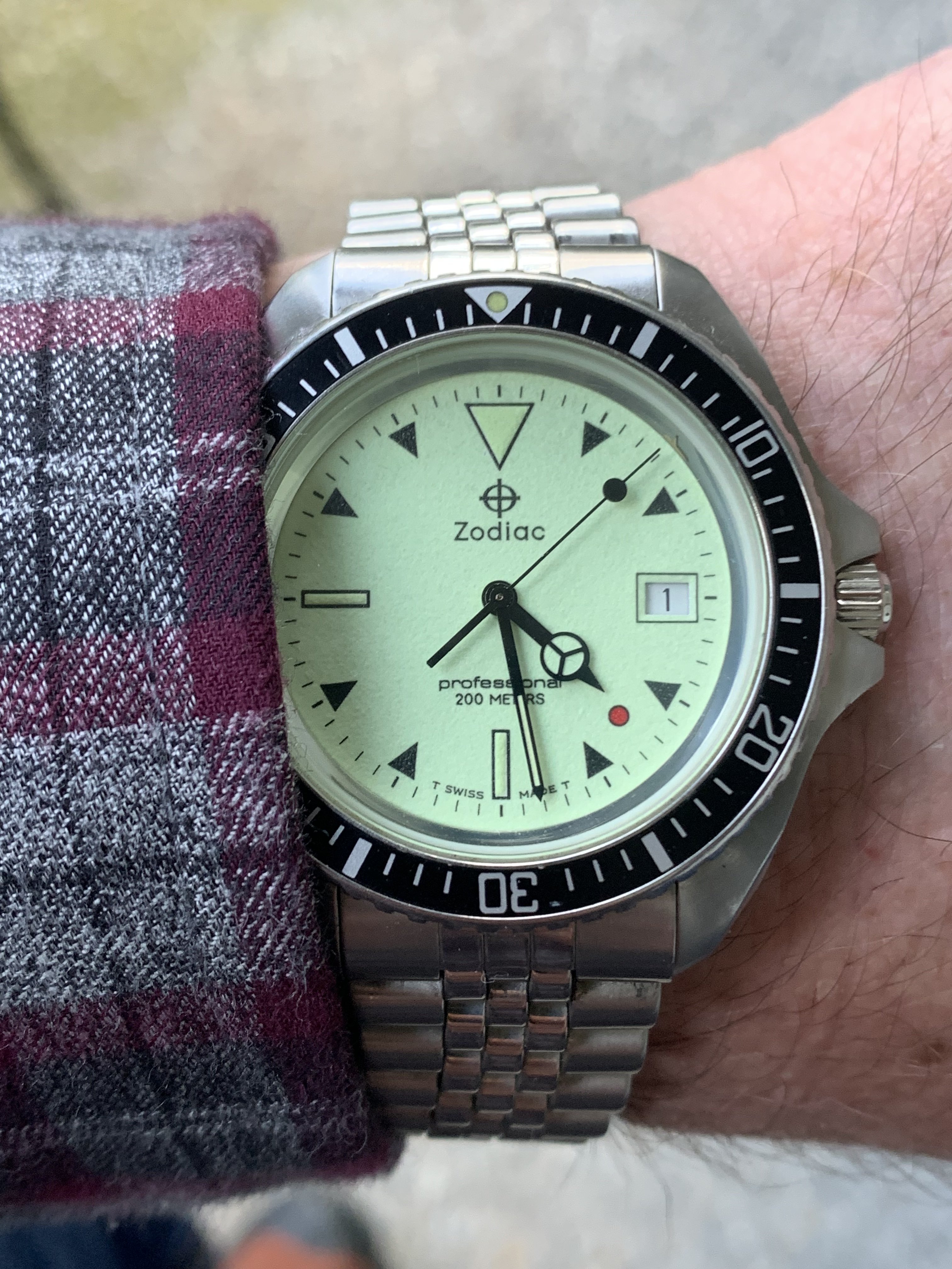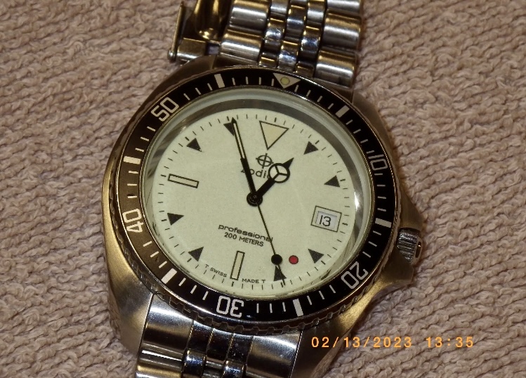 I just won a Zodiac night diver- one of the Red Point series watches that has been on my list for a while. There was an automatic version made of this watch but they are as rare as hens teeth (I know of one member here who has one).