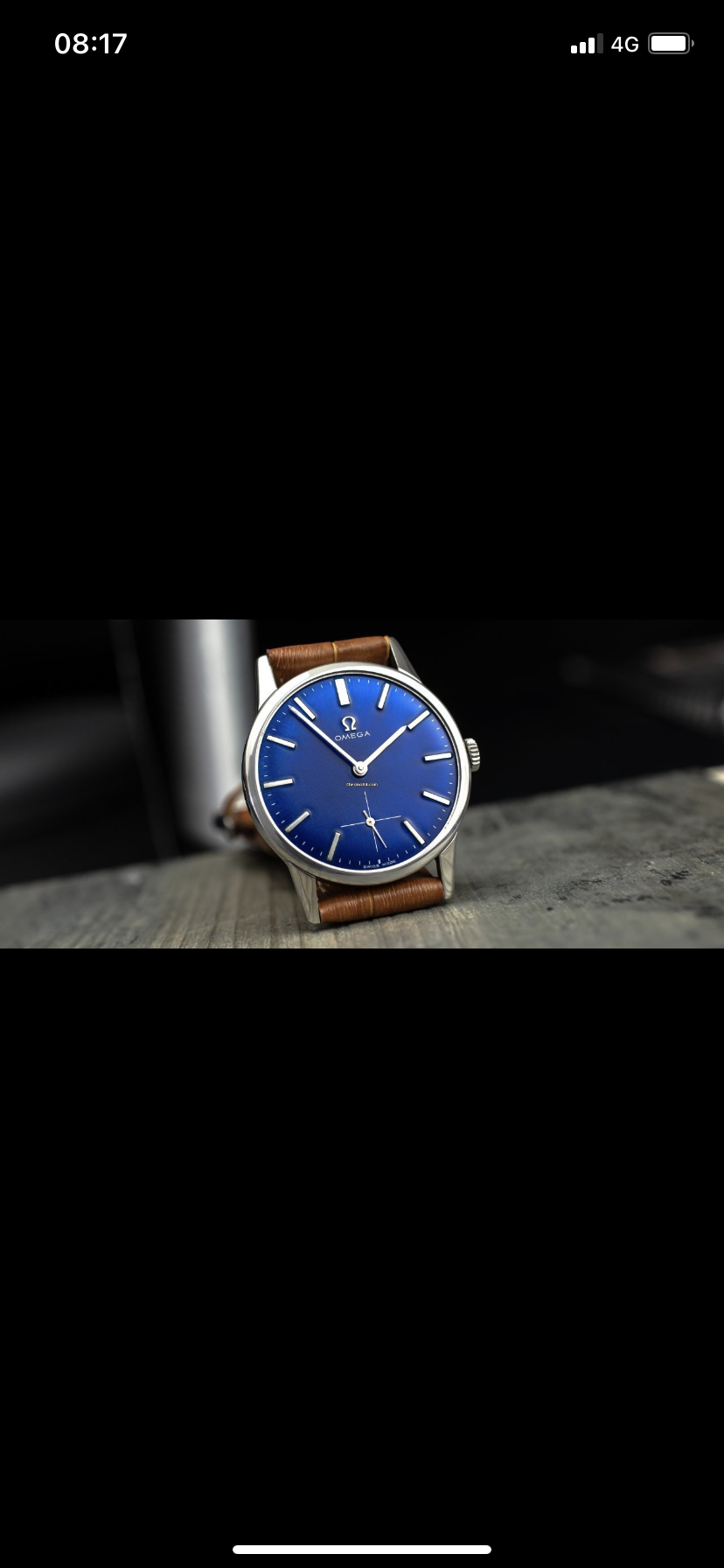 I found a very beautiful 1963 vintage Omega on Chrono24 with a blue dial.