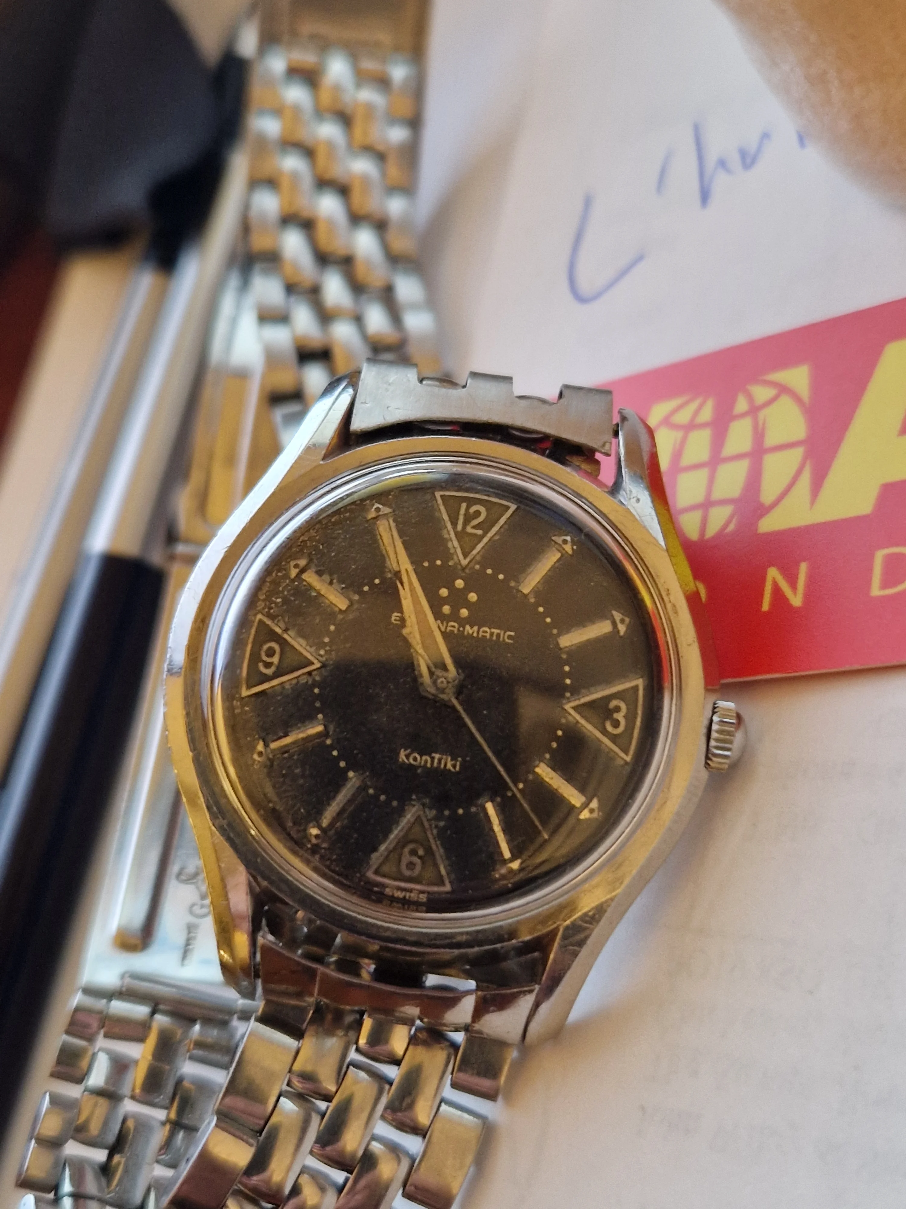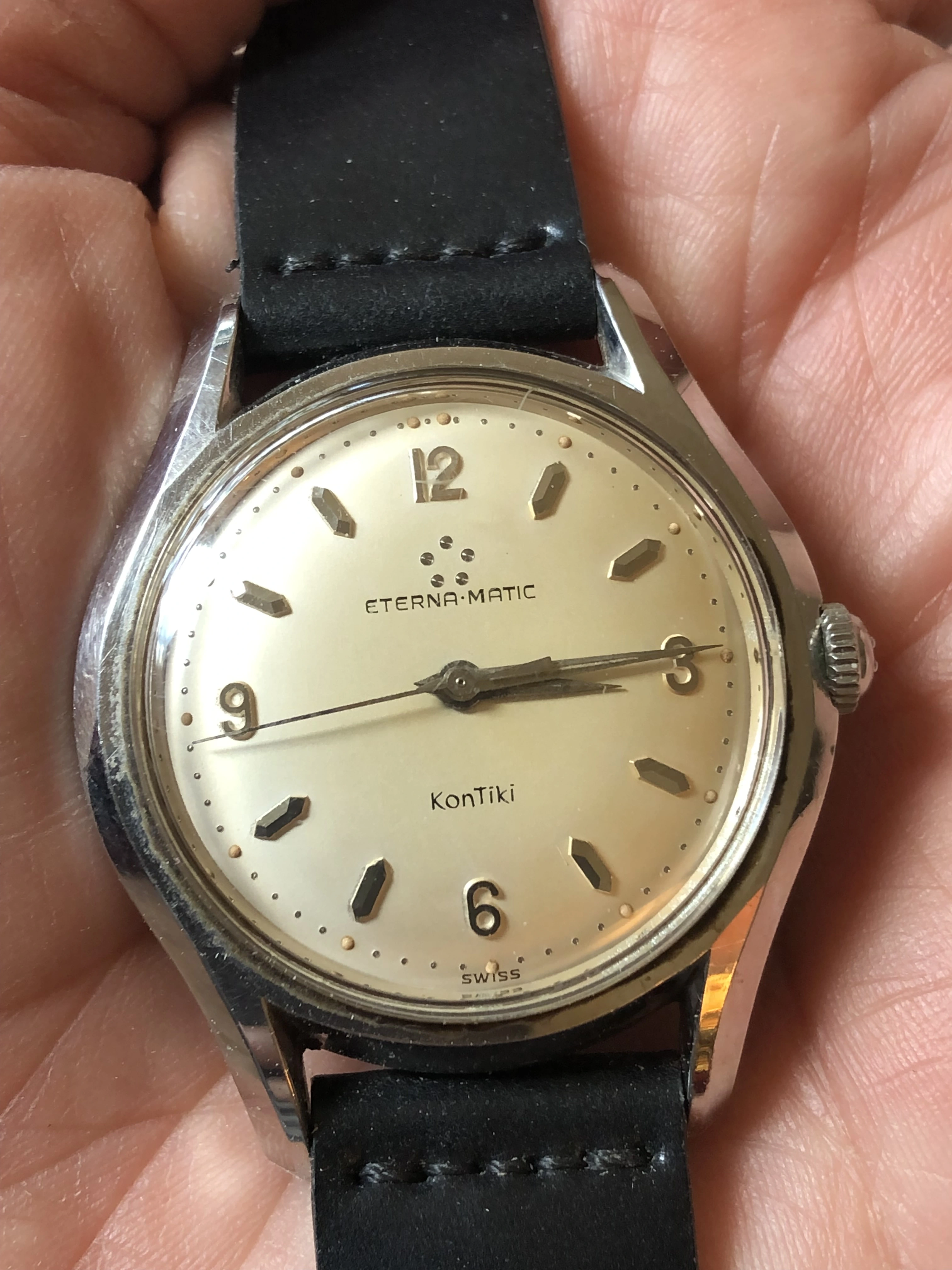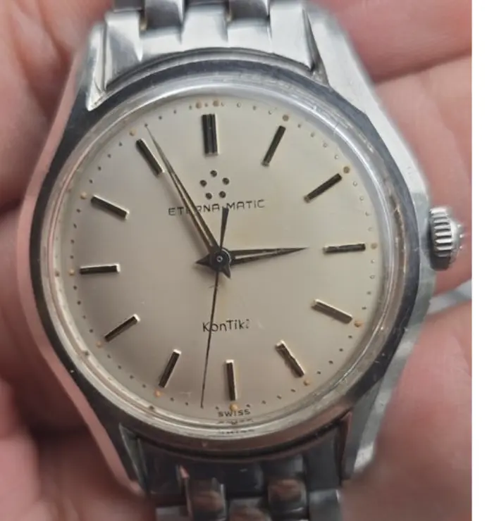 I’m currently considering the acquisition of an Eterna-Matic KonTiki that seems to be a reference 130T in stainless steel. The dial is the more classic silver/white version with baton markers, not the early “black dial with large lume triangle” style (i wish ^^)