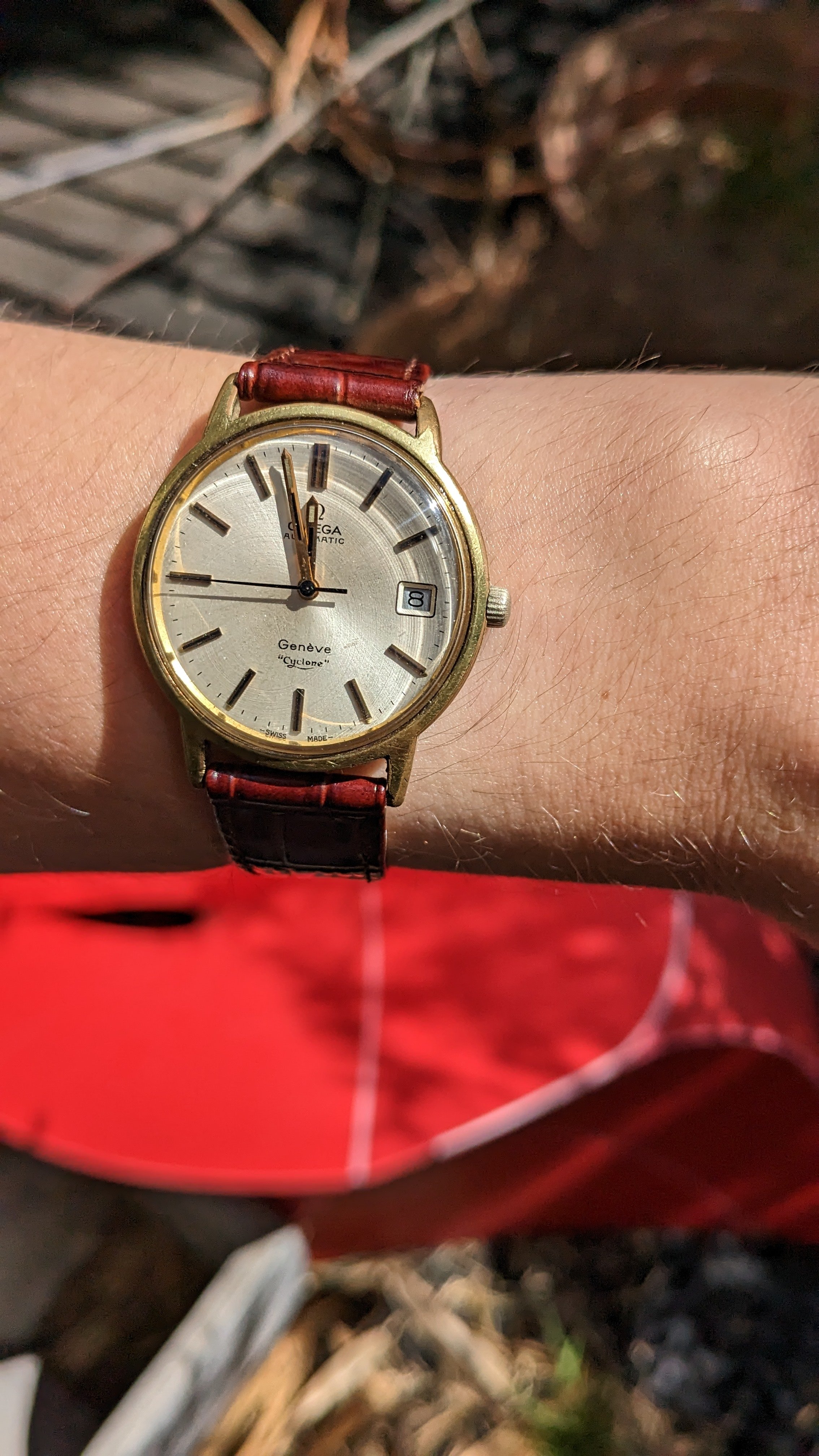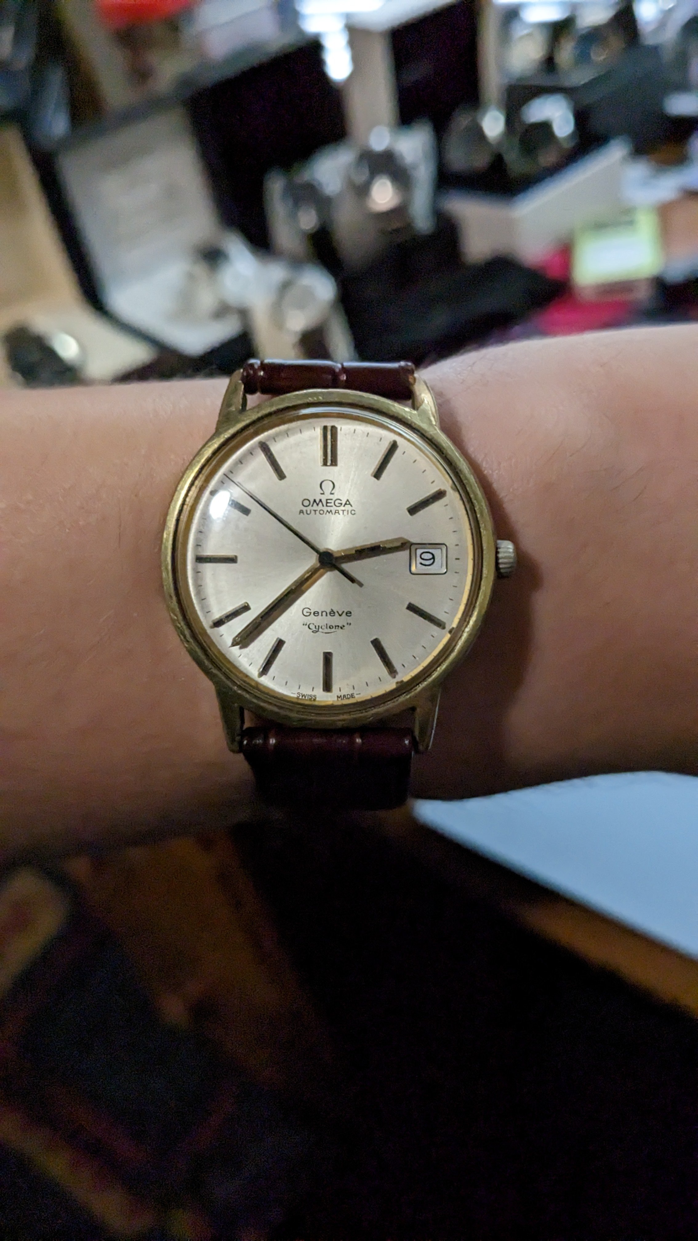 I recently bought this Omega Geneve 1973 1012 movement running very well better than some of my new watches. And this is the better place then any to ask if it is the real deal. For context cyclone is an Australian company. It was a 25 years of service watch. I gave it to my watchmaker to see if I can get it replated and to also check the seals.