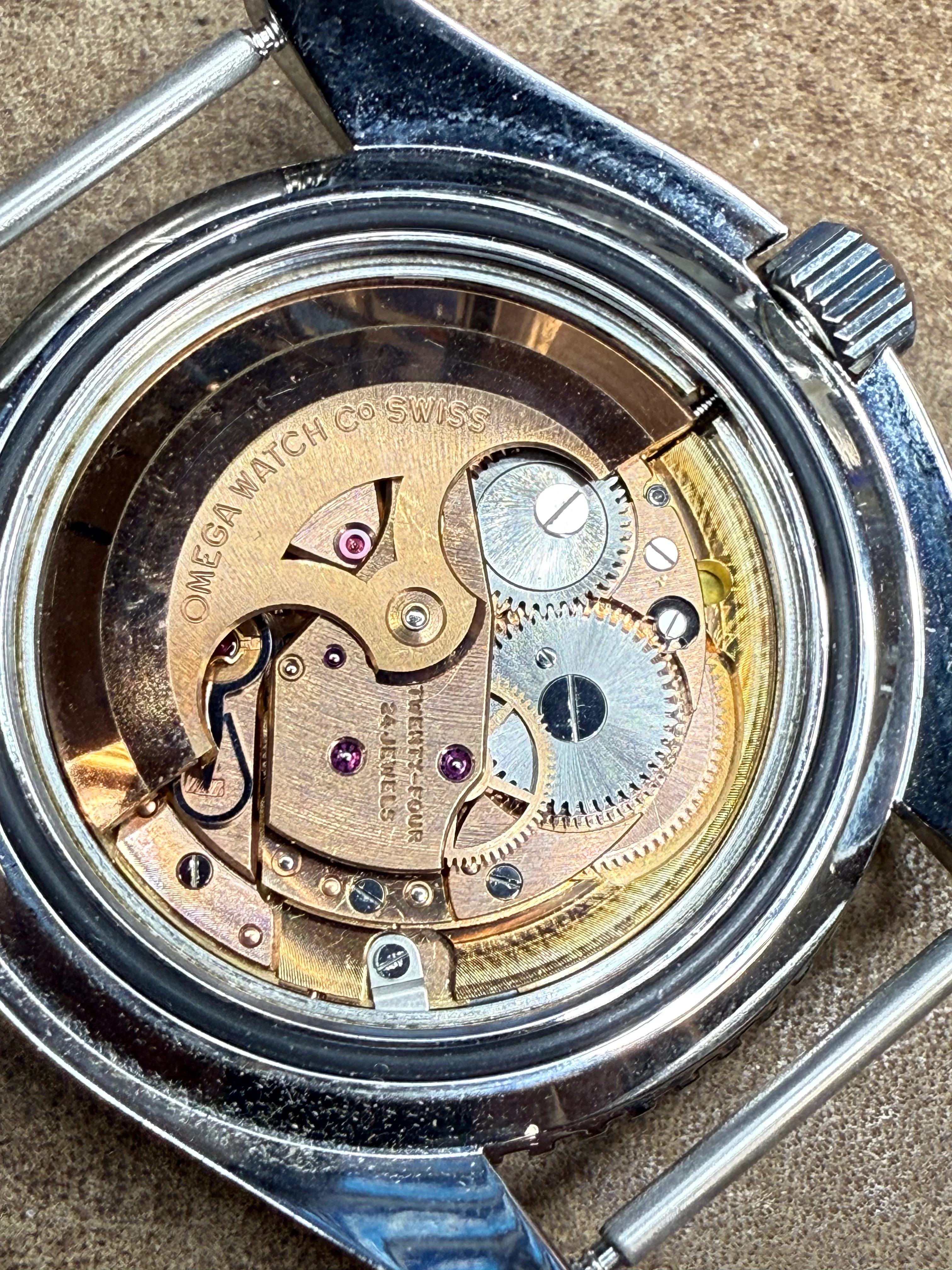 Have a Omega Seamaster300 here, just generally confused about whether this is an original Omega or one put together by Watch Co. Have spent some time browsing through these threads, still was not able to confirm. It seems as though I have a service bezel along with a screw down crown. The watch has a 552 movement, along with 165.024 inscribed on the caseback. Pictures are attached as well. Any help would be appreciated.