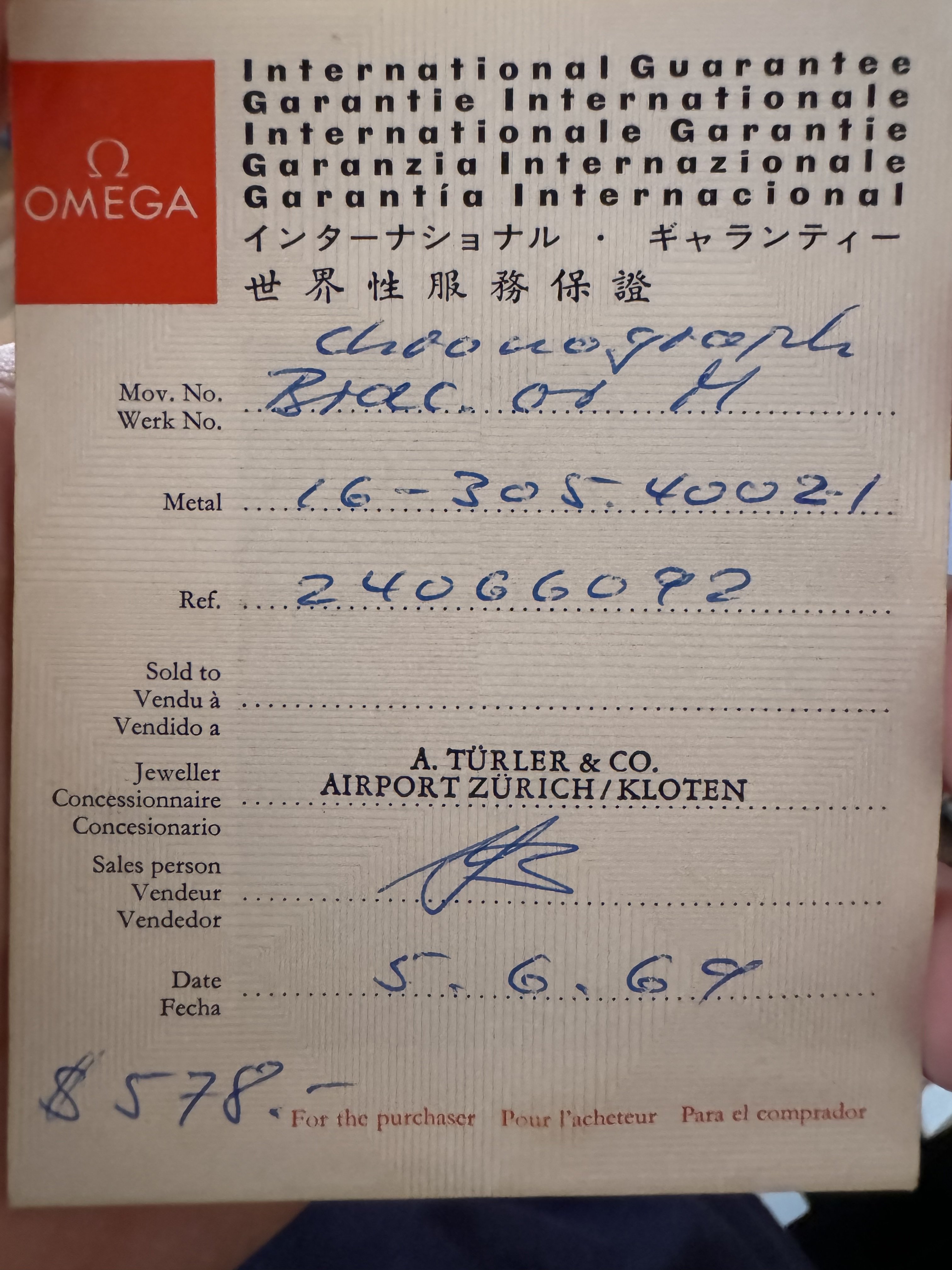 I found this warranty booklet that i think belongs to it because as far as i know he didn’t have another omega chrono and the price is expensive at the time for a steel watch