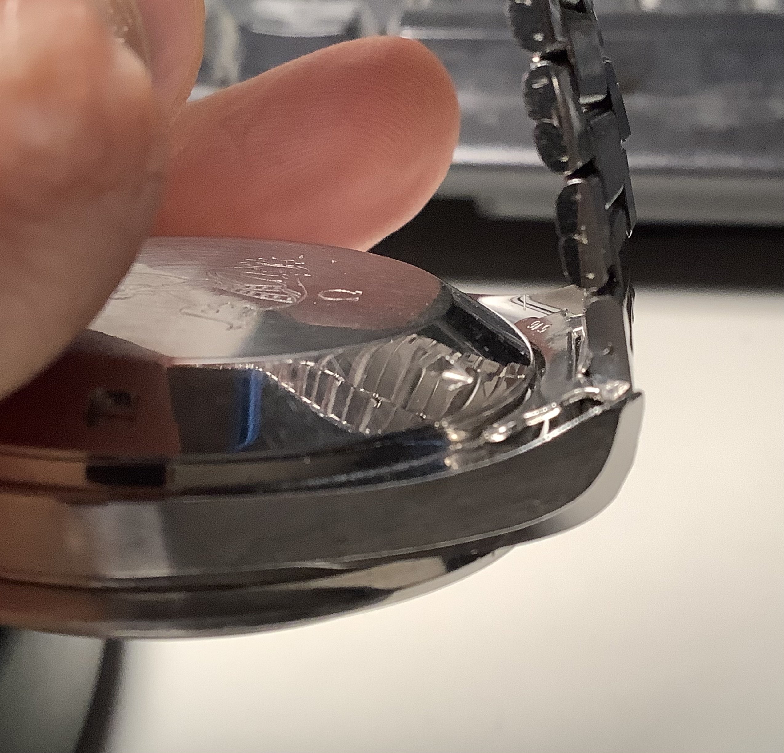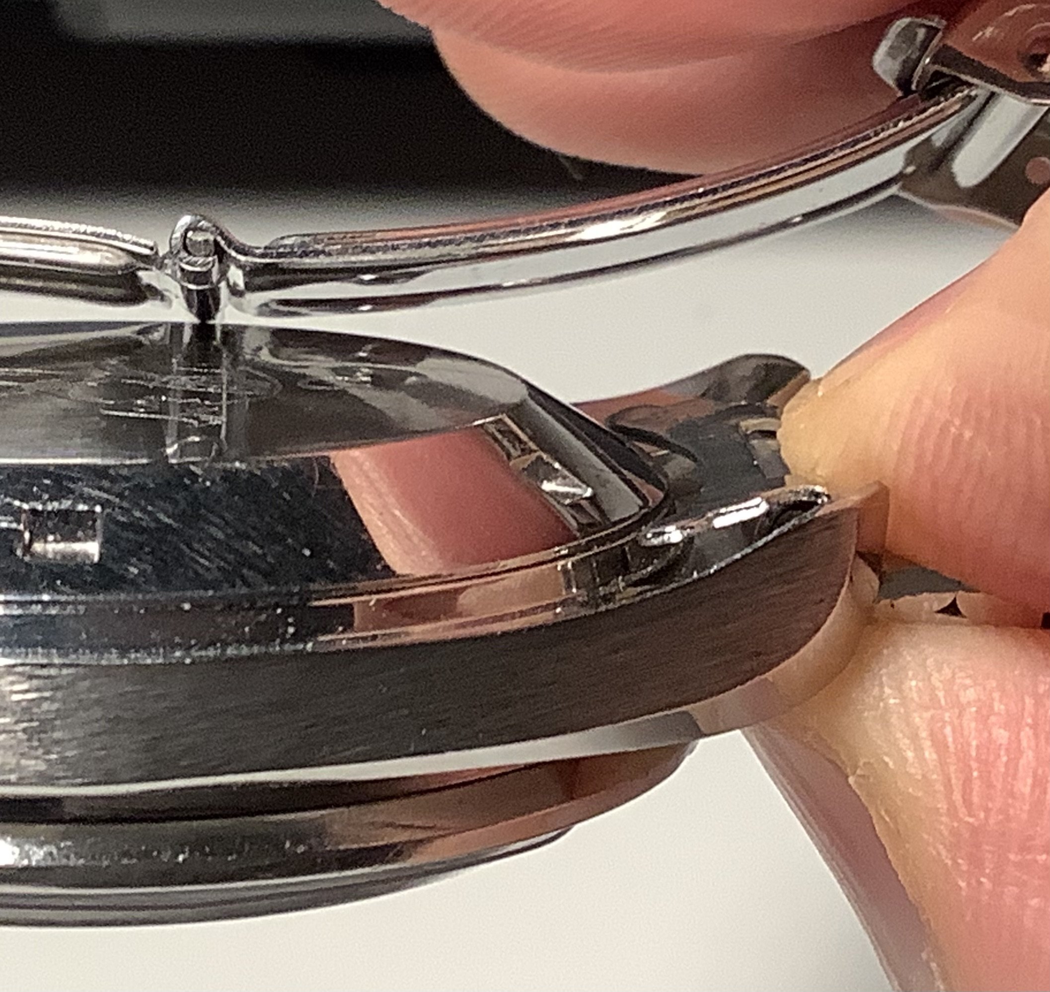 I find that these flat-link end-pieces are rarely firmly sitting against the lugs. In other words, you will see from the photo below that there is a small amount of play, that the end-link can be wiggled, rather than being firmly set.