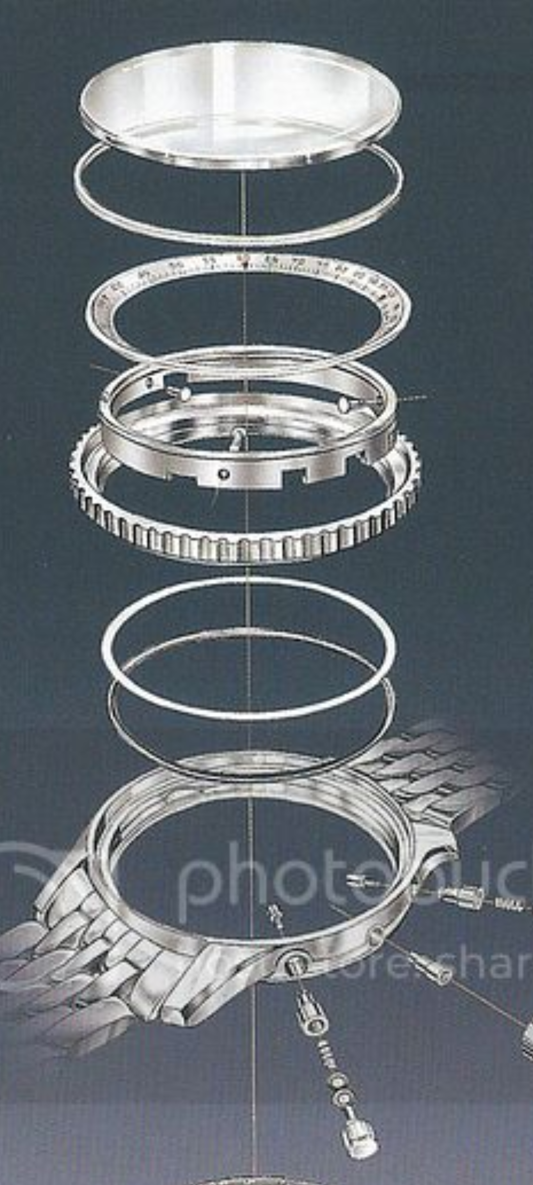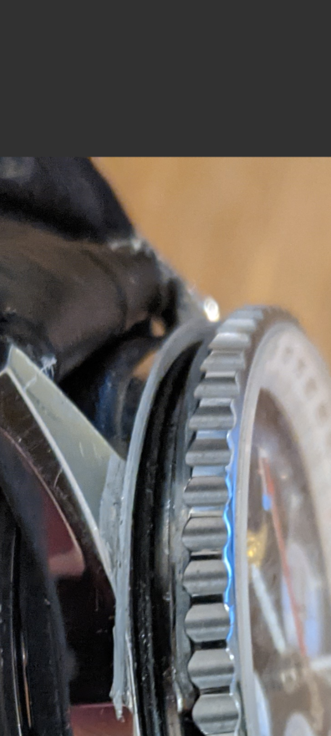 The bezel is waterproofed with two gaskets.....a rubber oring and a nylon flat gasket that it slides on.