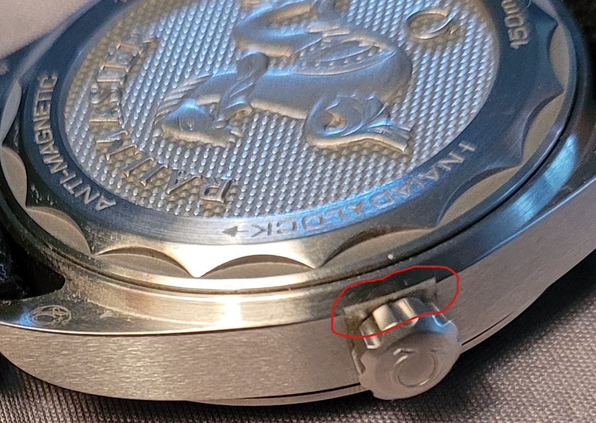 ·I apologize if this is an obvious question. I'm really hoping that it is. I have purchased a second hand Railmaster 220.12.40.20.01.001 which is running extremely well, gaining fewer than two seconds per day during normal daily wear. I've noticed there appears to be a cut-out on the case around the crown. Looking at pictures of other Railmasters online, I've never been able to see this cut-out. Is this a normal thing? Is the case supposed to look like this? I've included a picture with the area I'm talking about circled below.