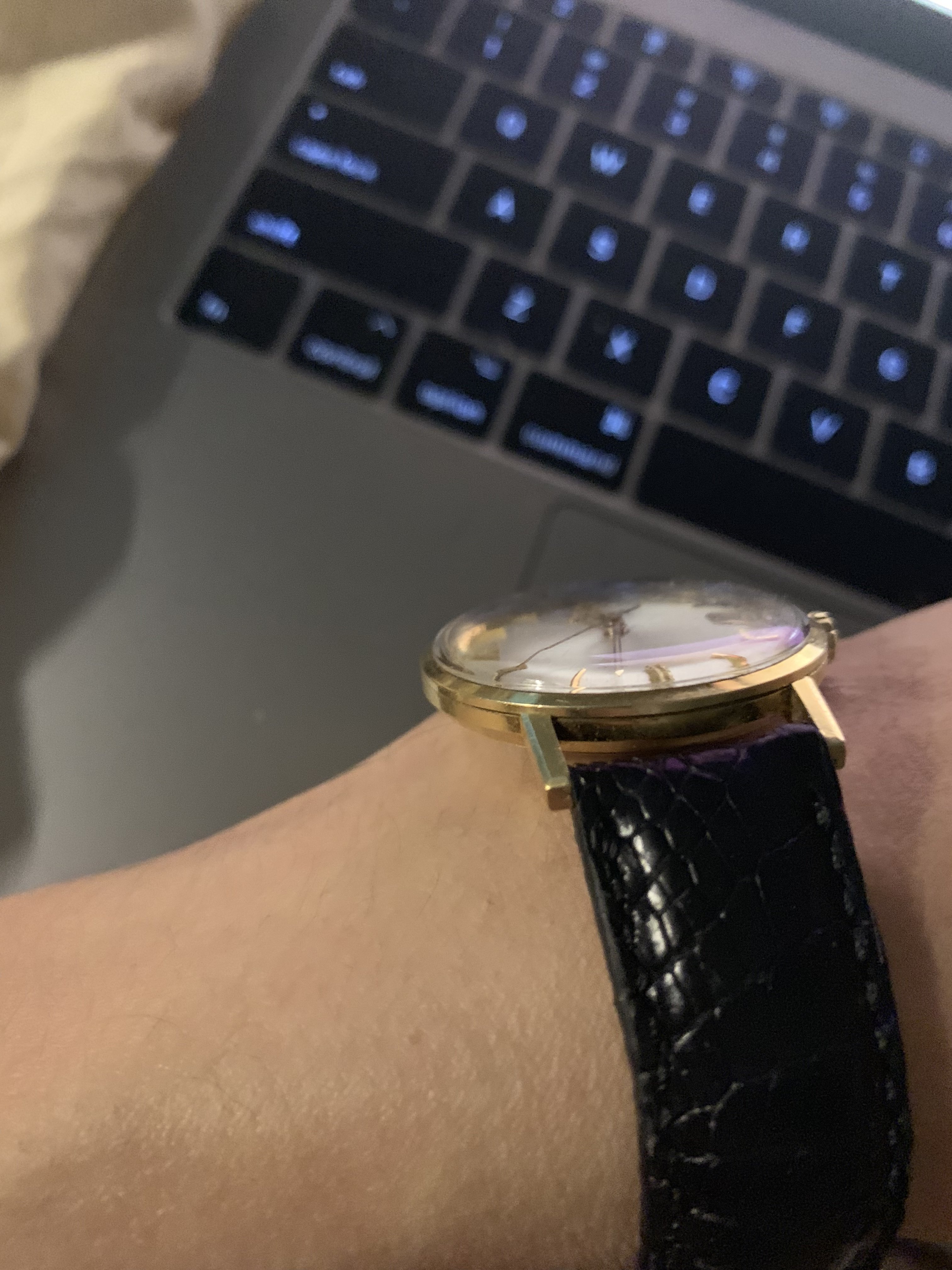 I'm not sure about the exact mechanics but I assume the movement holder ring normally props up the crystal. With it being missing, I'm guessing the crystal is jammed in my watch farther than it should be. The crystal is an original omega crystal with the little omega symbol.
