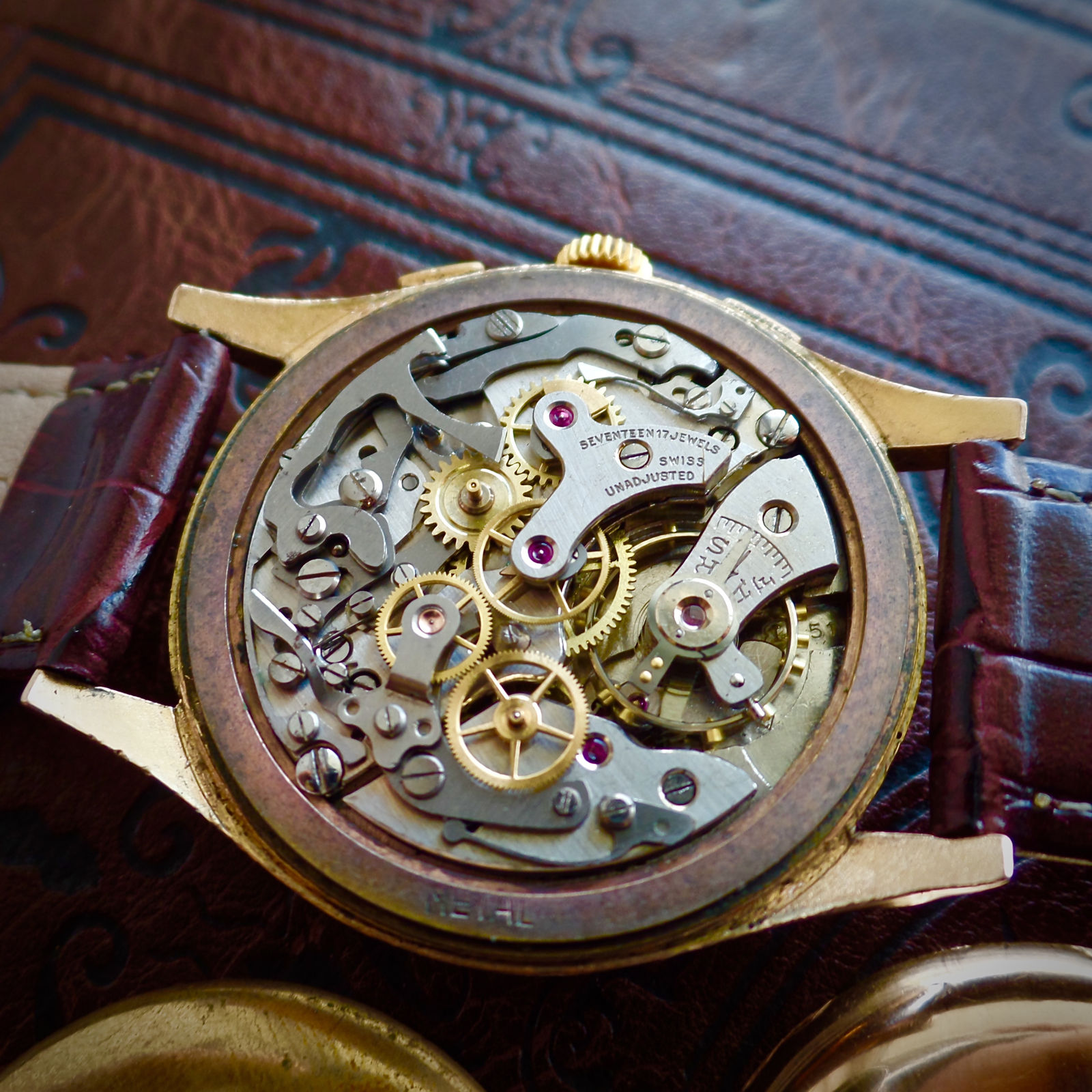 And a 50's 18ct Chronograph. It shows "Ascot De Luxe" and "Incabloc Chronographe Suisse" on the dial.