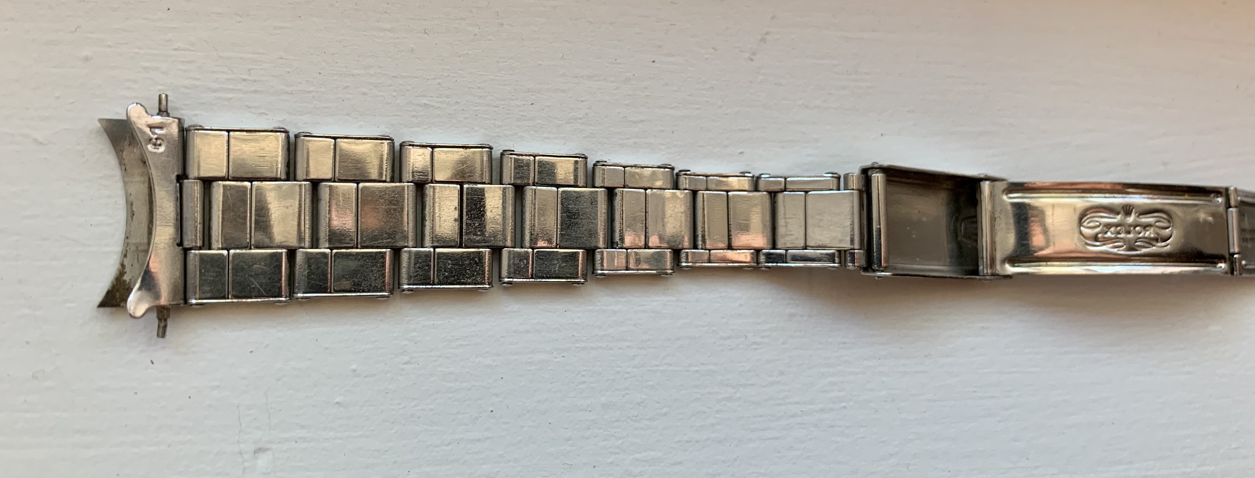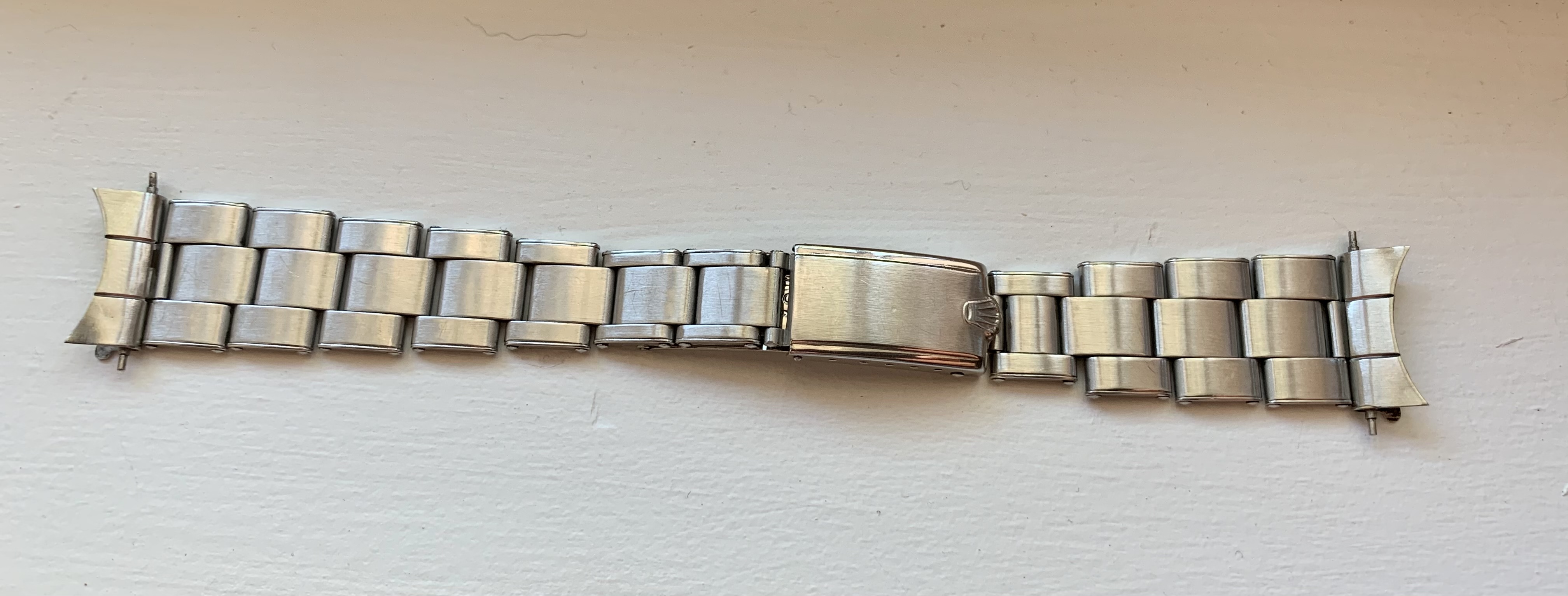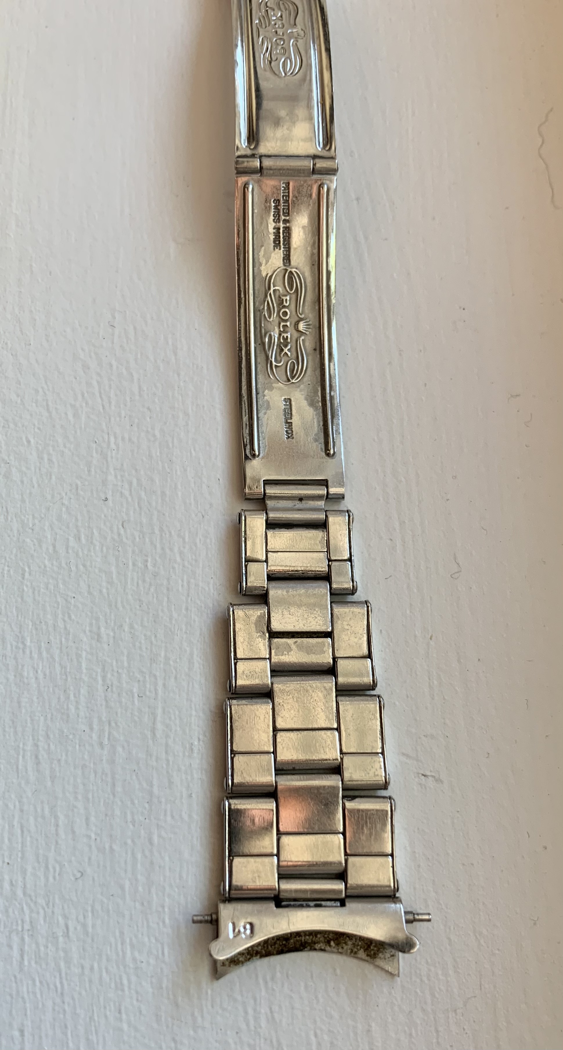 ·I picked up a vintage Rolex recently that came with an older rivet bracelet. When the watch arrived, I thought the bracelet had a female bracelet clasp and a few female links. The seller of the watch told me that he believes it is original and upon researching early rivet bracelets, I think the seller might be right. From what I’ve read and seen online, there are rivet bracelets that have clasps as small as 13mm. I’ve found examples for sale that have similarly tapering designs and small clasps, for example this 7205:
