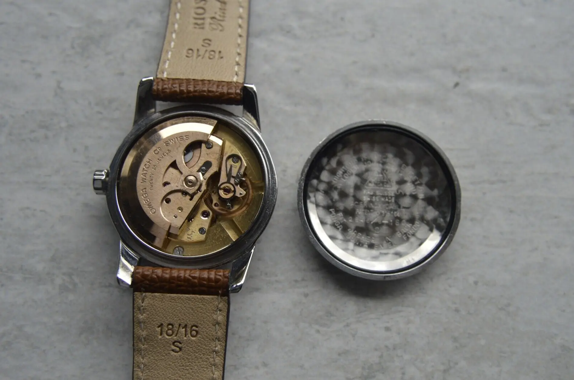 I've looked on the Omega vintage database, and I'm slightly nervous that the movement doesn't seem to be stamped with much - no number - just Omega Watch Co Swiss and 20 Twenty Jewels (see photos) unless it's underneath the auto mechanism (which, looking at other similar movements, it probably is) . The stamp on the inside of the back case looks like it says 2846/8-1SC? Again, a bit blurred.