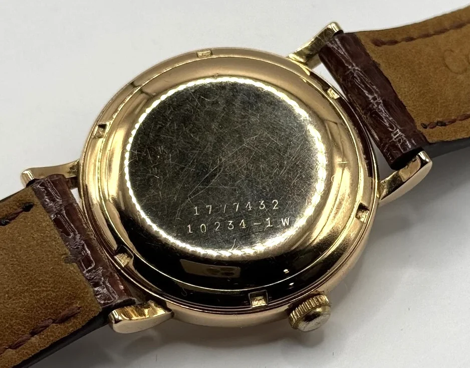 I was able to find this example of a Ref. 10234-1W that was auctioned off in France last year. This one appears to be rose gold from the picture, although the bracelet (which I would assume is after market) is described as "or jaune" (yellow gold). Serial number is only 26 away from mine. There is another -1W out there, but it is one of the enameled dial examples. Serial number would be close, but the auction description seems to be missing the 1 million digit and there are no pictures of the case back either. It is also described as "pink" gold, so there's that.