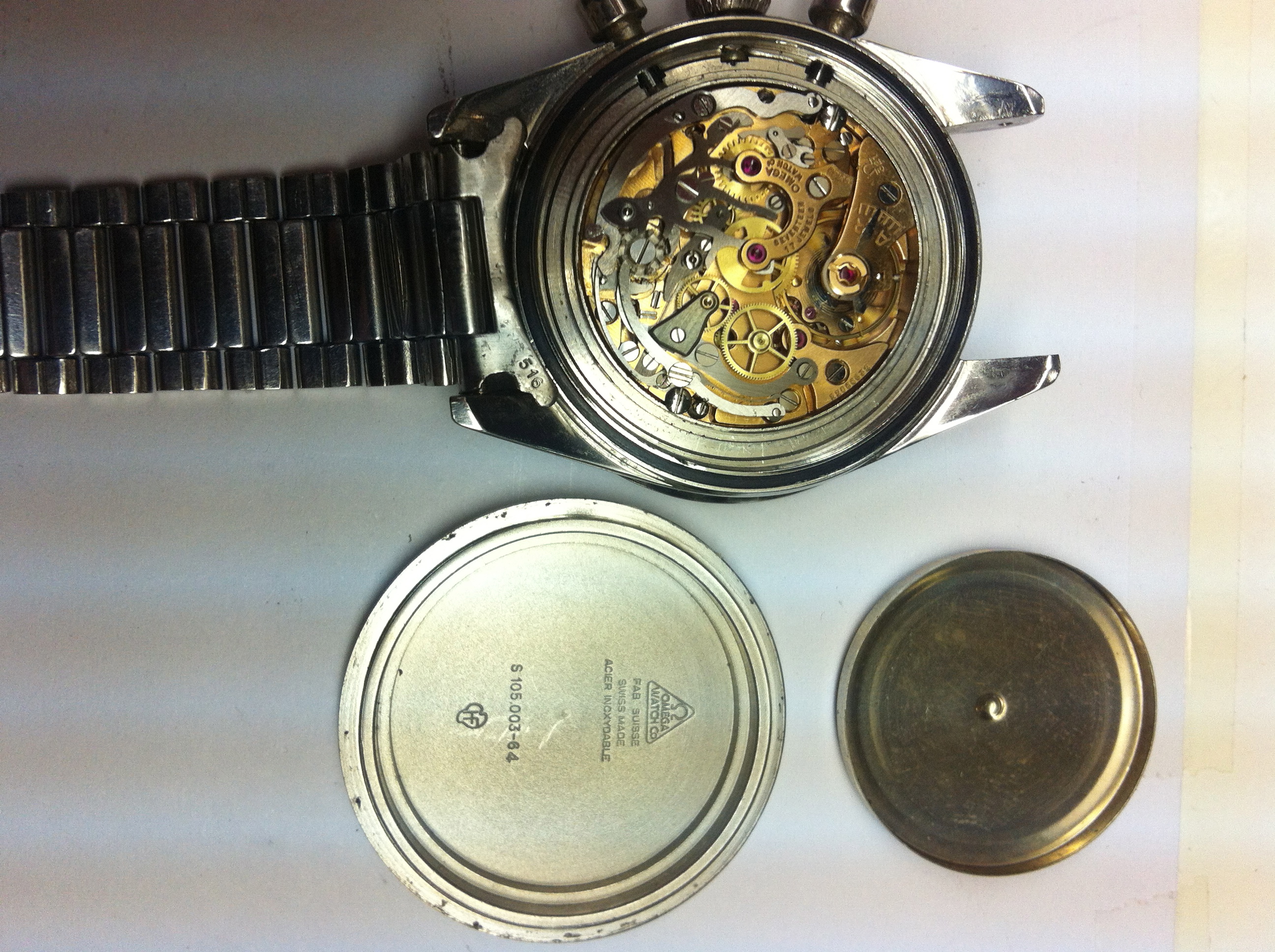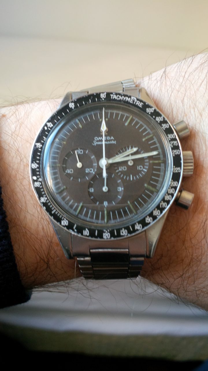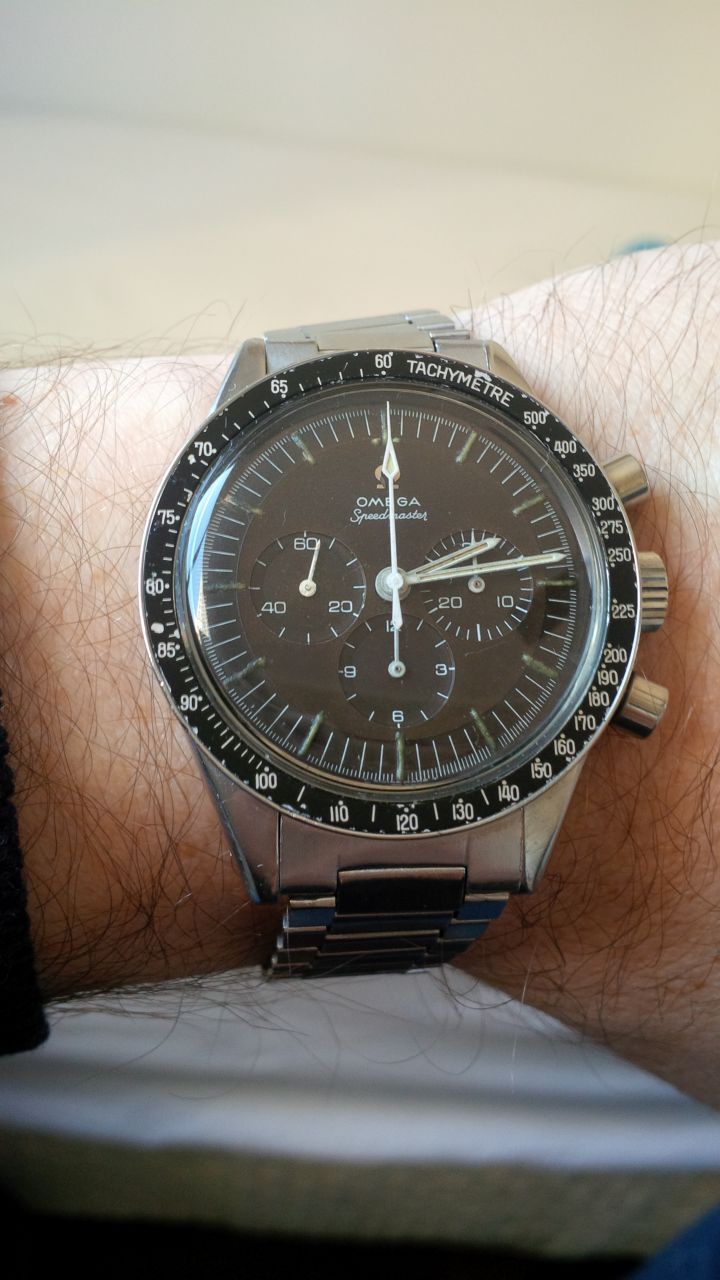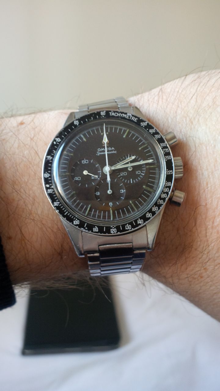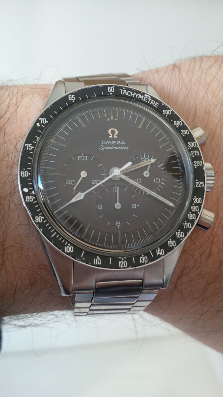 Poor example IMO, bezel is a replacement, pushers look like later replacements, dial is rather unattractive, endlinks are shaved 516s, 1035 bracelet is too late to be on a -64, should be a 7912, chrono seconds hand doesn't match the other hands in patina. Has the look of a watch that's been extensively fiddled for sale.