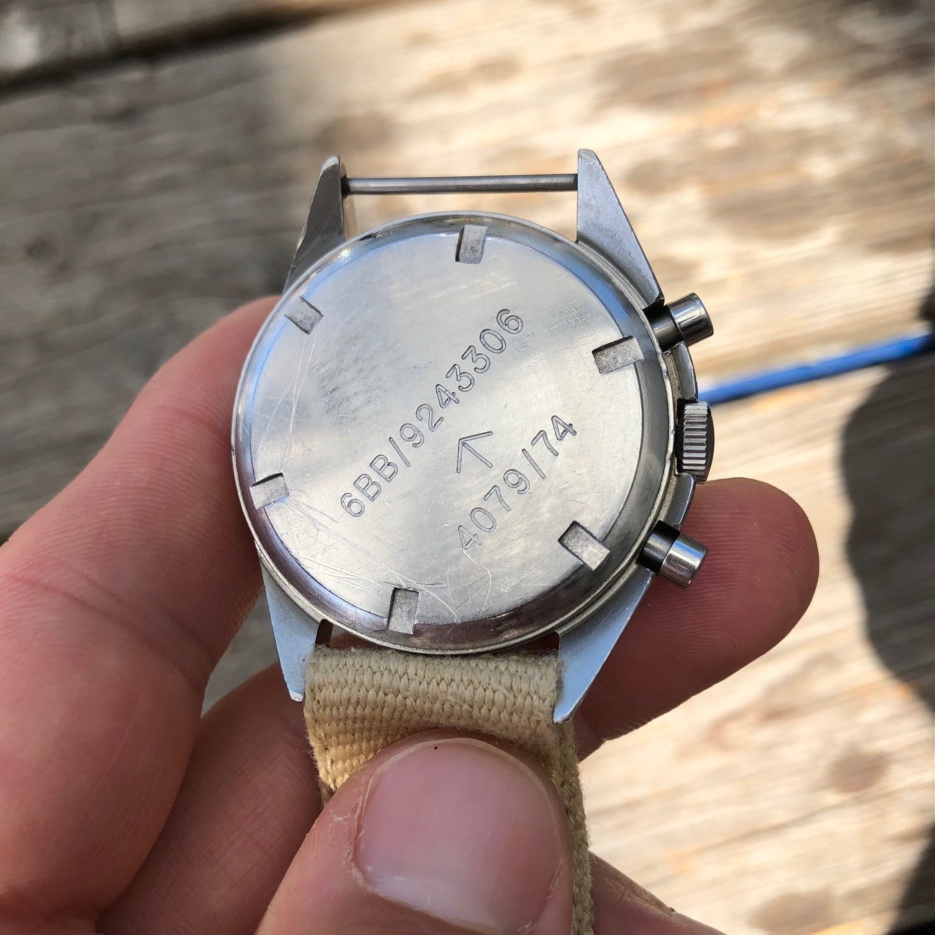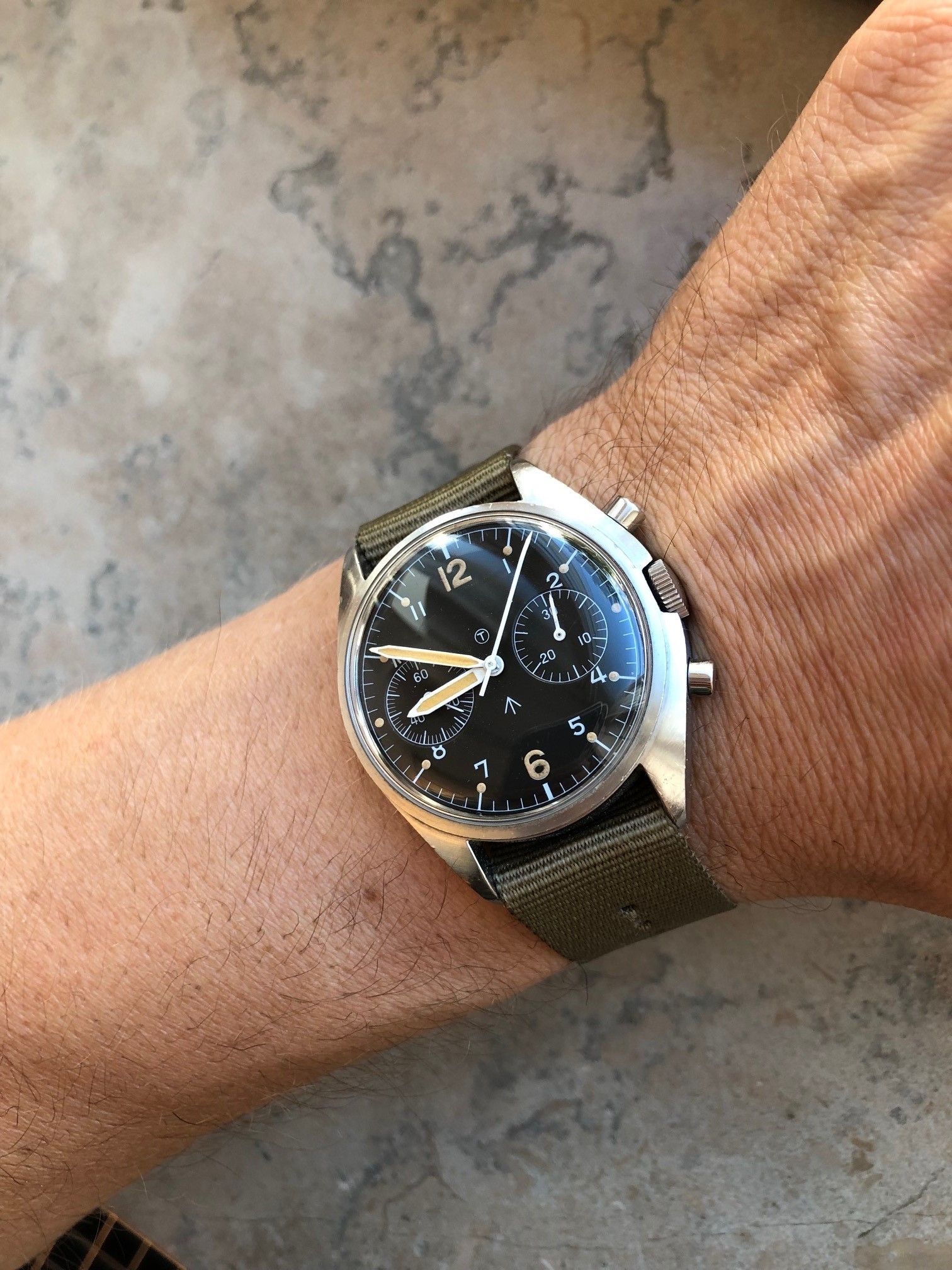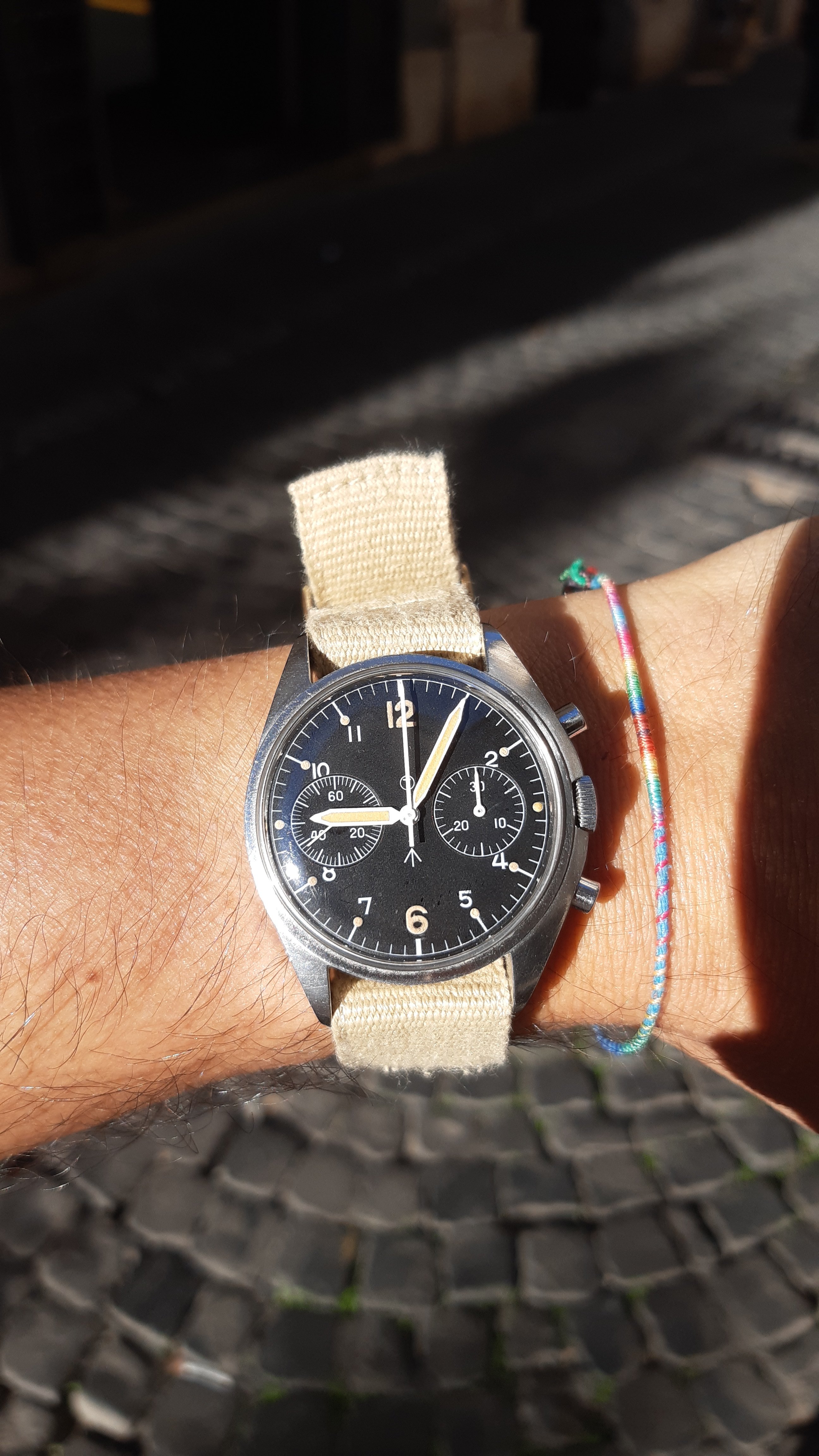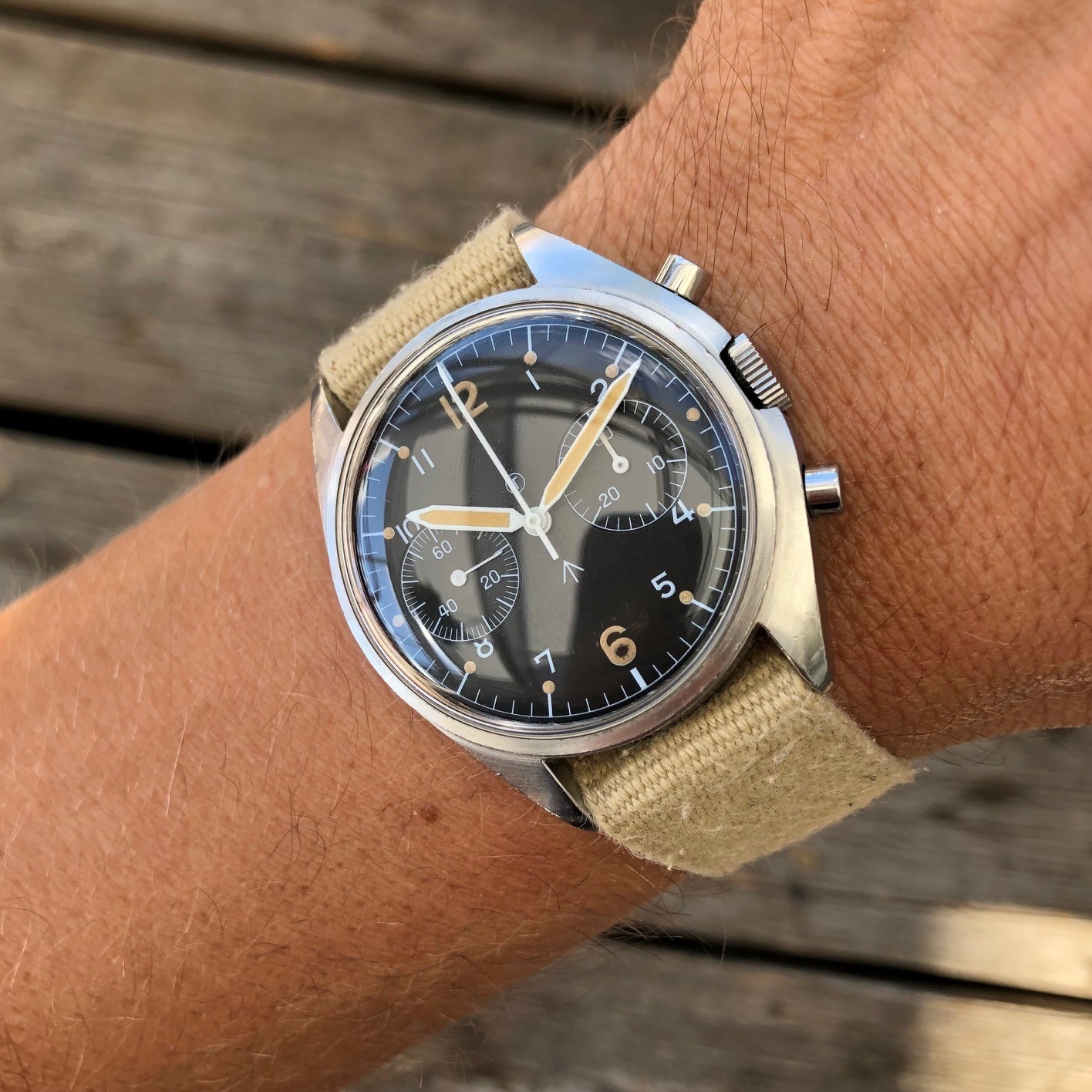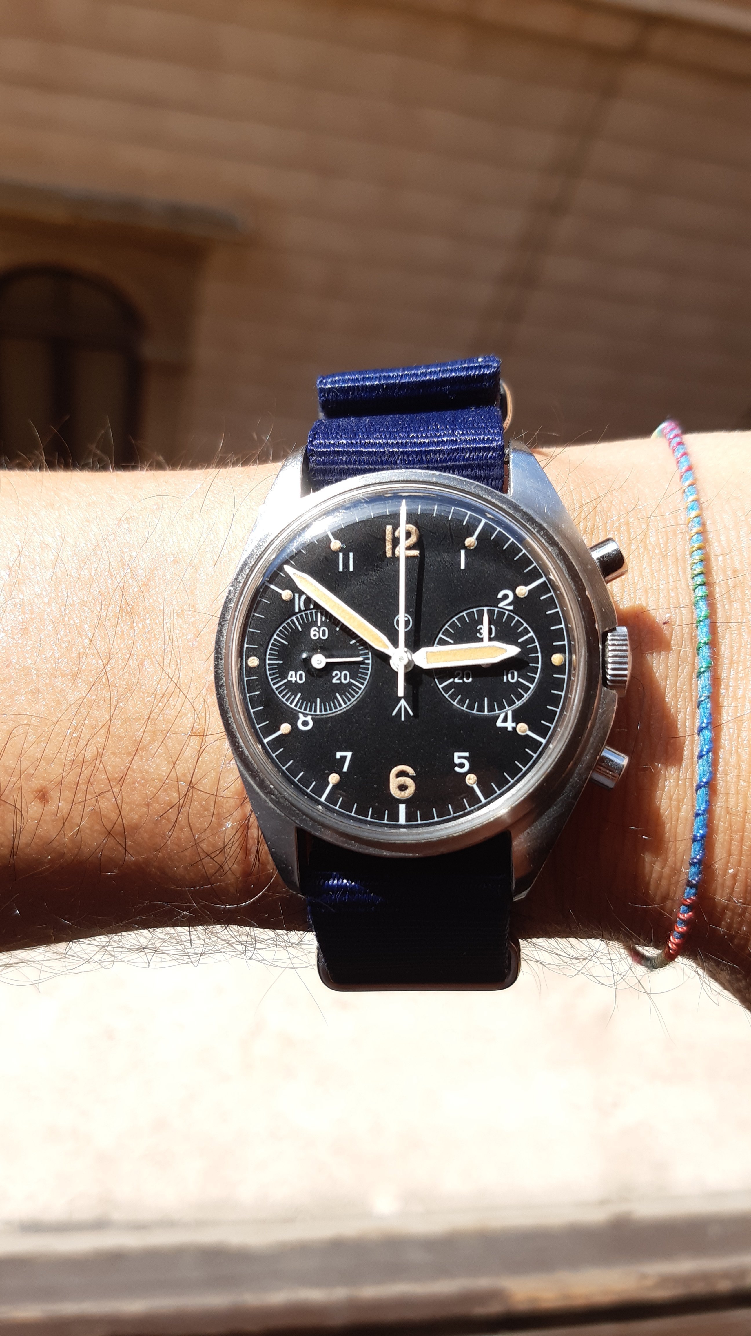 I decided to part with my sterile dial vintage military chronograph issued to British Royal Air Force (6BB) in 1974.