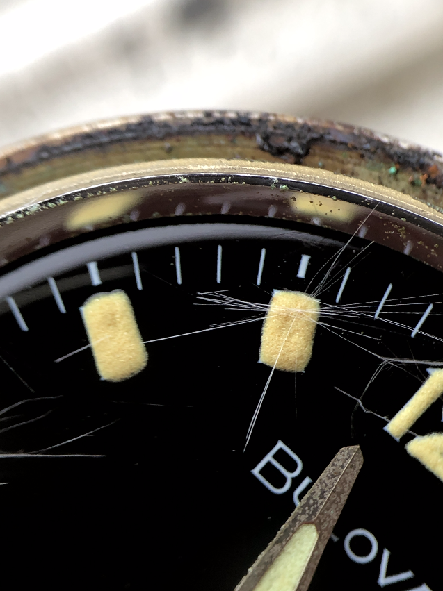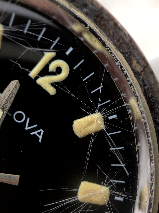 A couple of them originate from the same area of the lume plot, leading me to believe maybe someone had a contaminated brush as they were applying it, and that was the spot they always started or ended? But then again, it's also on little specs around the dial, like between 5 and 6.