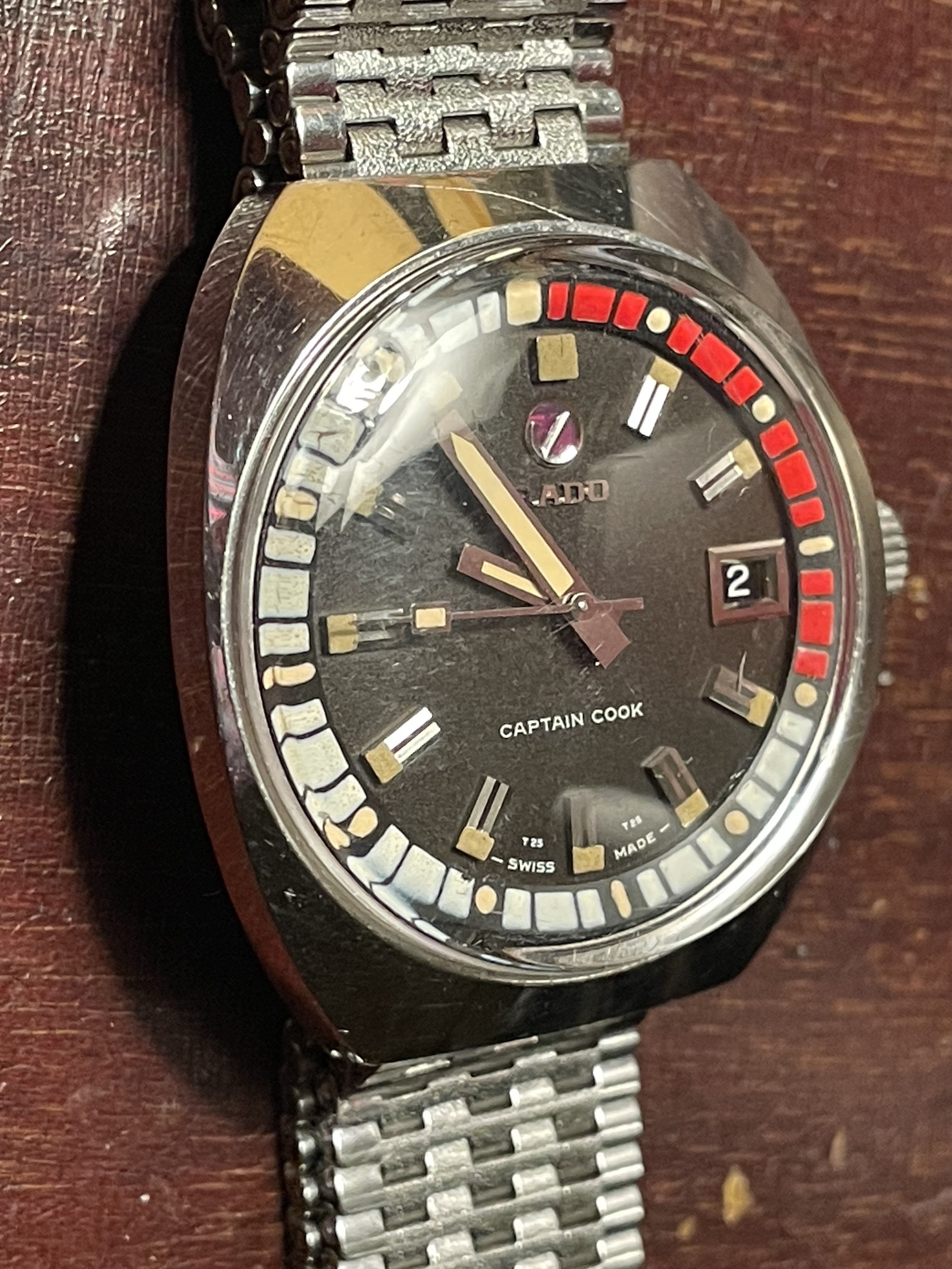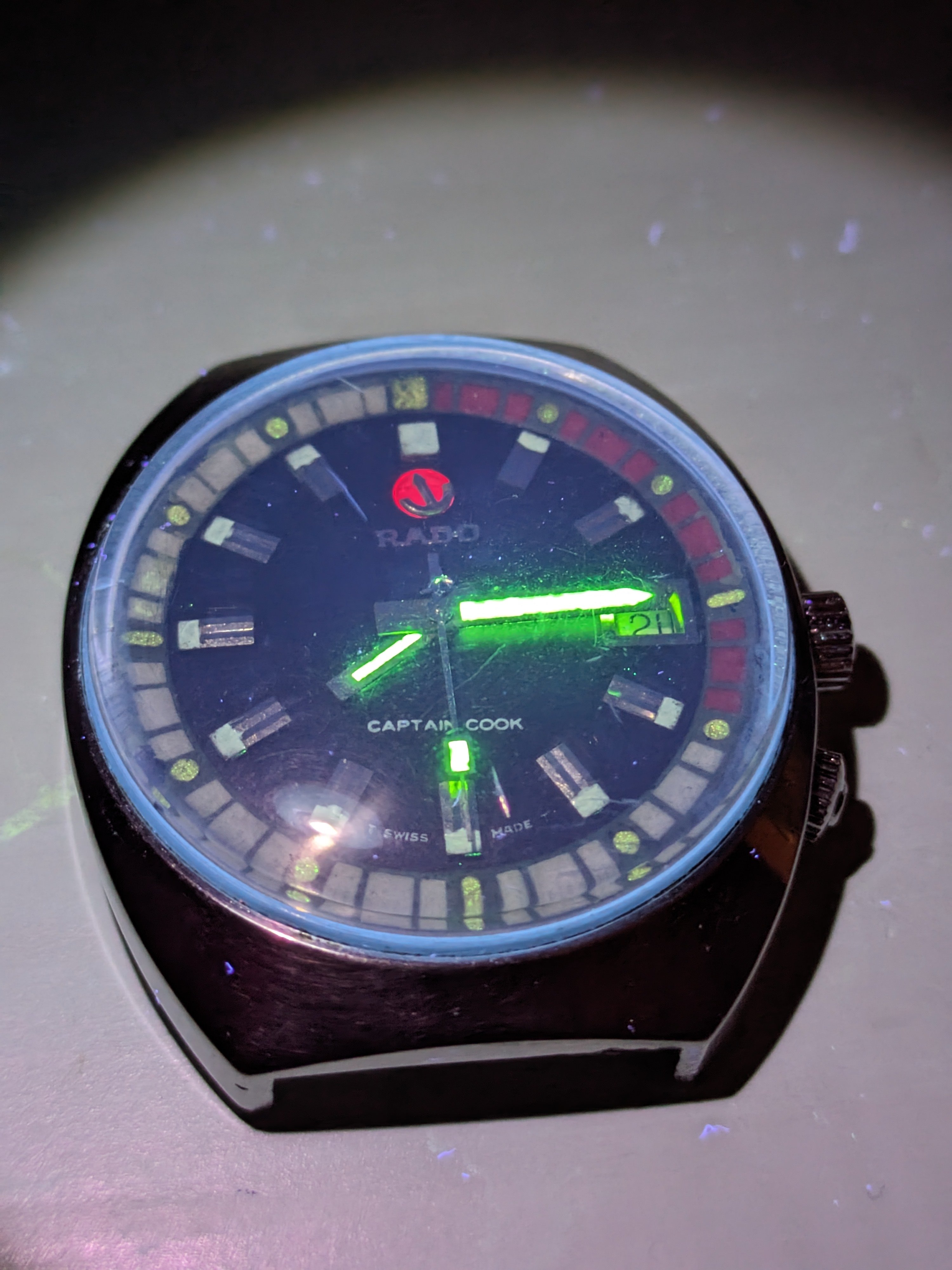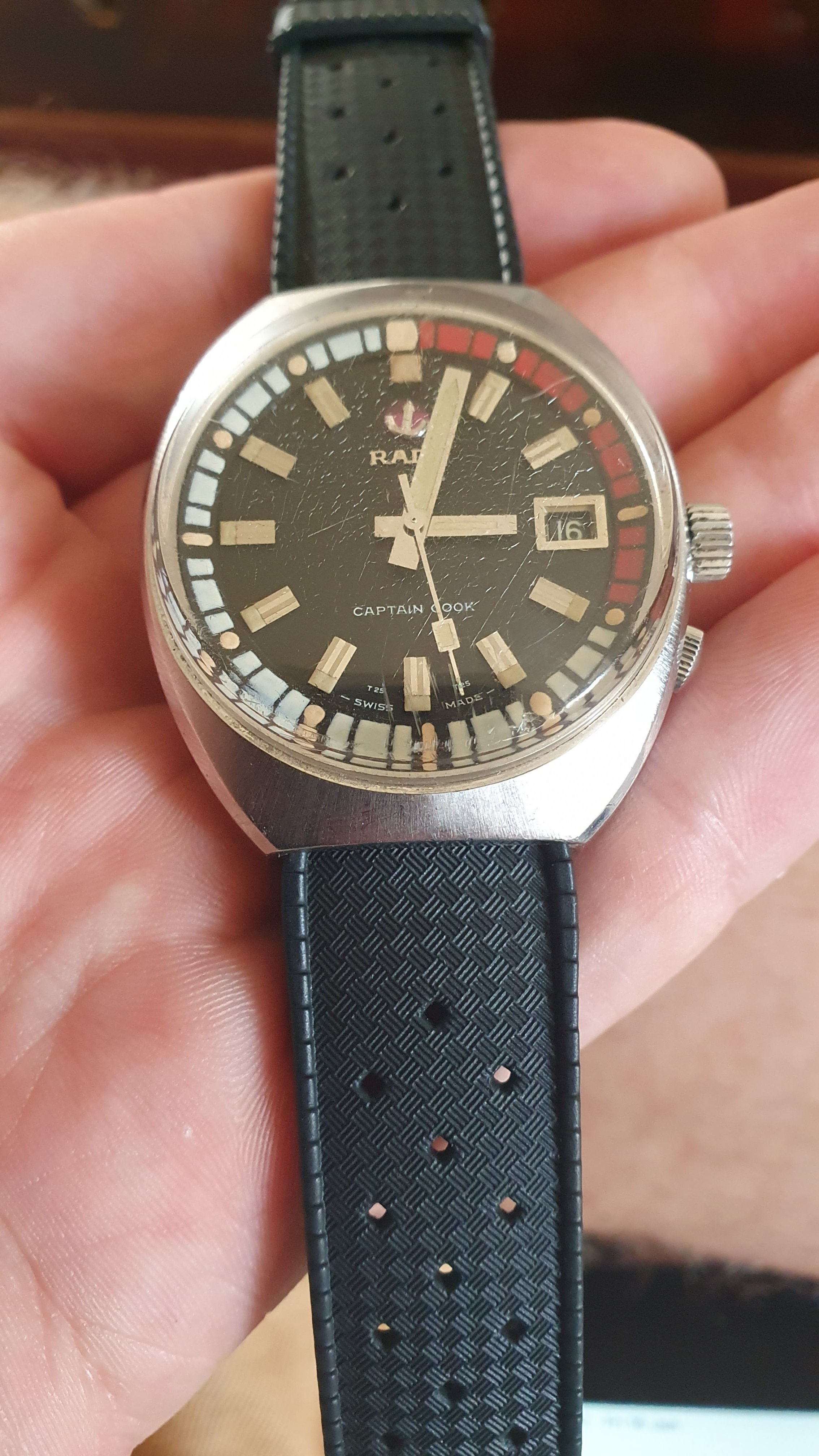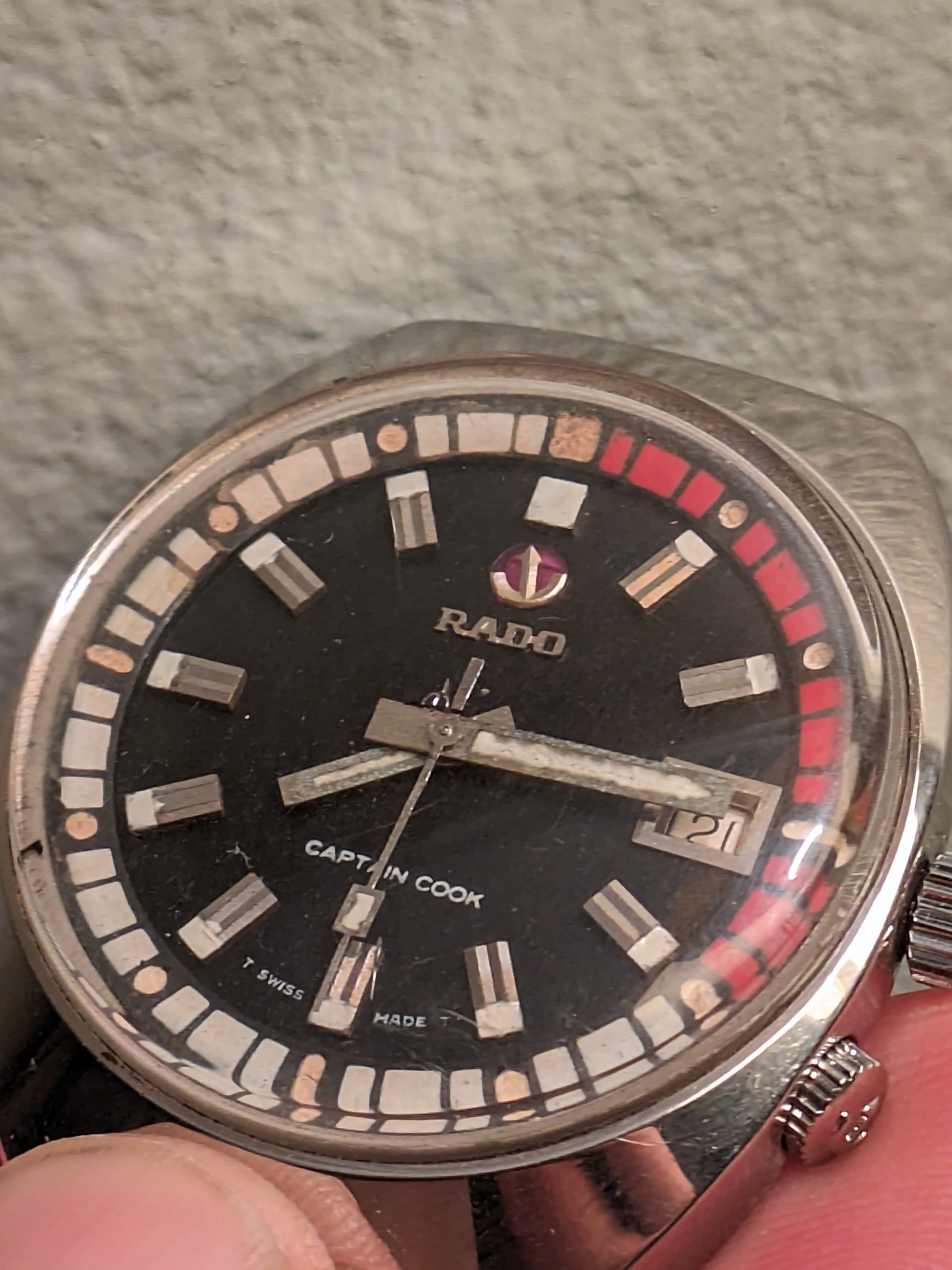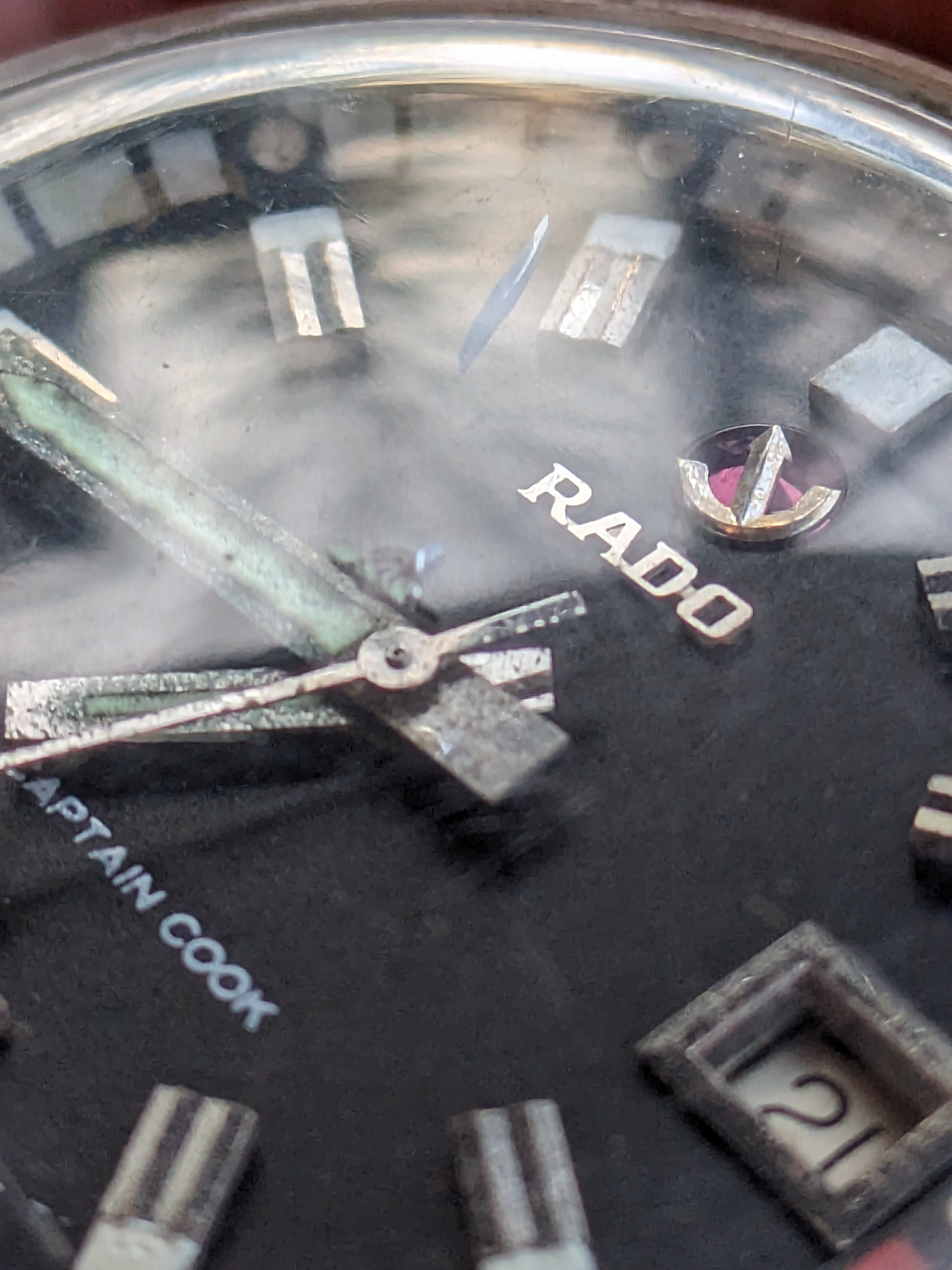 I bid on a Rado Captain Cook late at night as I was falling asleep. It was a token bid that I didn't expect to win. Unfortunately, my bid prevailed. In the cold light of morning, as I took a better look at the single (!) photo of the dial in the listing, I was pretty sure I'd made a mistake.