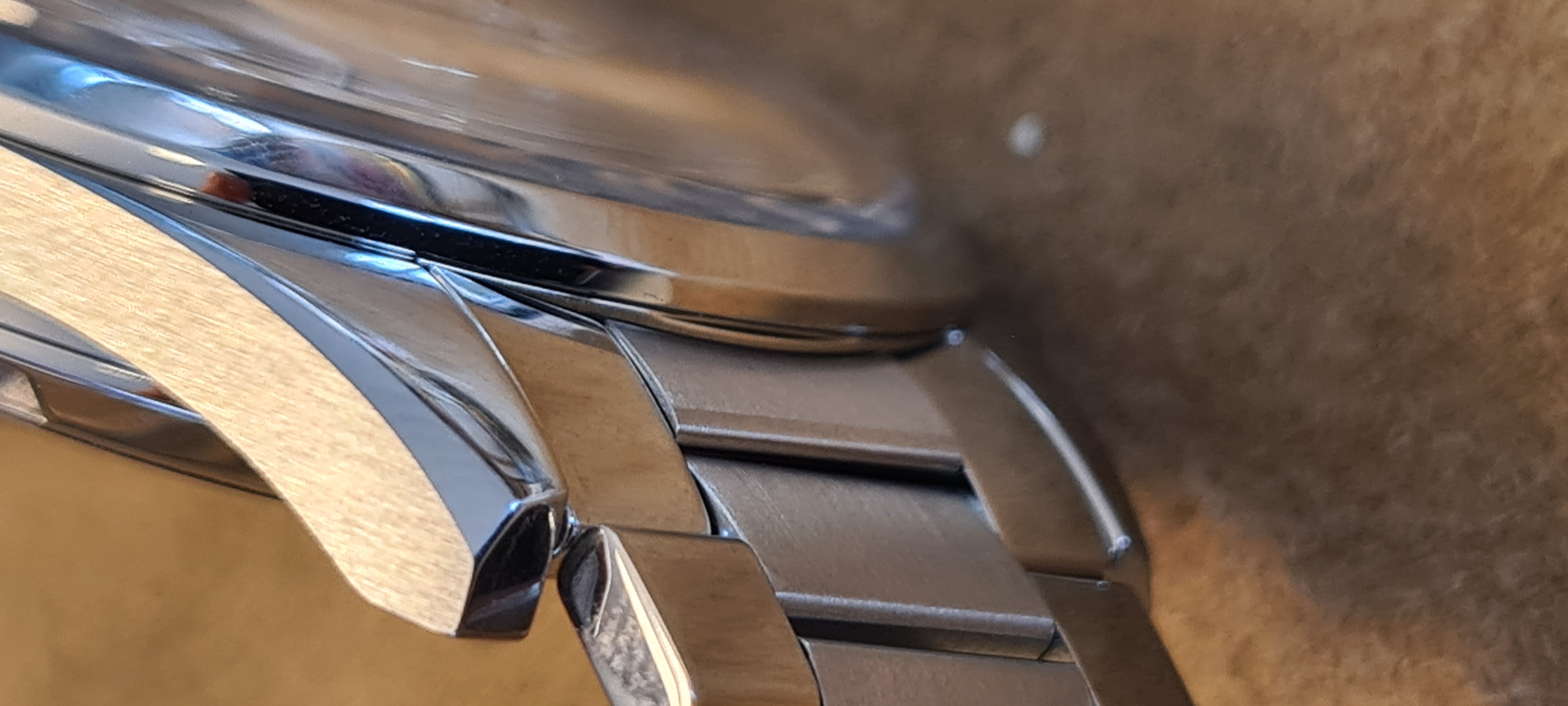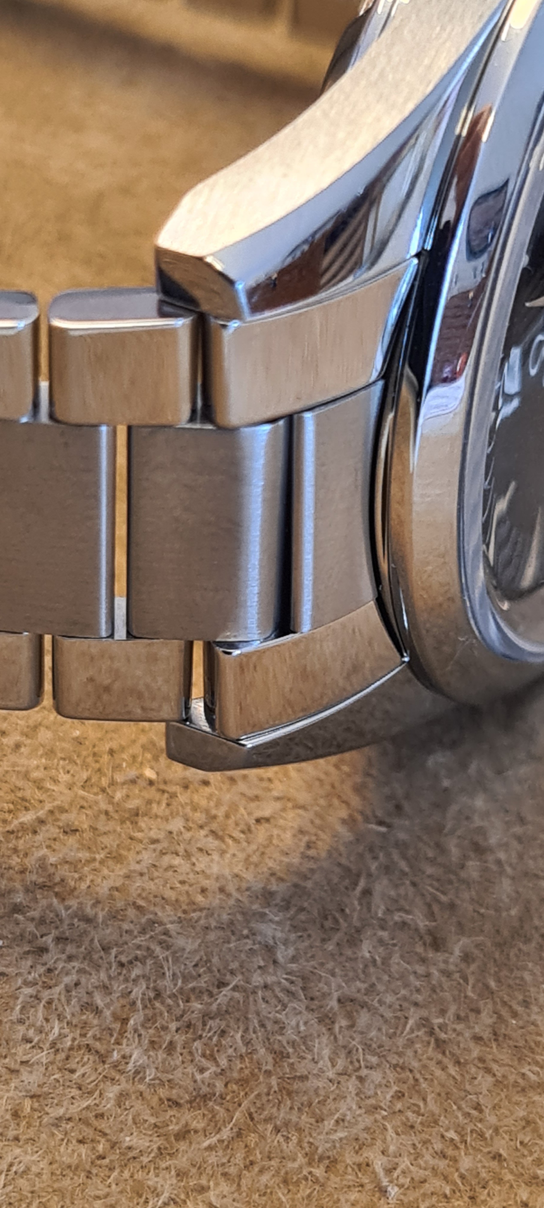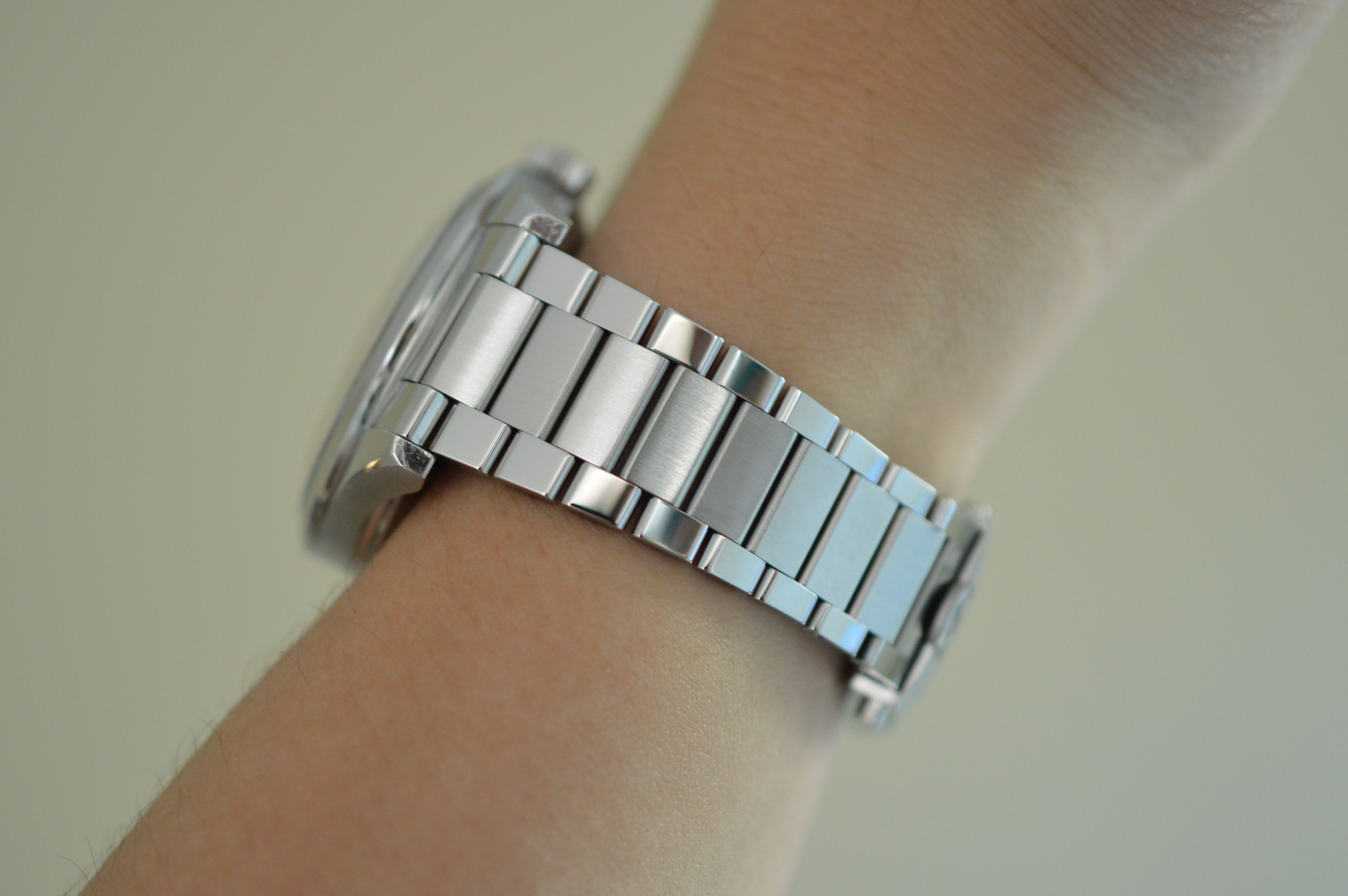 One thing that has recently bothered me about the original bracelet, aside from its thickness and untapered profile, is the difference in the width of the center links compared to the original. On the Trilogy bracelets, the center link is 12mm wide, whereas the original flat links, as well as the 321's, are 10mm.