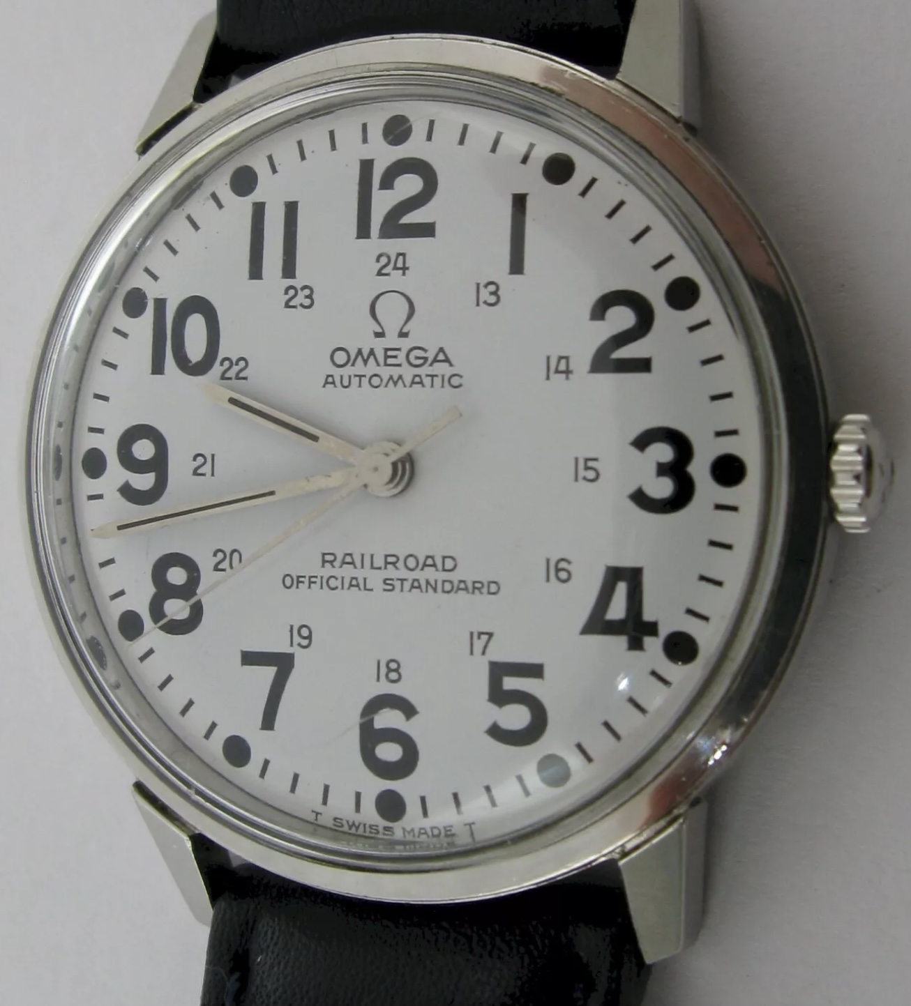 “OMEGA developed its automatic "Railroad Official Standard" model specially for the Canadian Pacific company. Its stainless-steel case housed the calibre 552 movement and had a white lacquer dial with easily legible Arabic numerals and minute circle.”