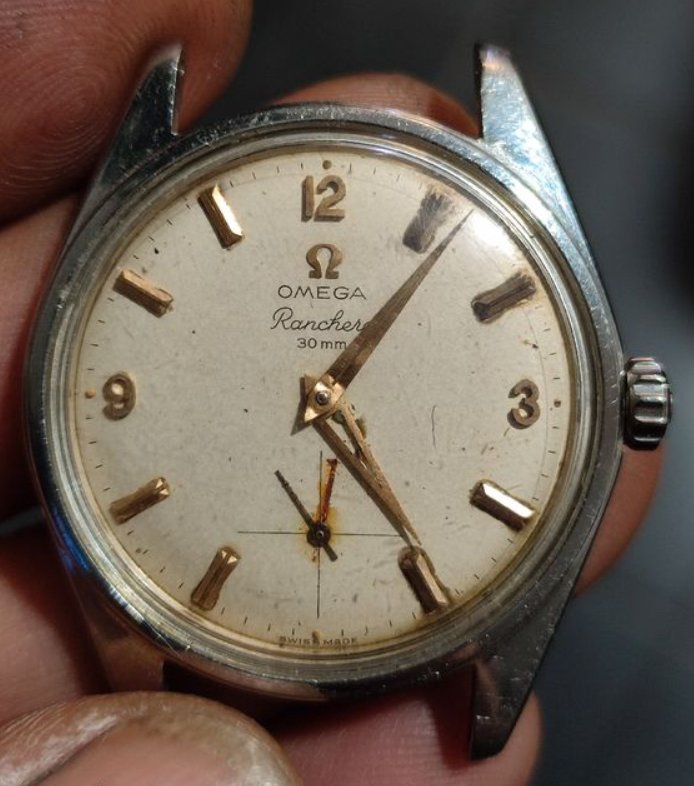 This looks like it was cleaned instead of refinished. I once placed a dial in water, let it soak, and all the varnished fell off leaving an amazingly clean dial. Look at the 2 on the 12 and the logo. Still a bit on varnish there.